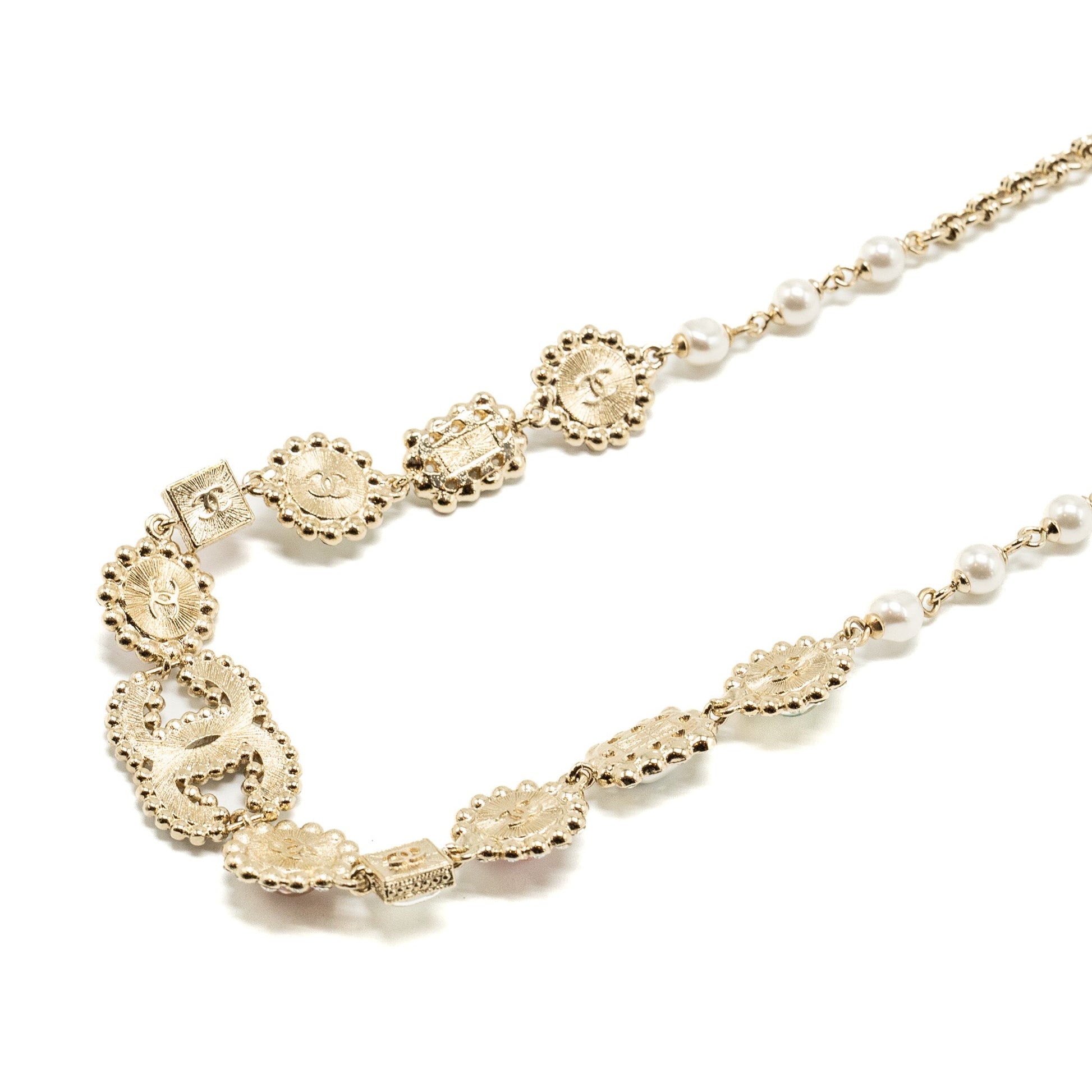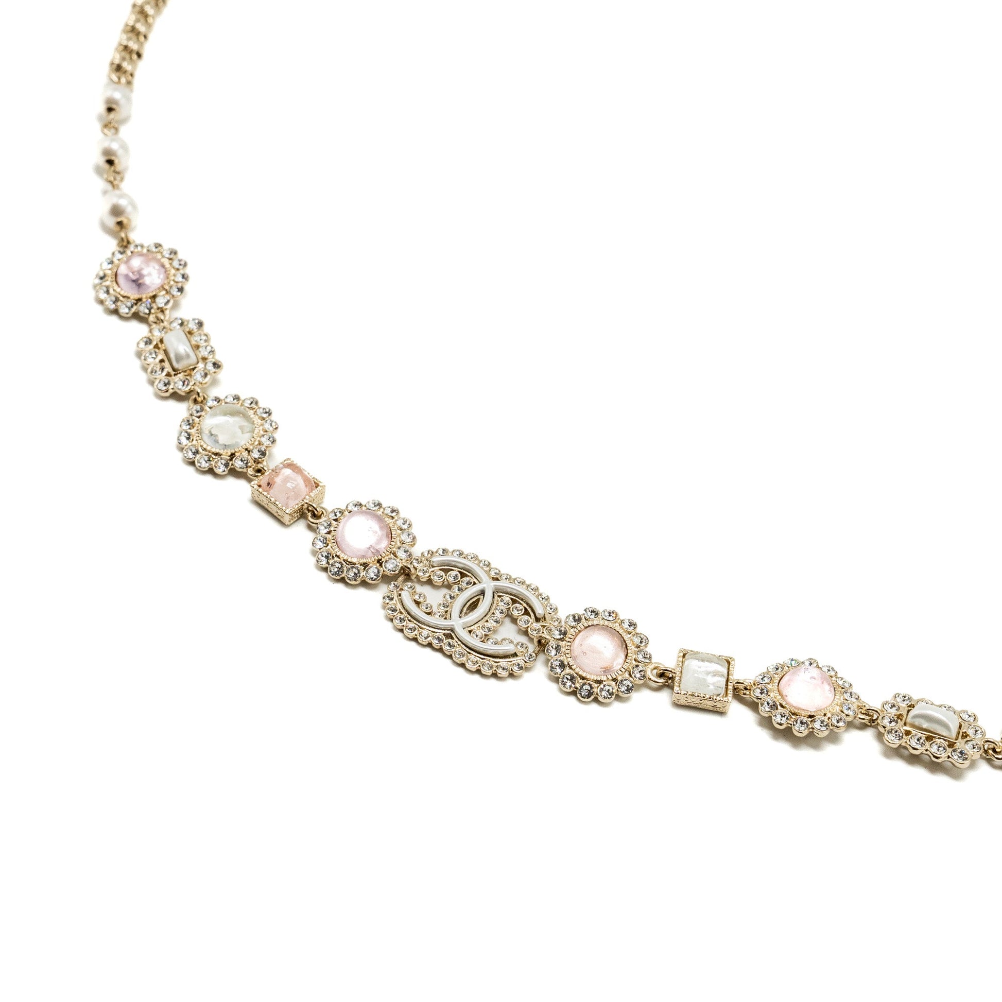 Chanel 21k Size 75 Chain Belt/Fancy Belt Pearl/Crystal Light Gold Tone