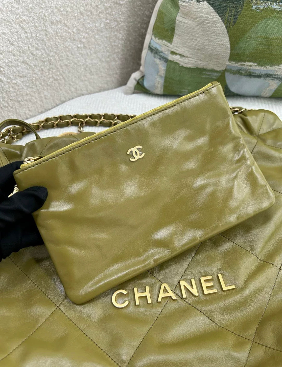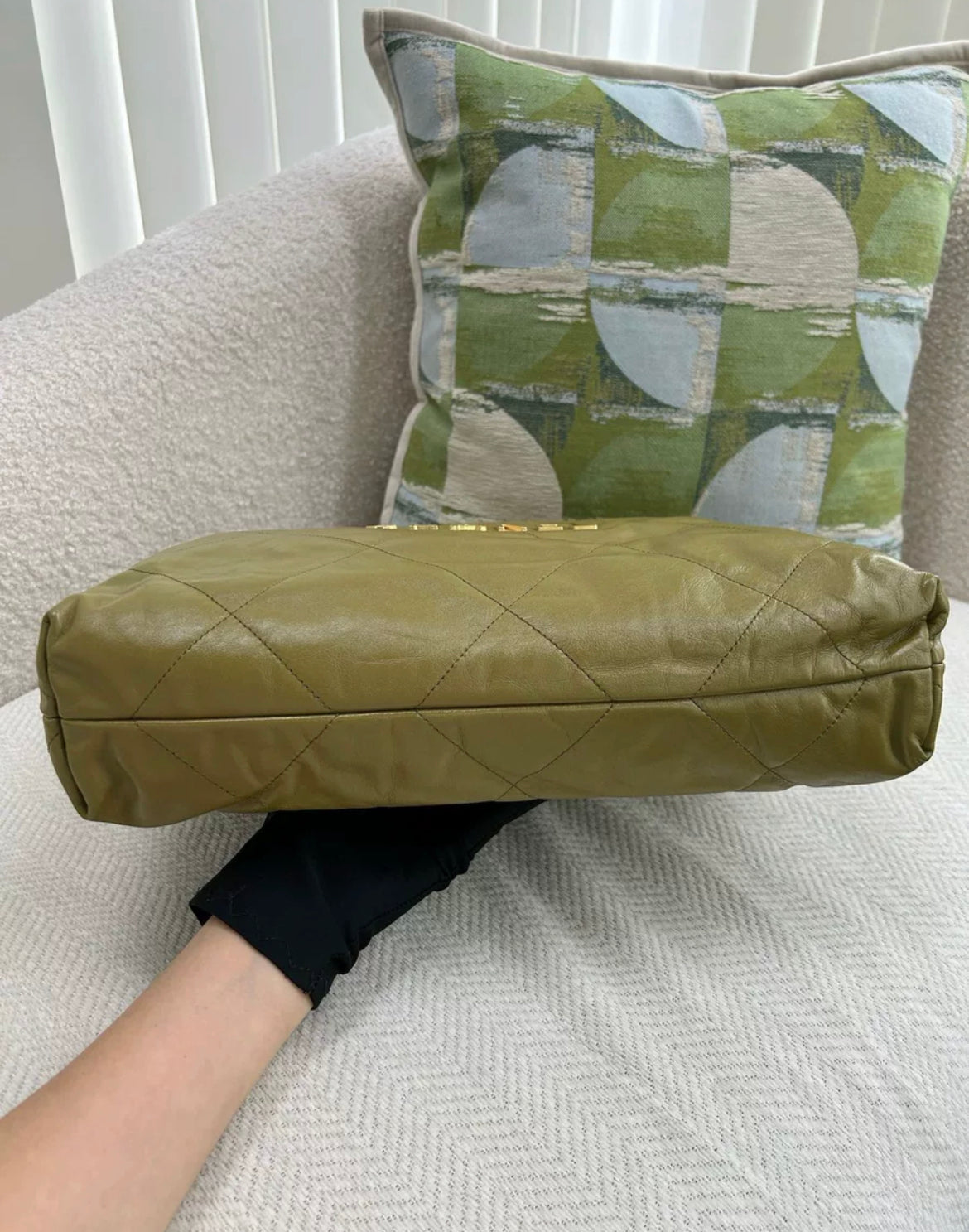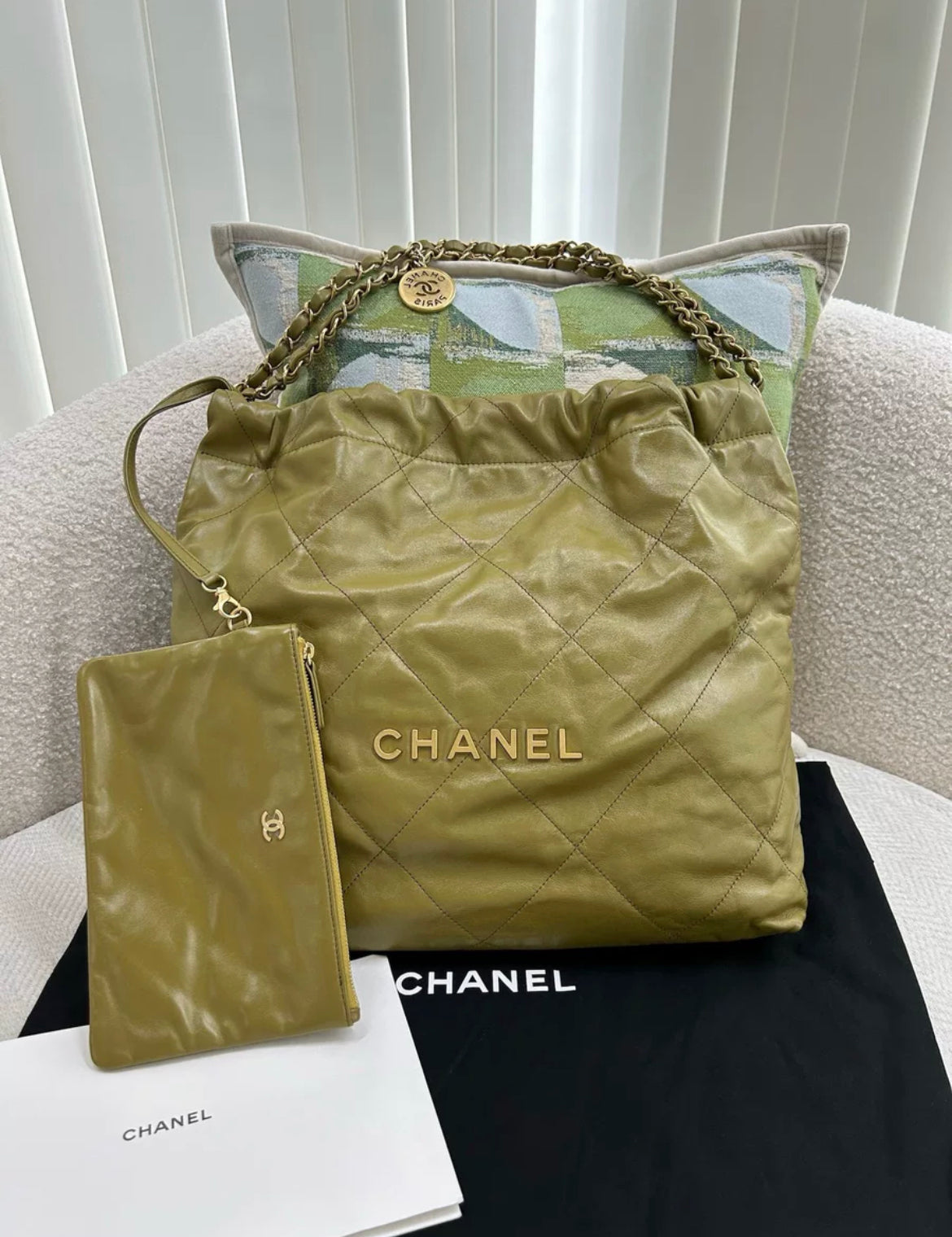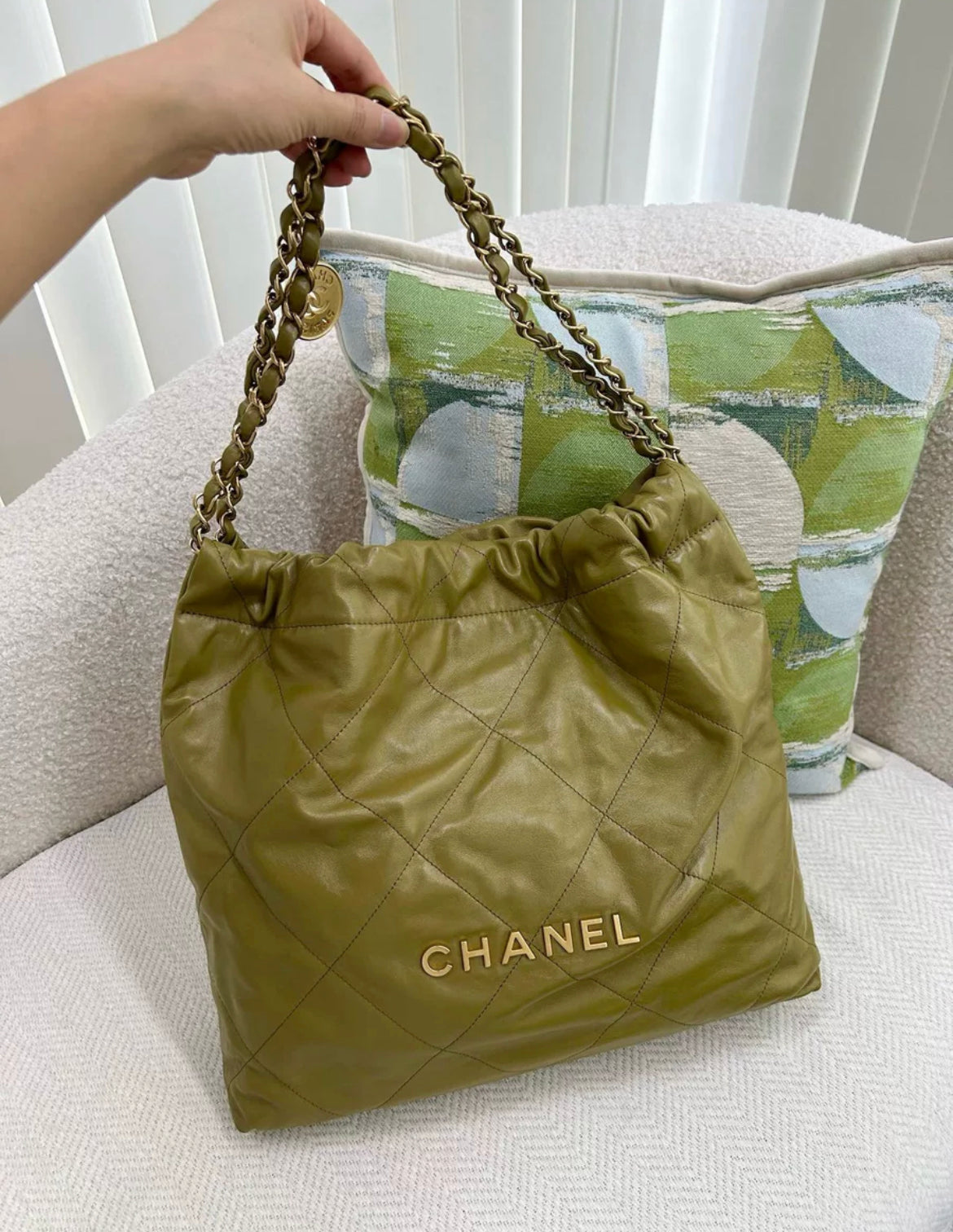 Introducing the Chanel 22bag in the stylish olive khaki color. Designed with a medium size, this bag is perfect for everyday use. With its new condition, you can enjoy its high-quality and long-lasting durability. Elevate your wardrobe with this classic and chic accessory.