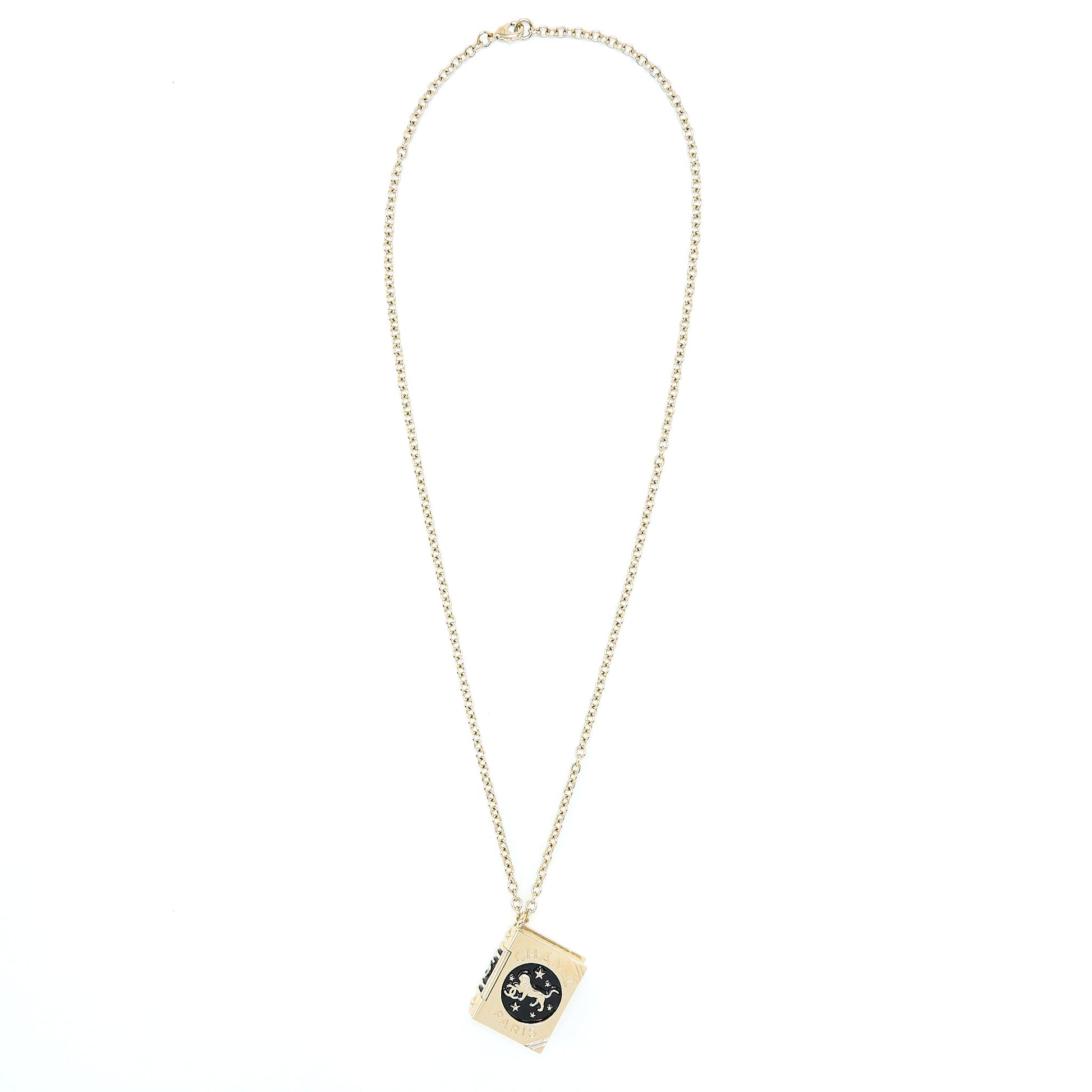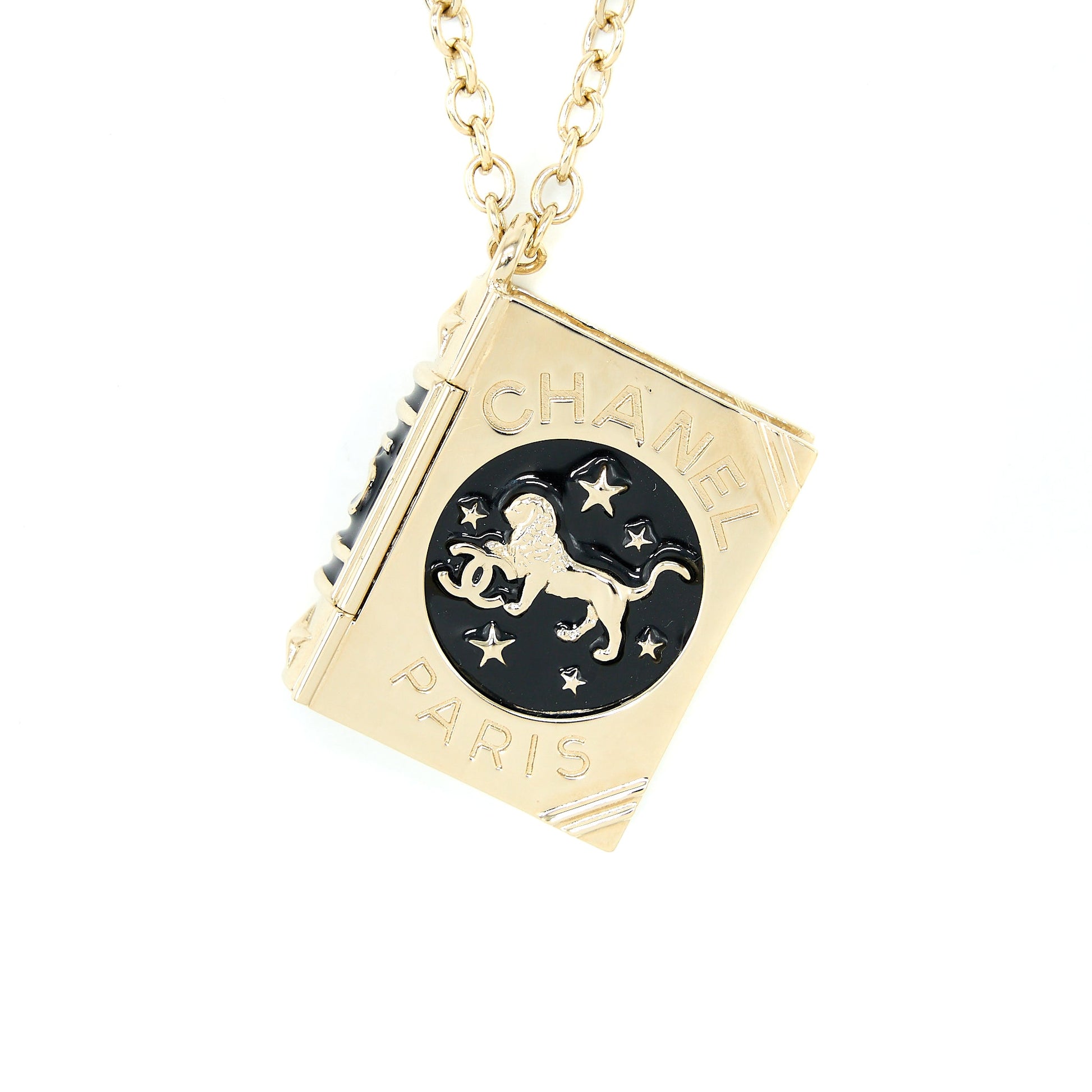 Chanel 22C Book Locket Long Necklace Light Gold Tone