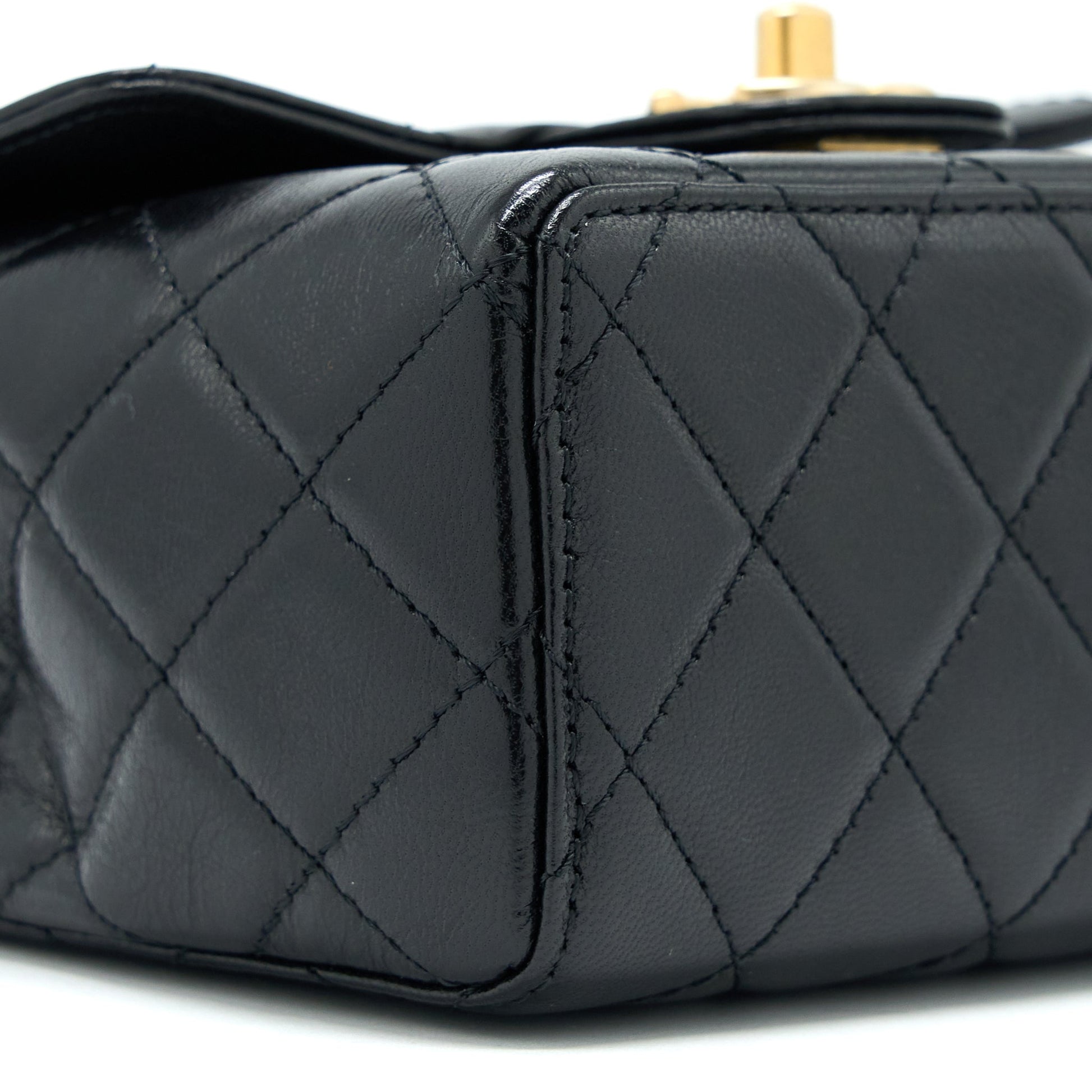 Chanel 22K Retro Classic New Square Mini Flap Bag Goatskin Black (Microchip)