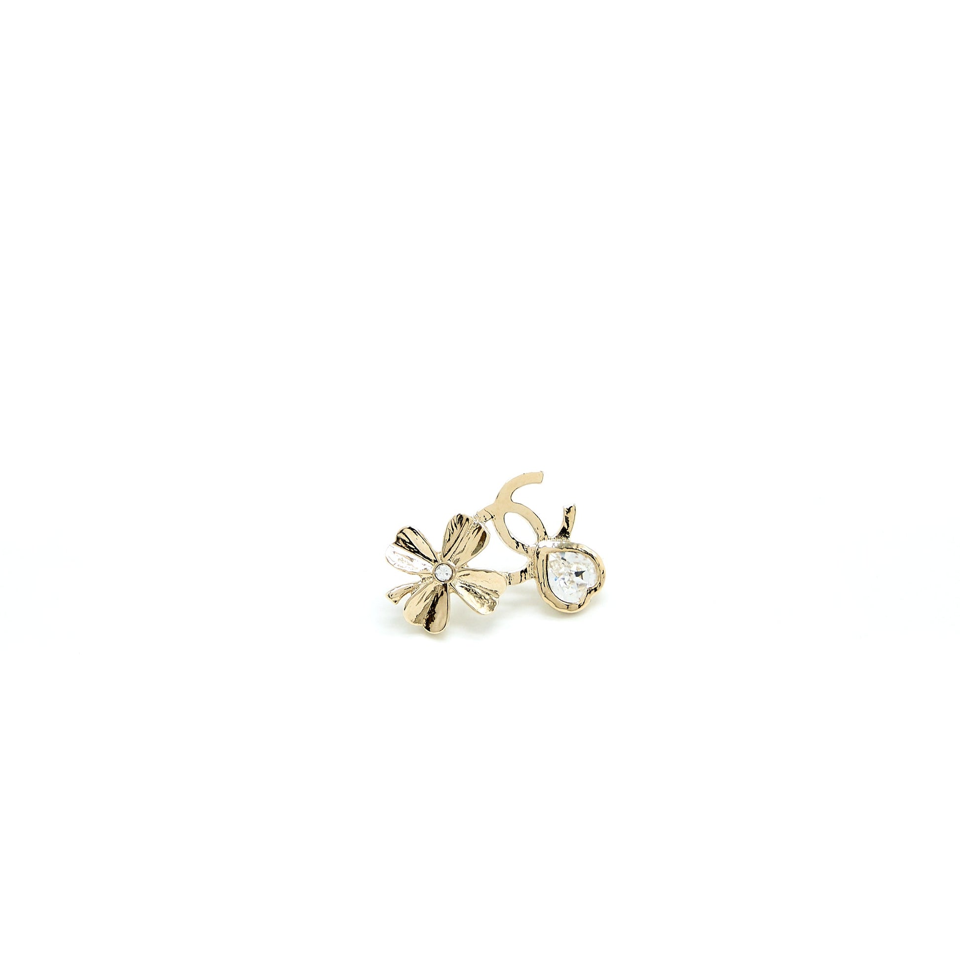 Chanel 22S CC Logo Flower Earrings Crystal Light Gold Tone