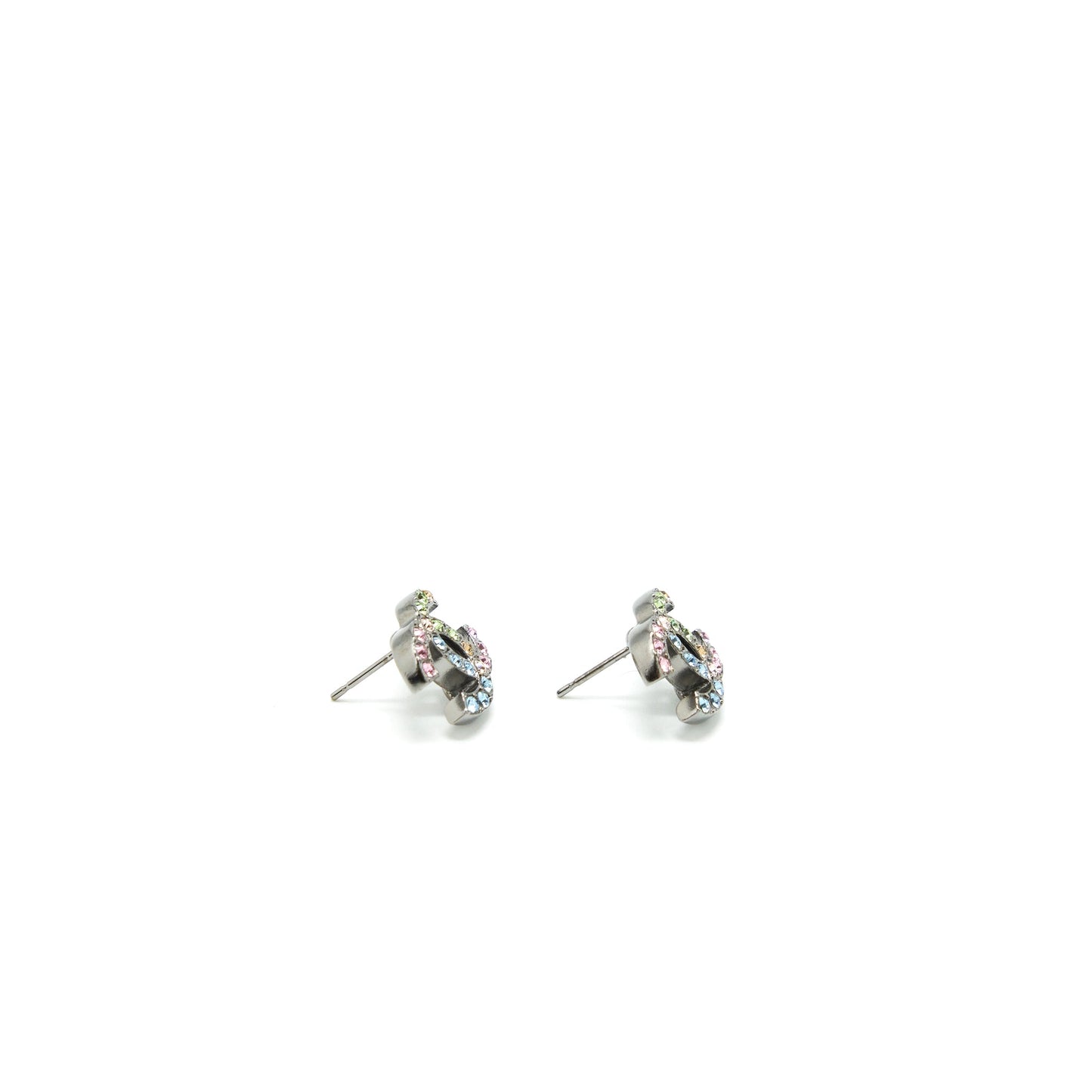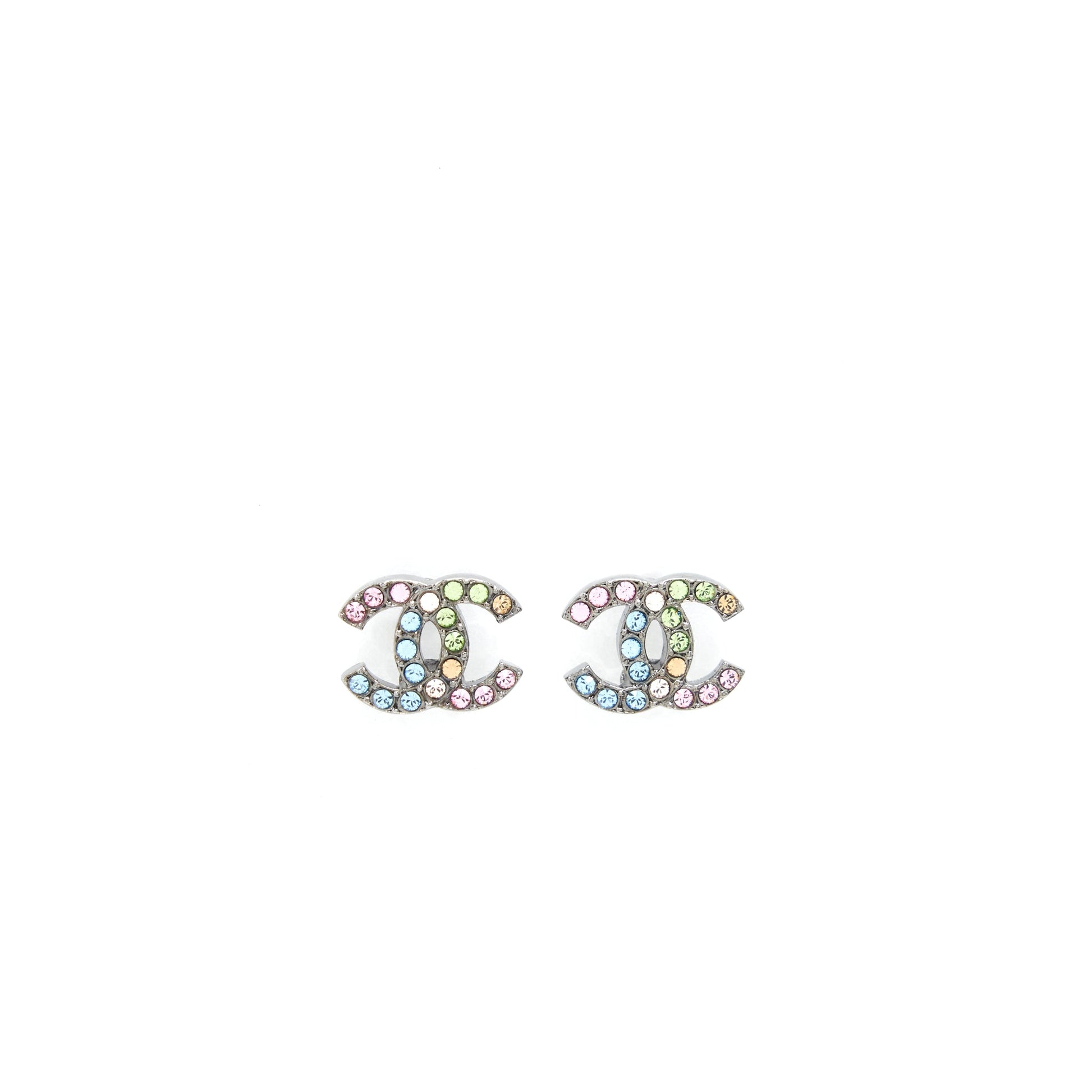 Chanel 22S CC Logo Rainbow Crystal Earrings Sliver Tone