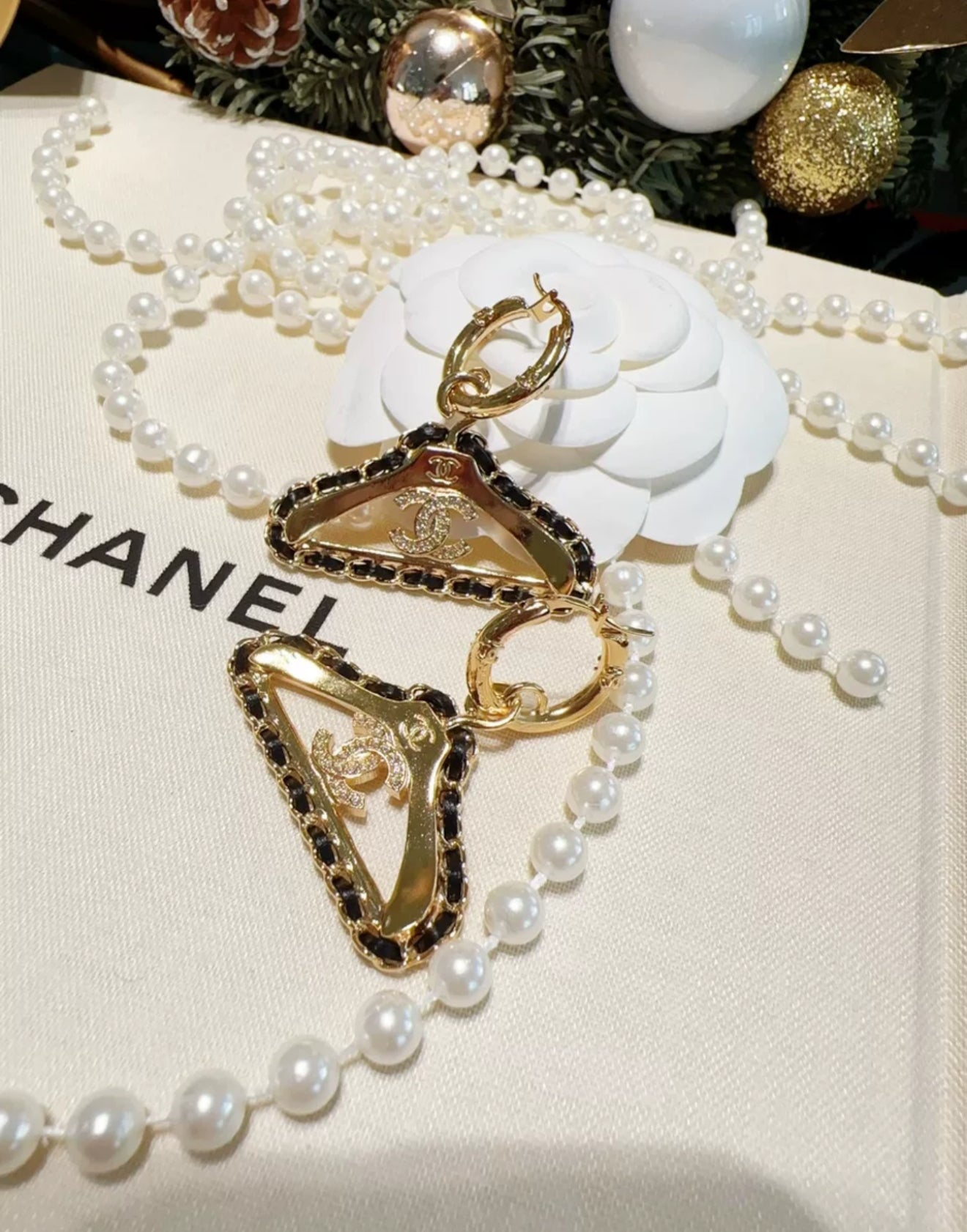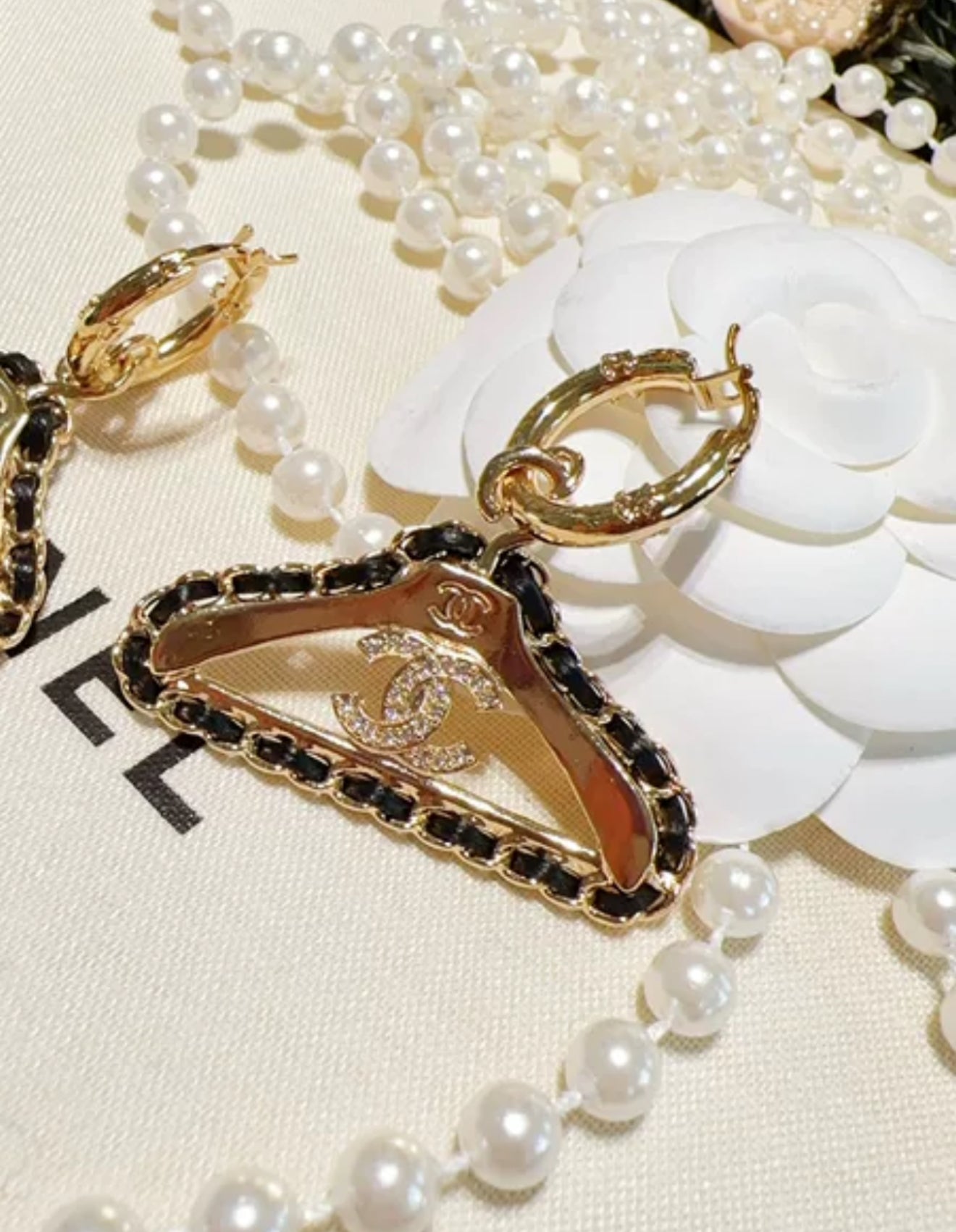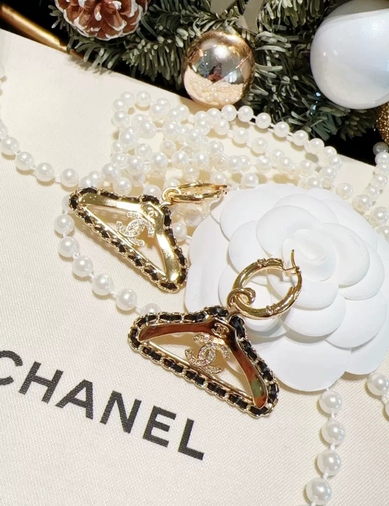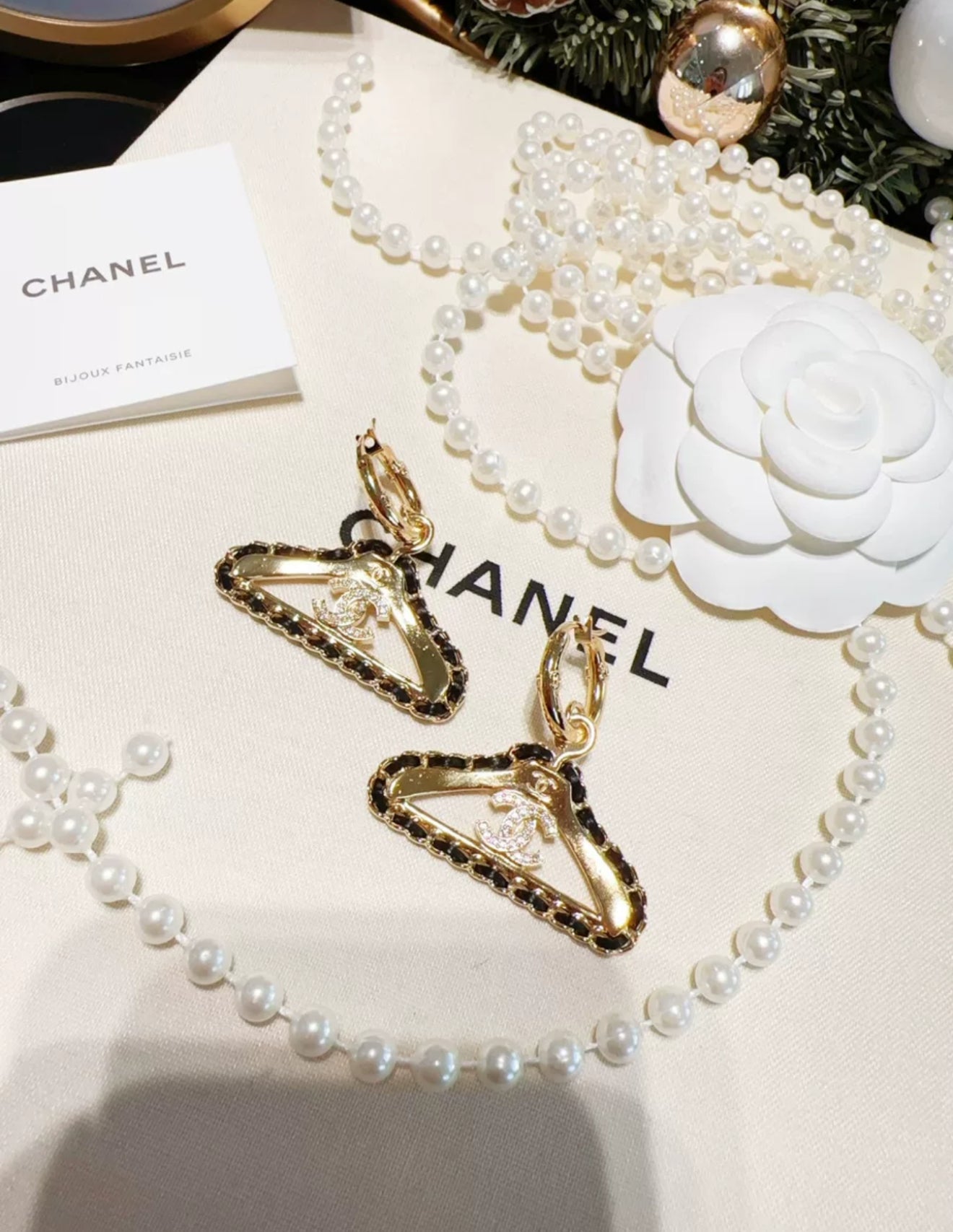 Expertly crafted by Chanel, these 23A Black Gold Leather Chain Hanger Earrings are the perfect addition to any jewelry collection. Made with luxurious leather and gold hardware, these earrings exude sophistication and style. Elevate any outfit with these brand new, designer earrings.
