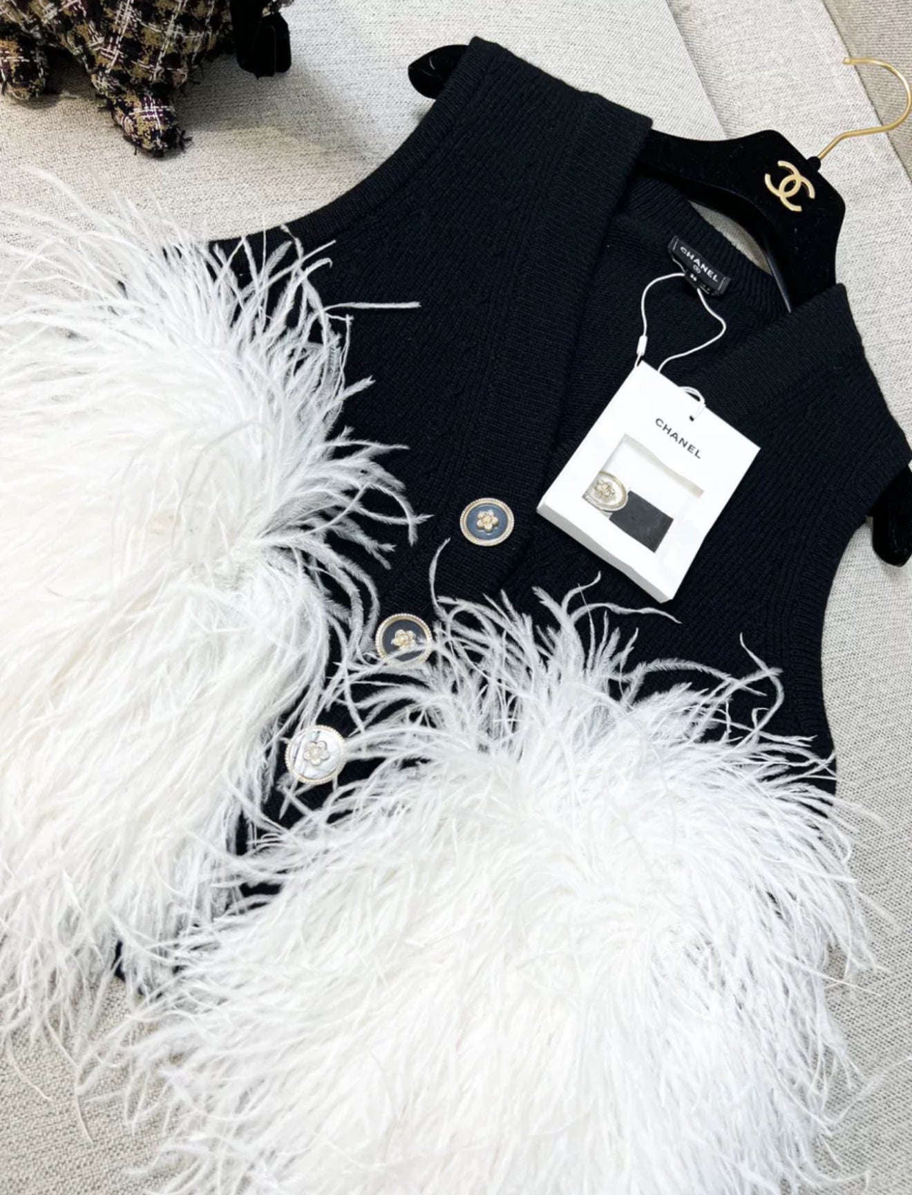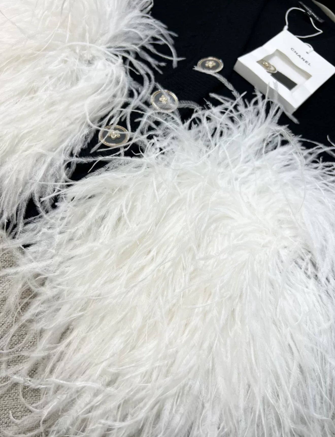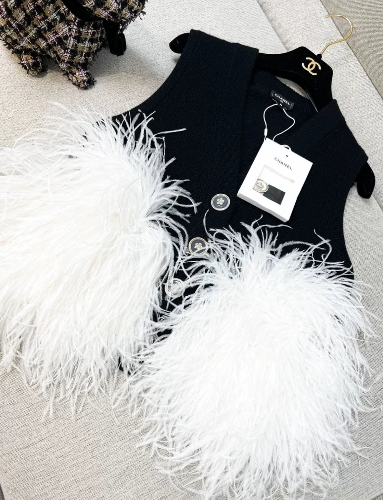 Chanel 23AW Black Cashmere & White Ostrich Feathers Vest