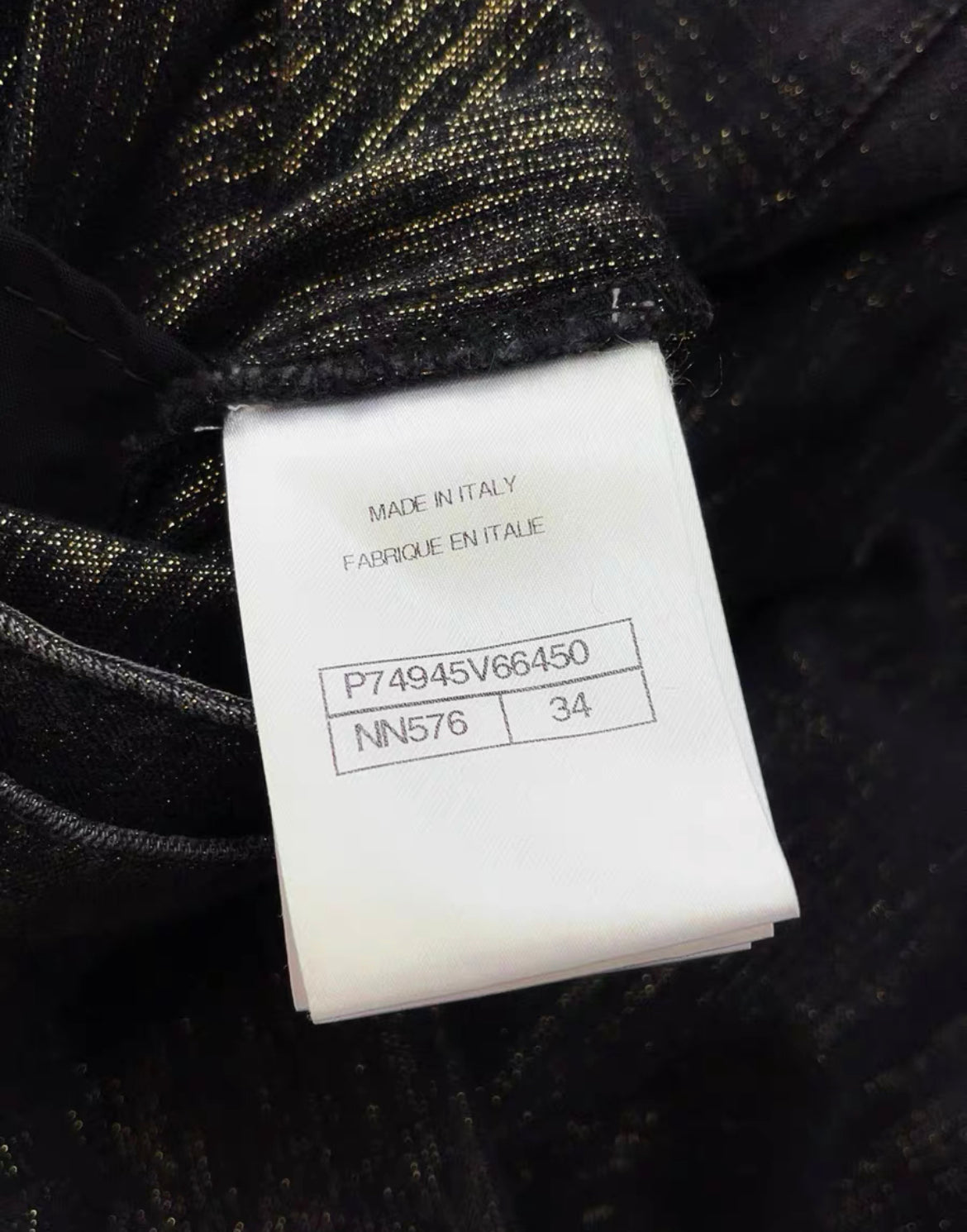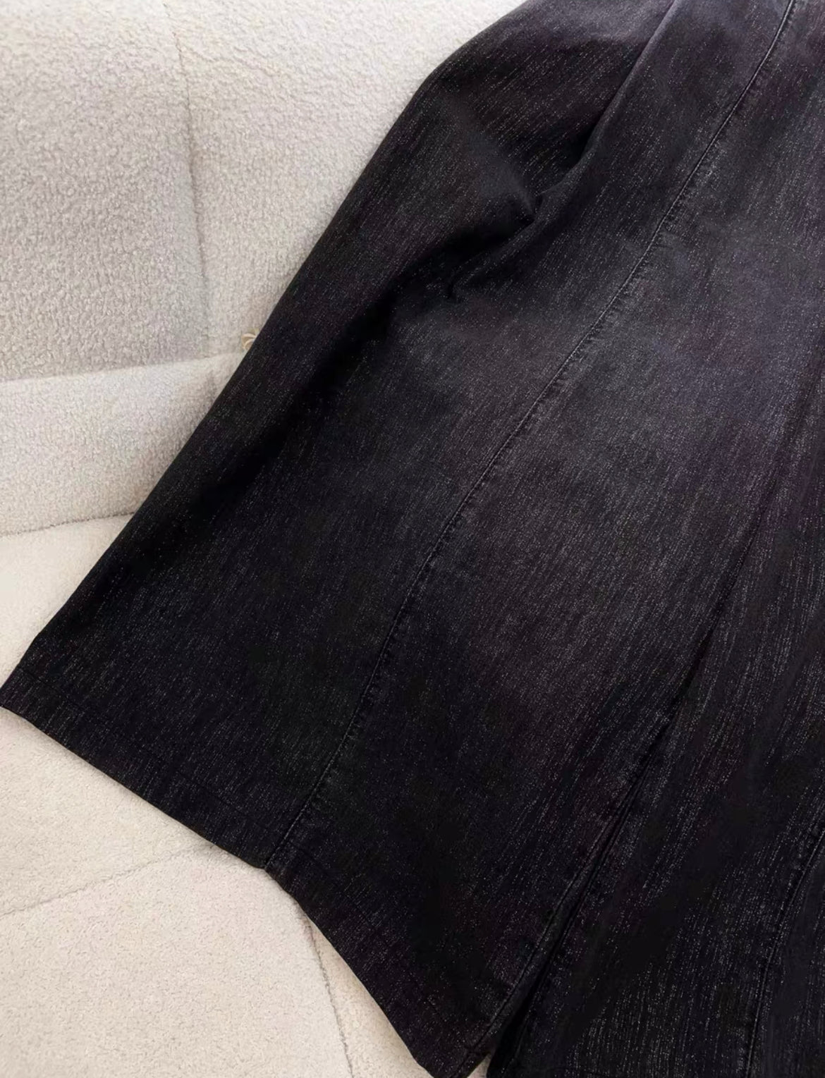 In new condition CHANEL 23S Wide Leg Denim Pants with Belt, 34FR, Black/ Gold, dark grey with fine shimmer