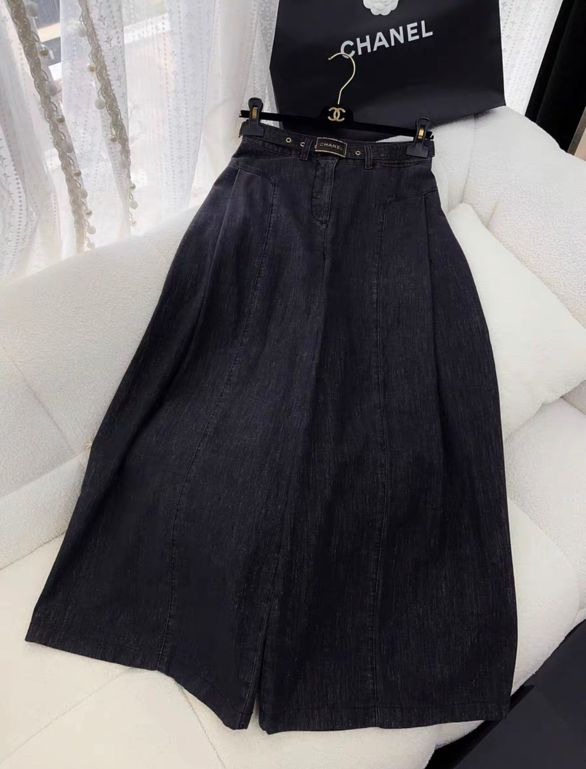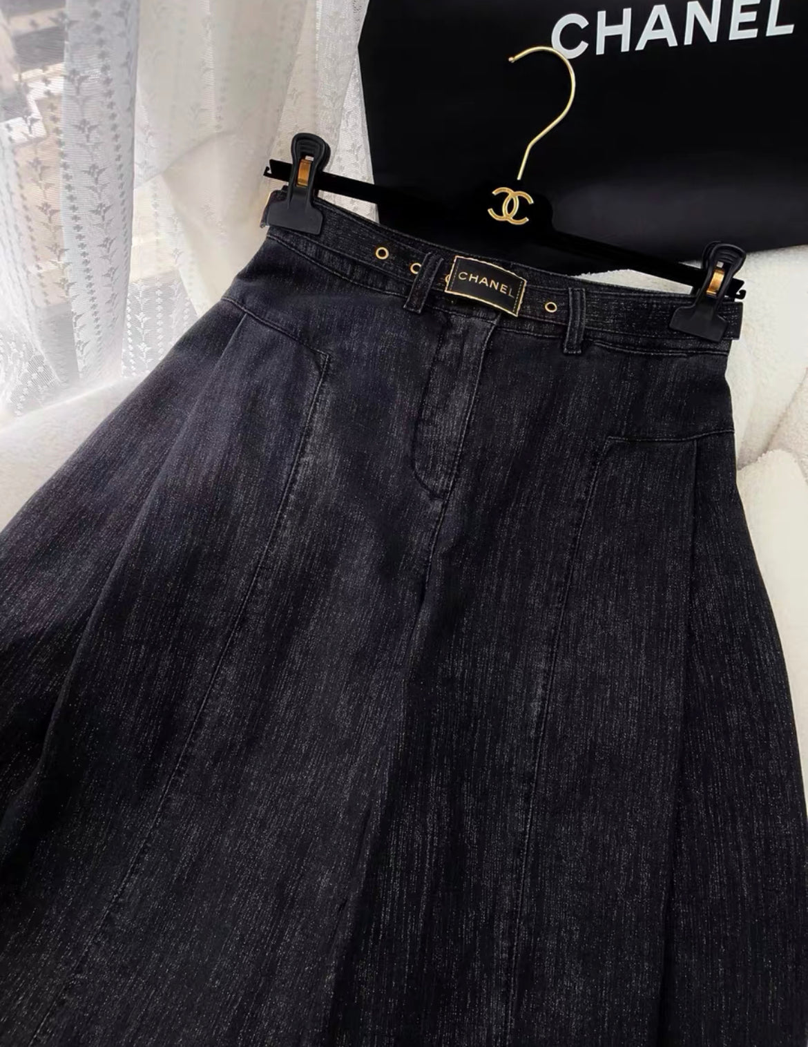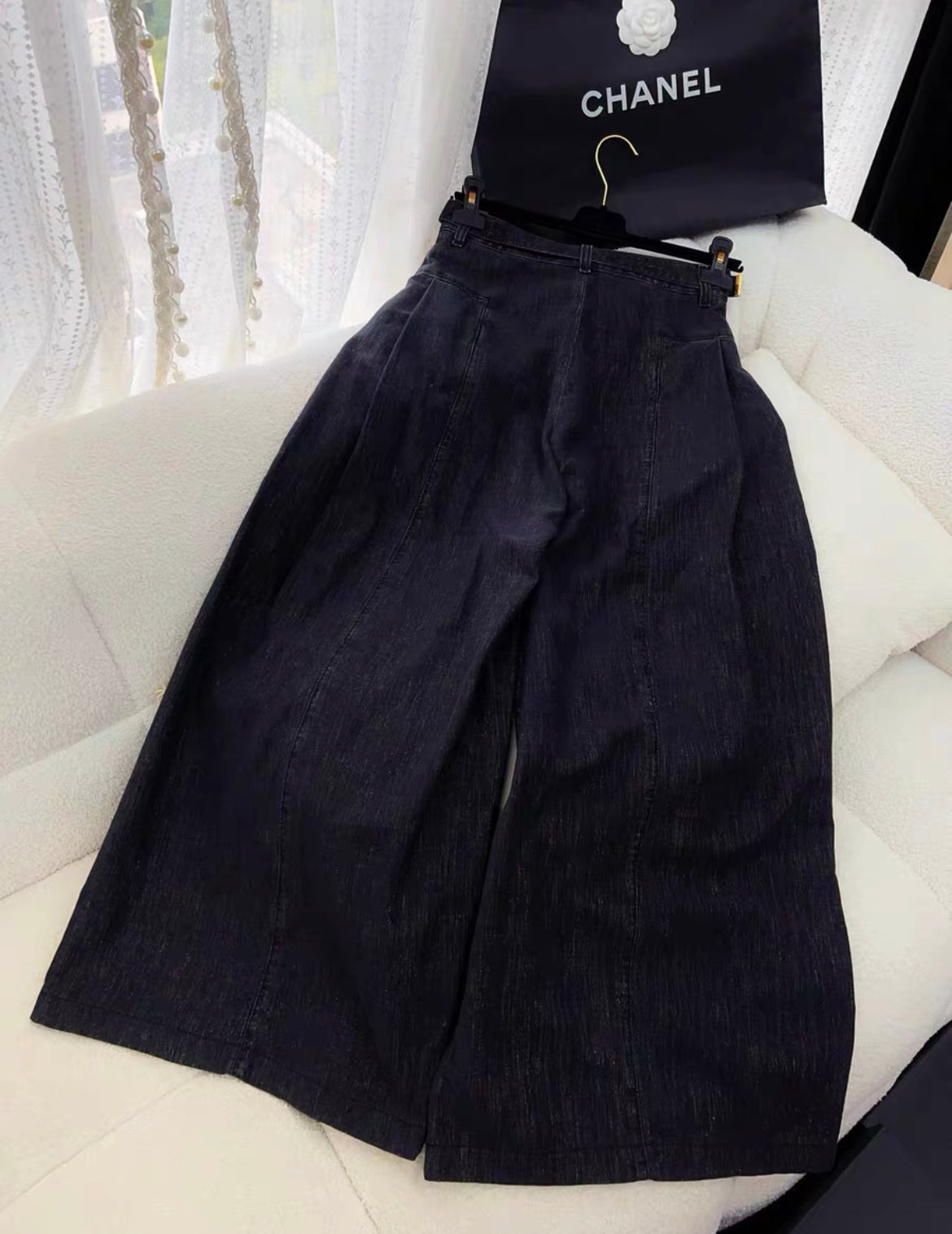CHANEL 23S WIDE LEG DENIM PANTS + BELT size 34