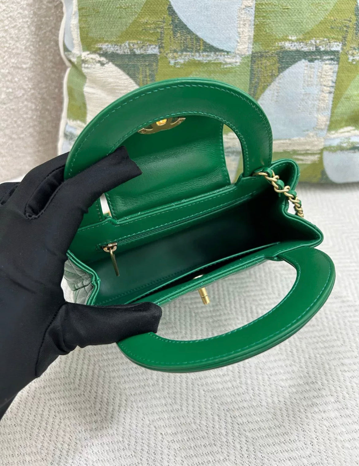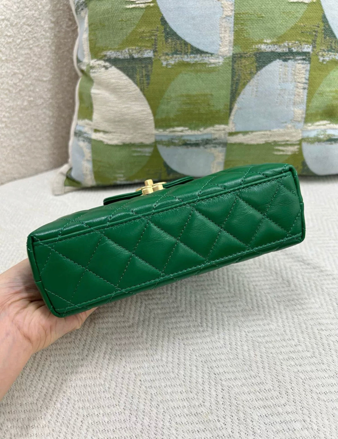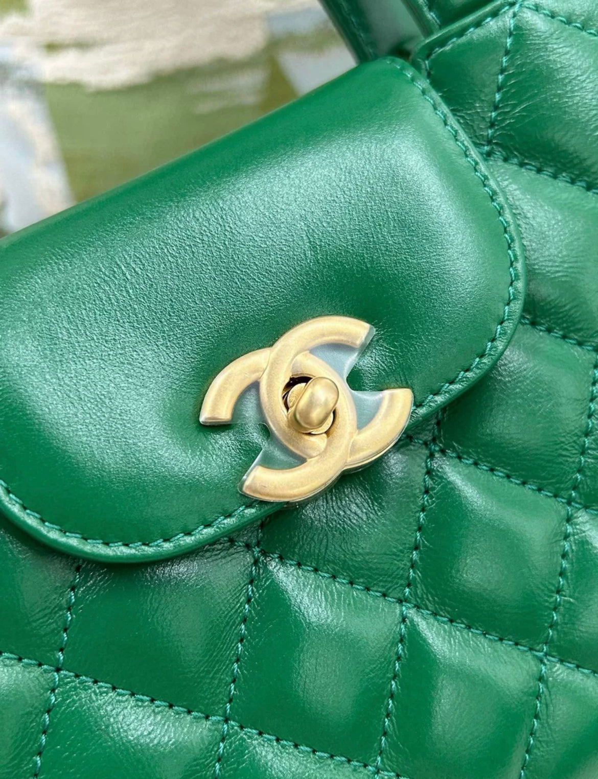 CHANEL 24A Green Kelly Bag Gold hardware