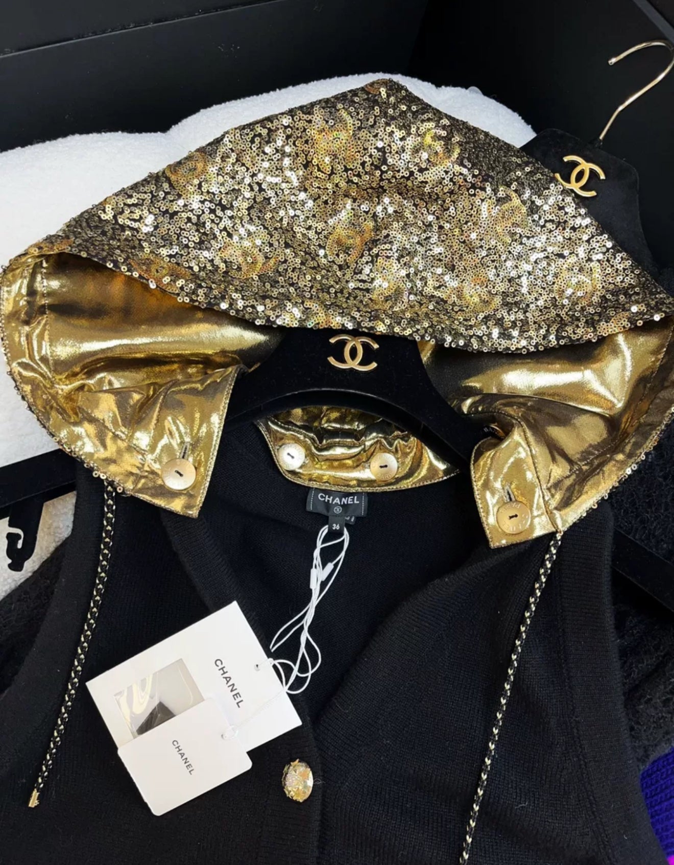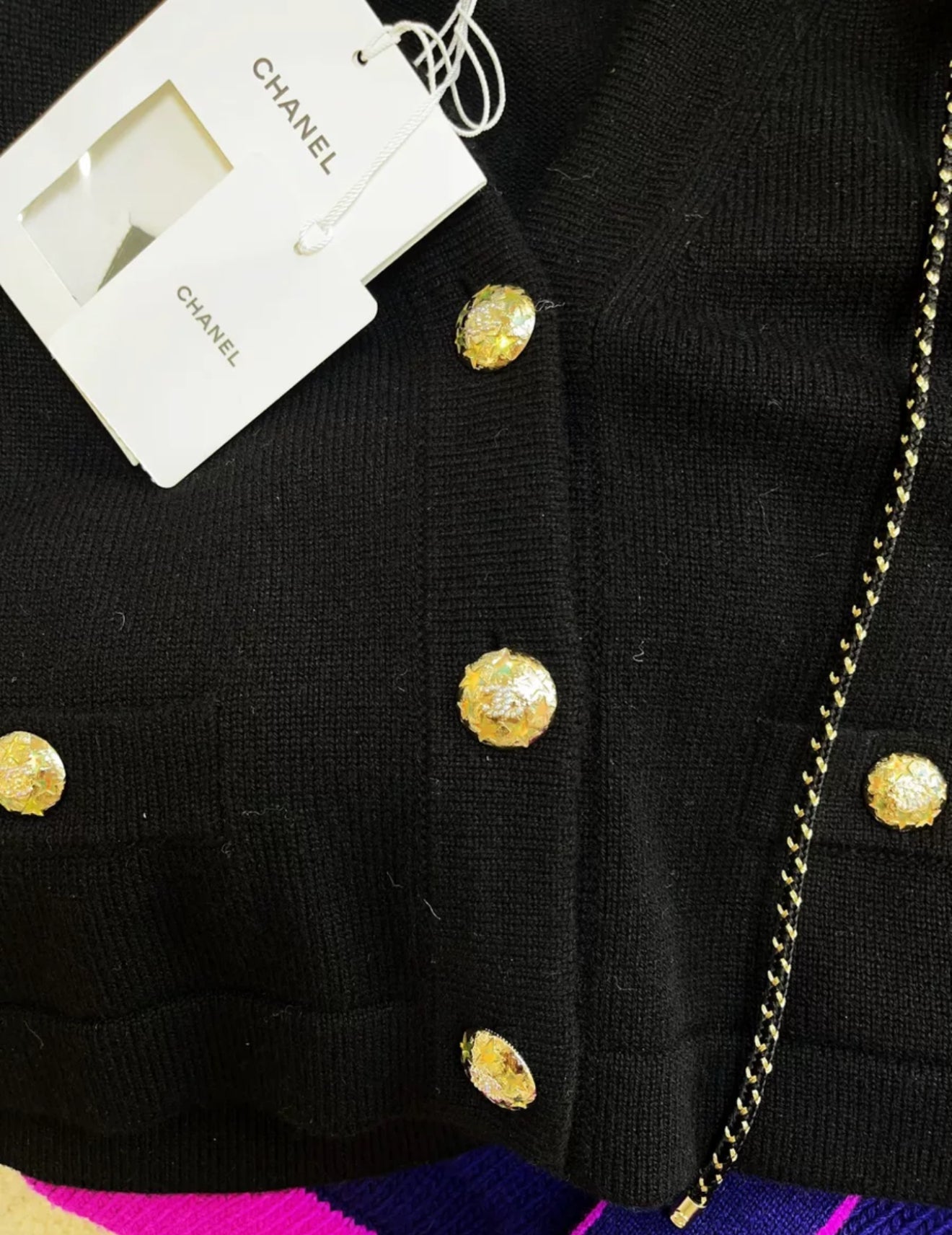 Chanel 24C Black & Gold Cashmere Cardigan