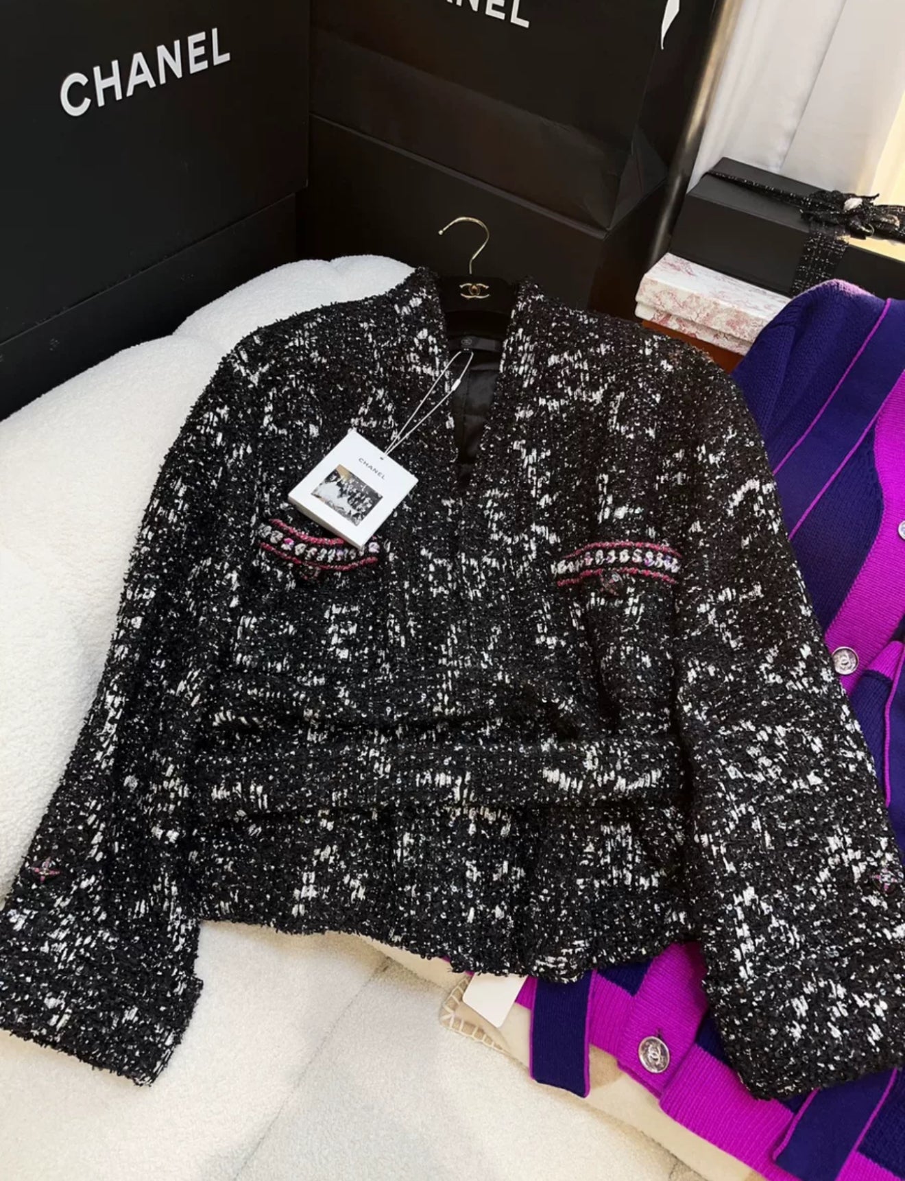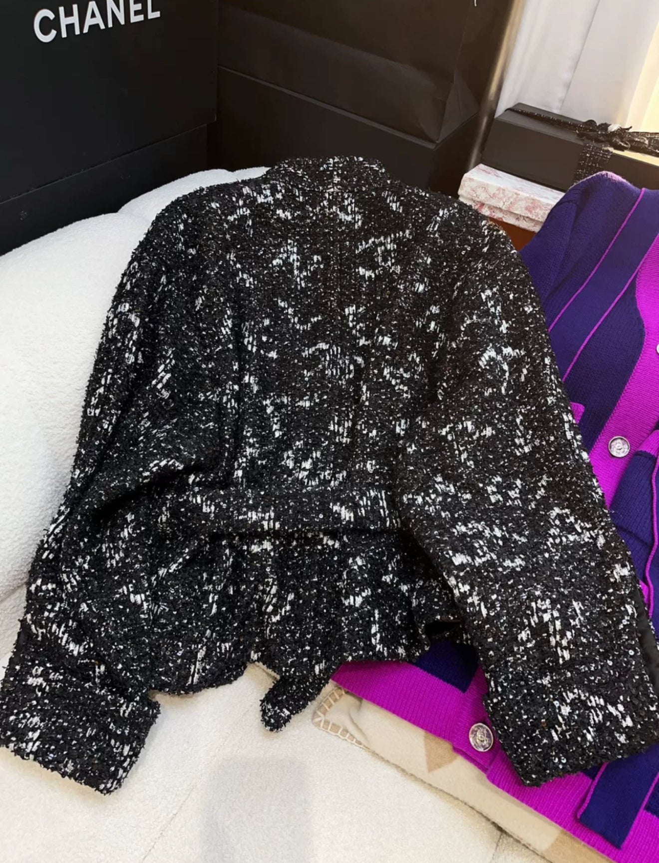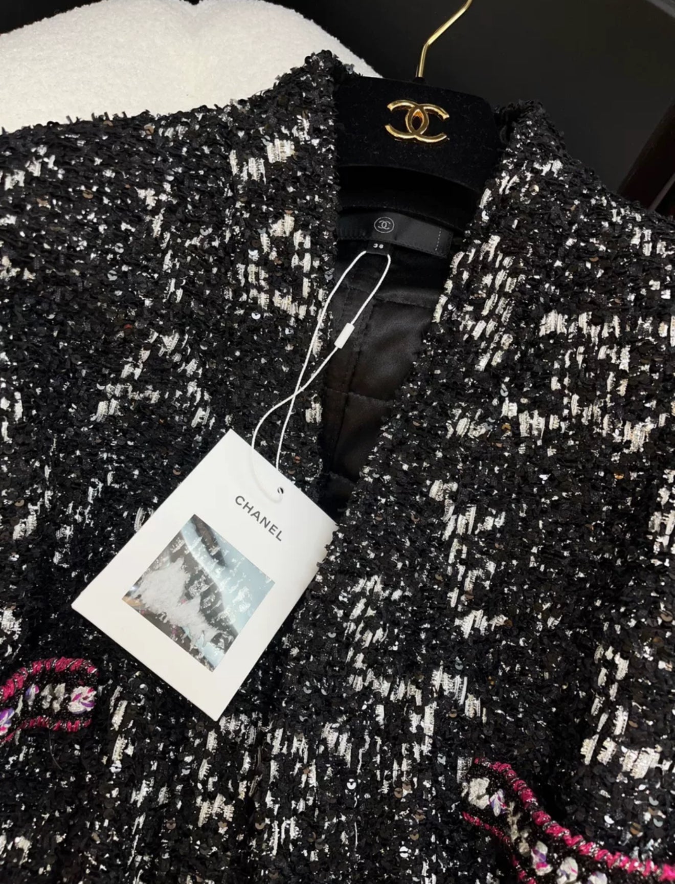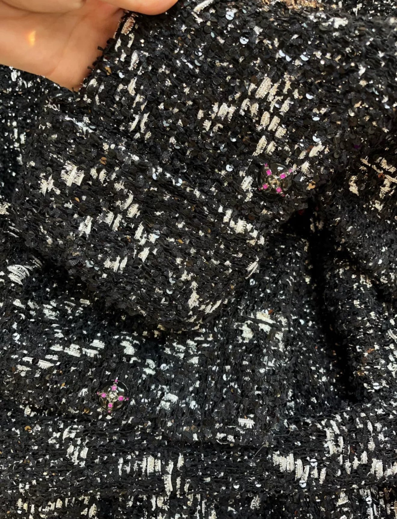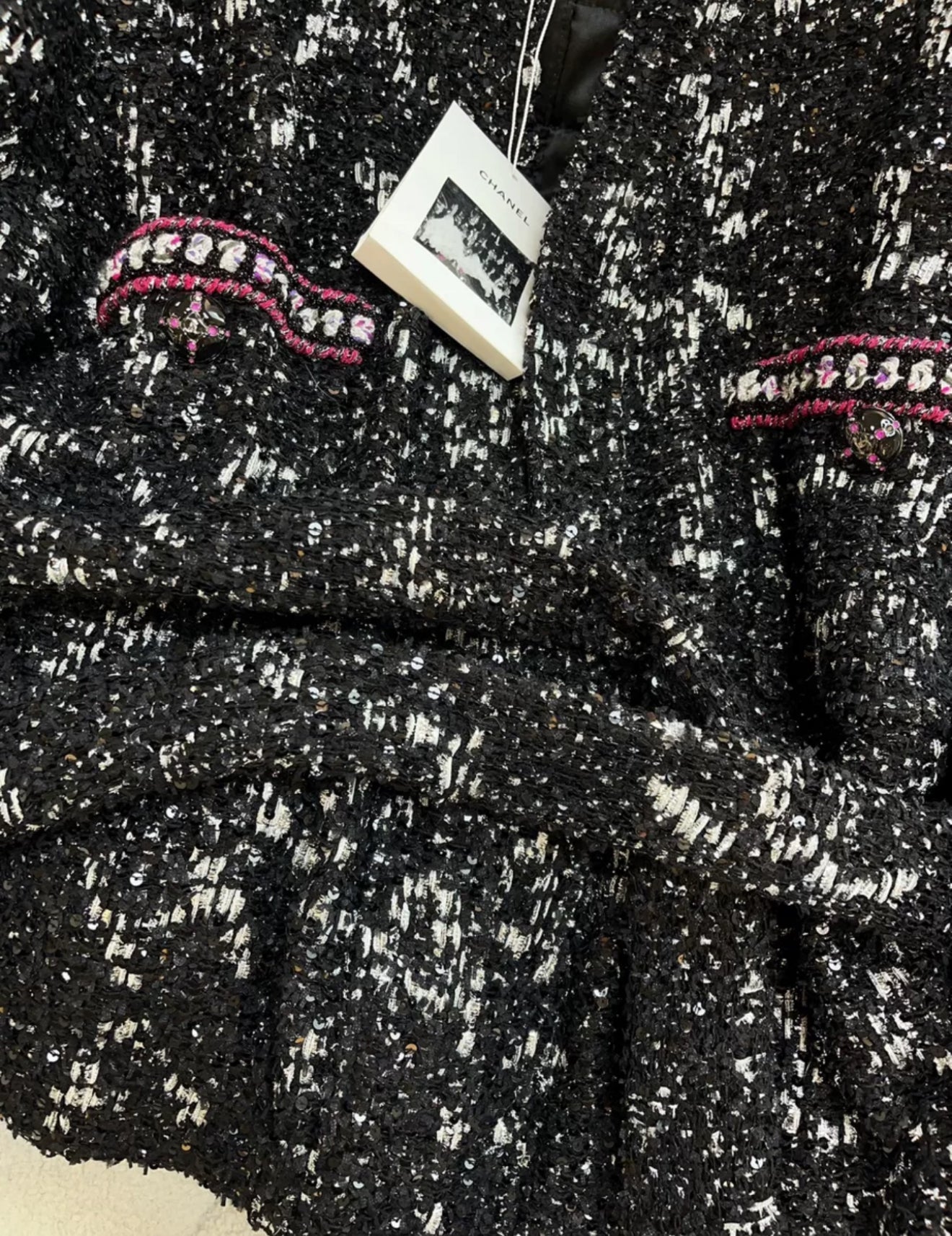 Chanel 24C Black Sequin Tweed Jacket with belt