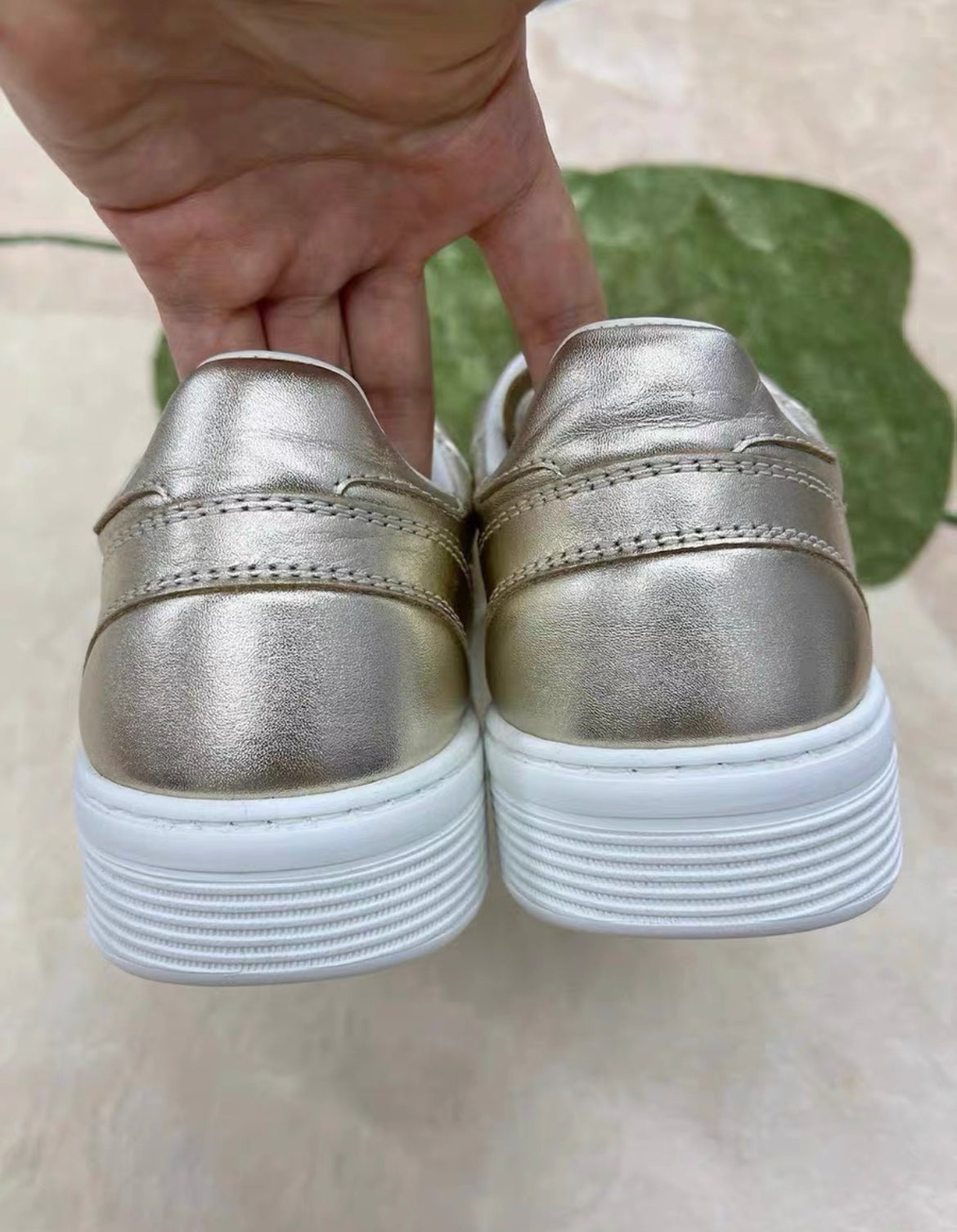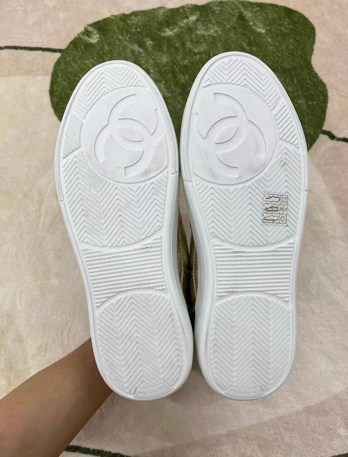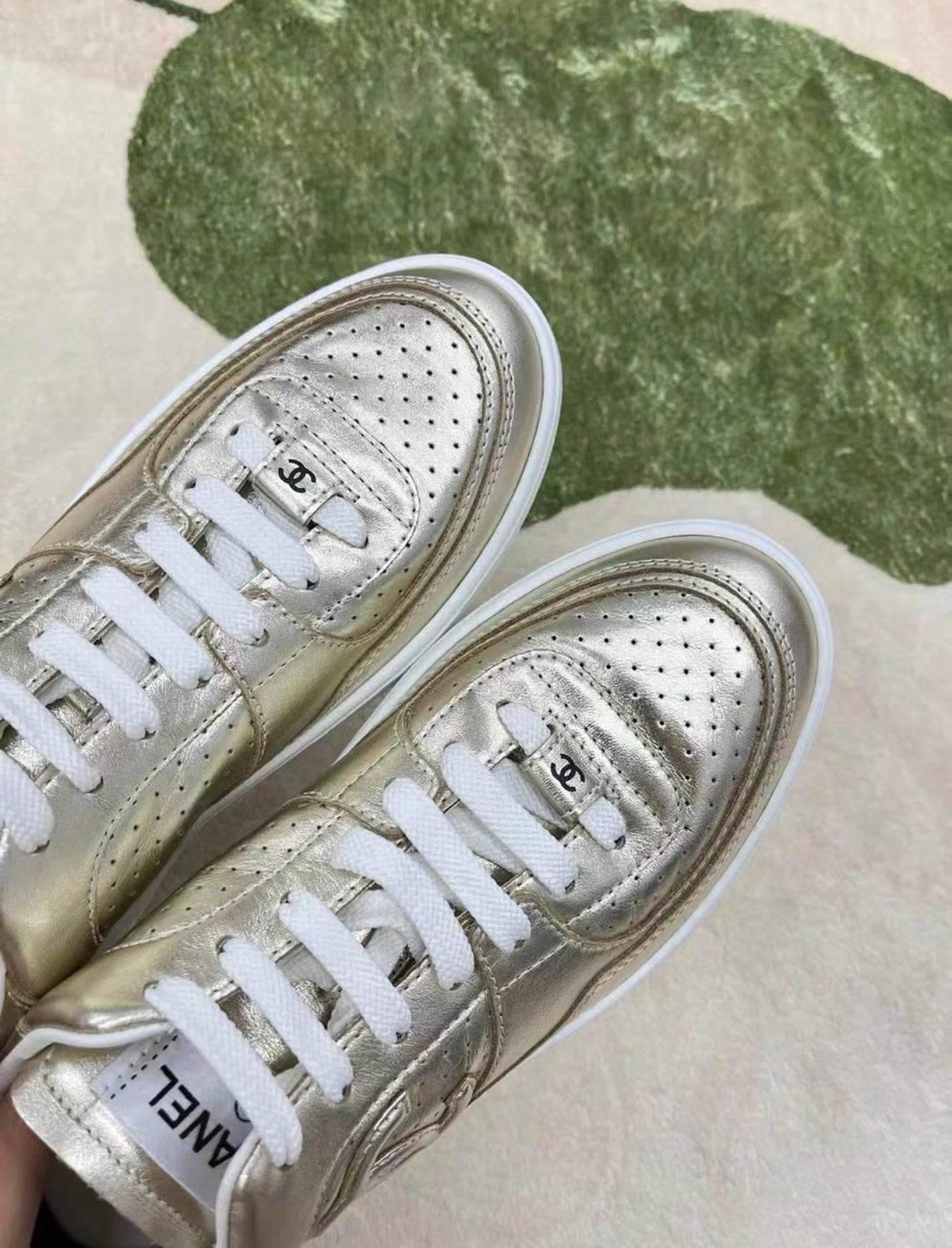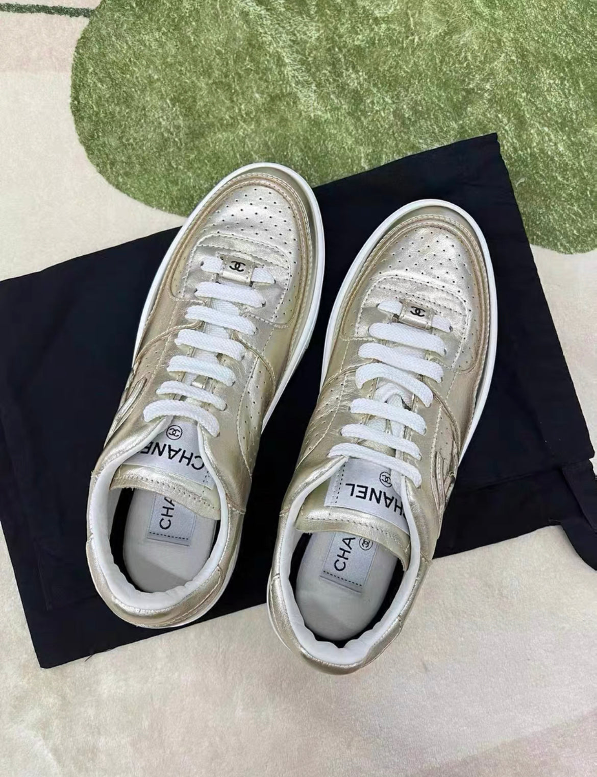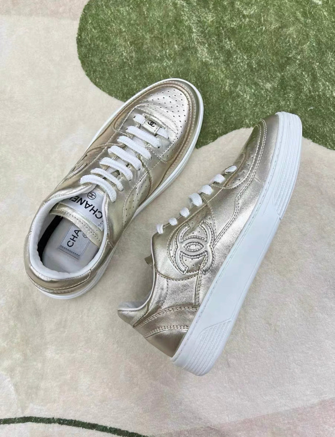 CHANEL 24C CC LEATHER SNEAKERS 38 GOLD