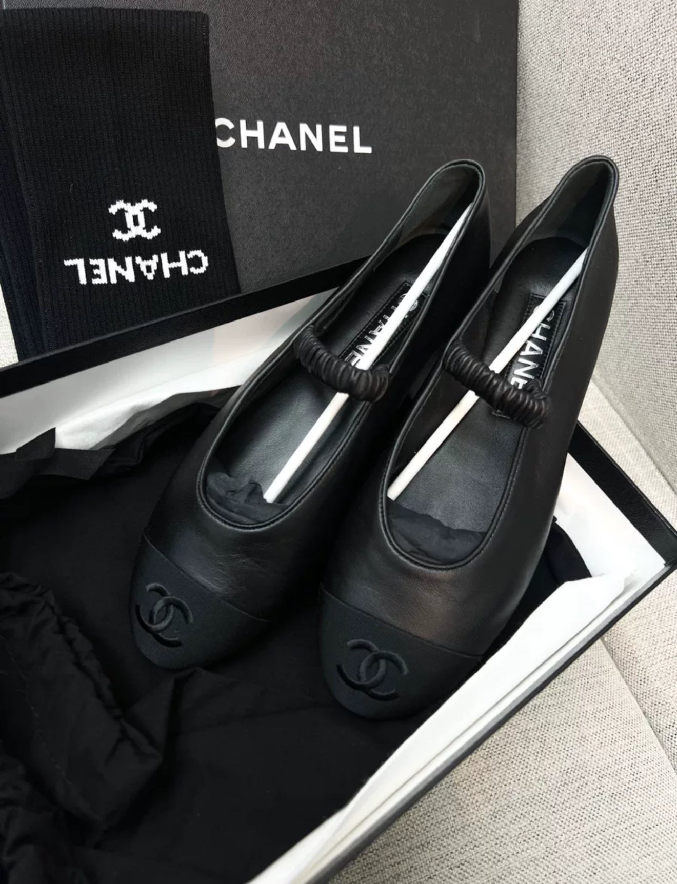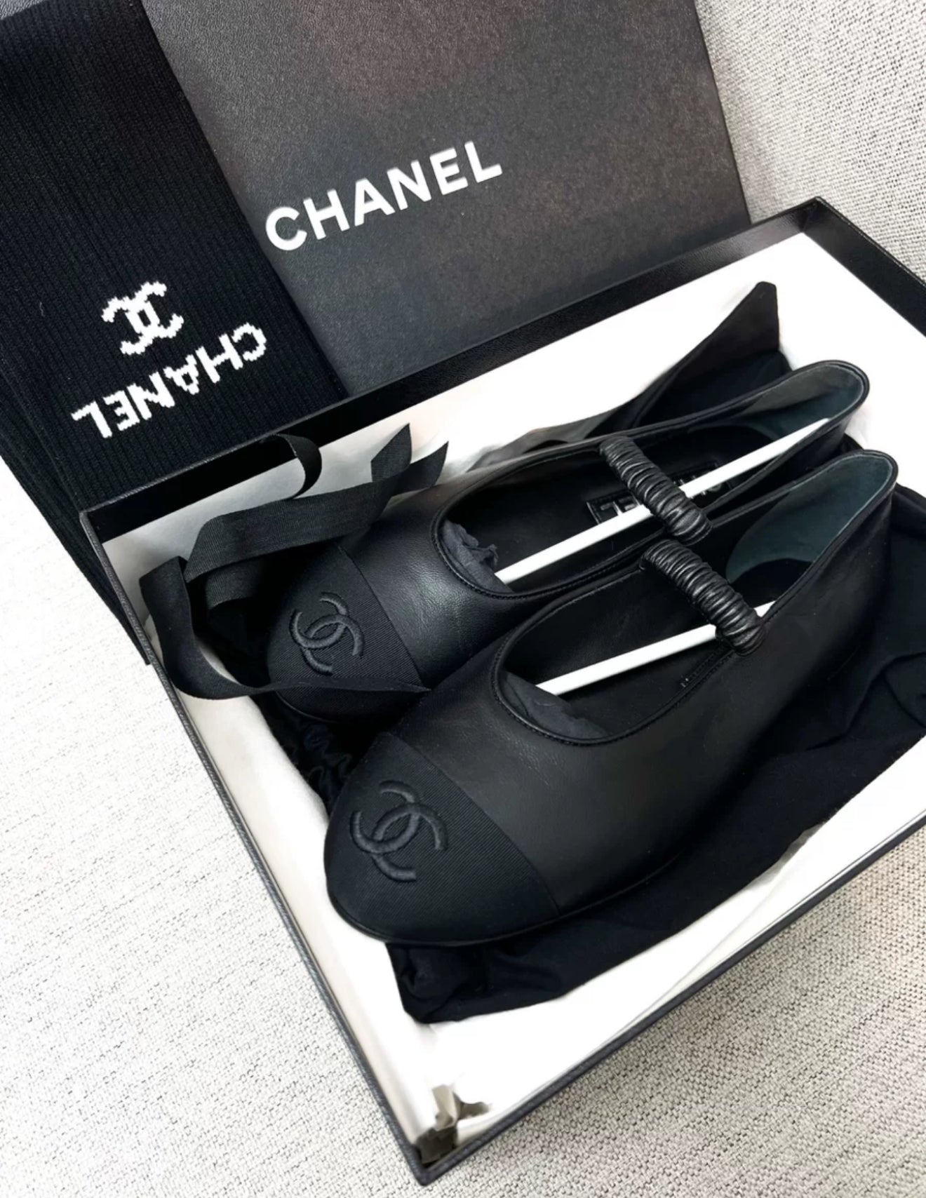 Chanel 24c Mary Jane black leather ballet flats