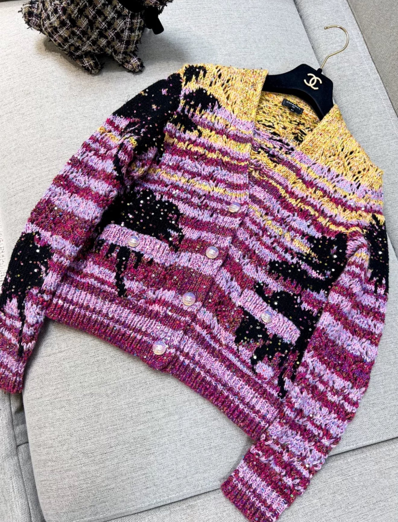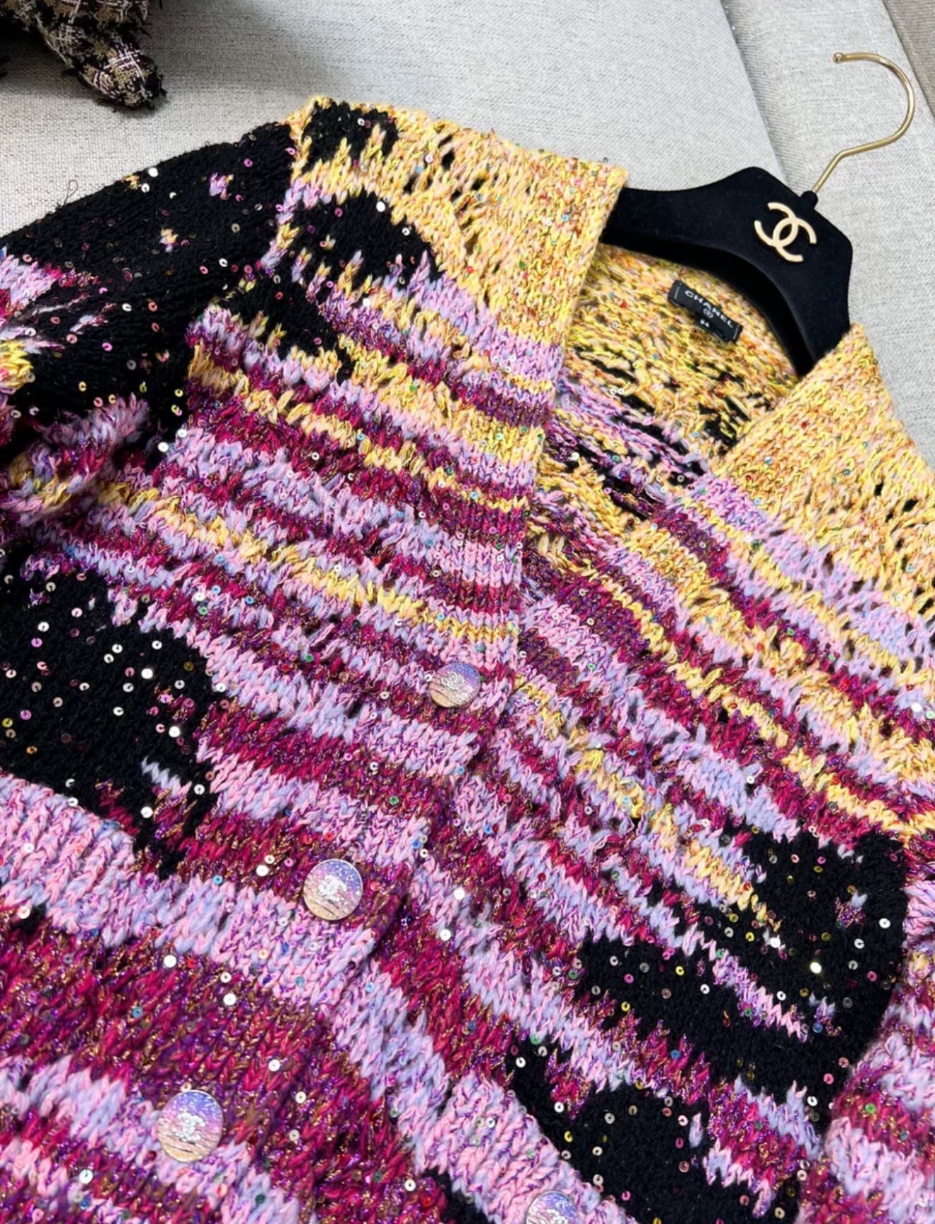 Chanel's 24C multicolor cardigan is a timeless and beautiful addition to your holiday wardrobe. This knitted cardigan in size 34 exudes sophistication and elegance, making it a must-have for any fashion expert. Its versatility and style will elevate any outfit, making it a staple piece for years to come.