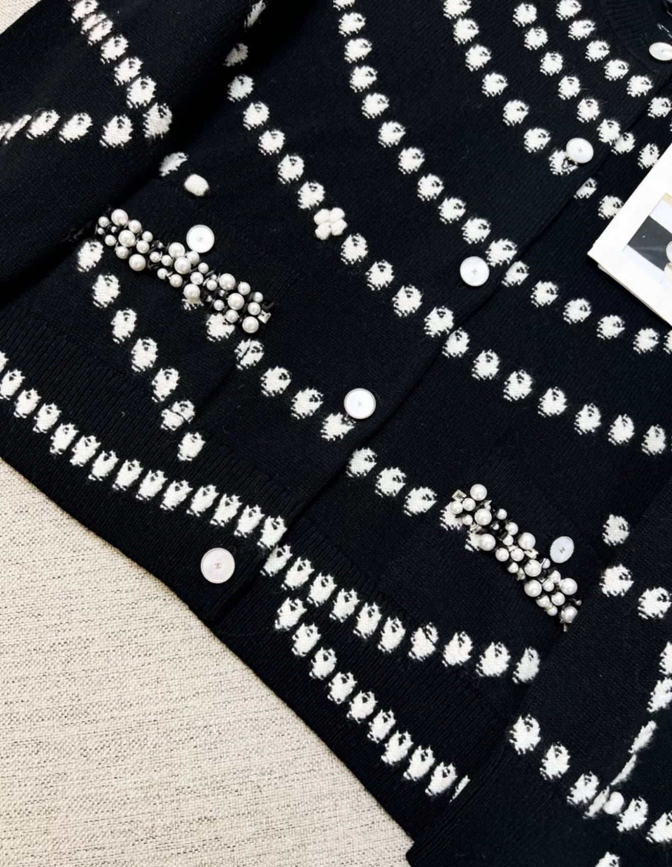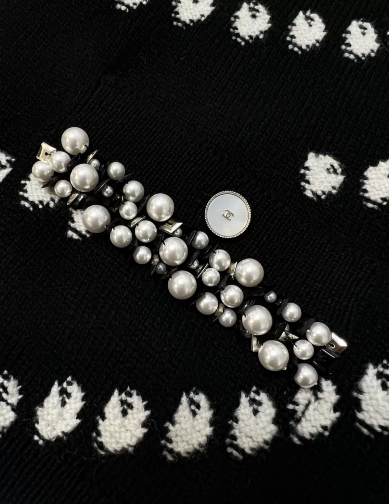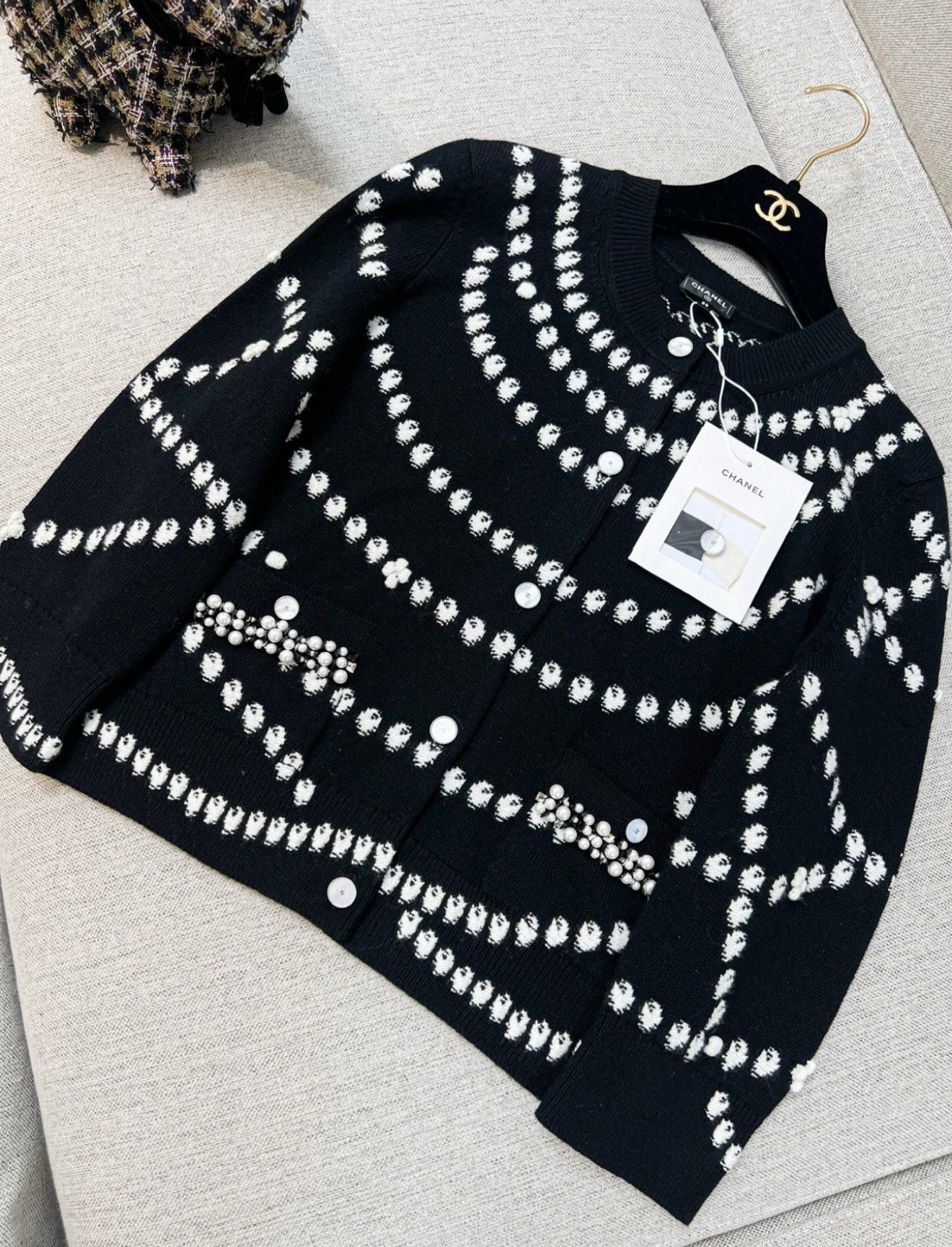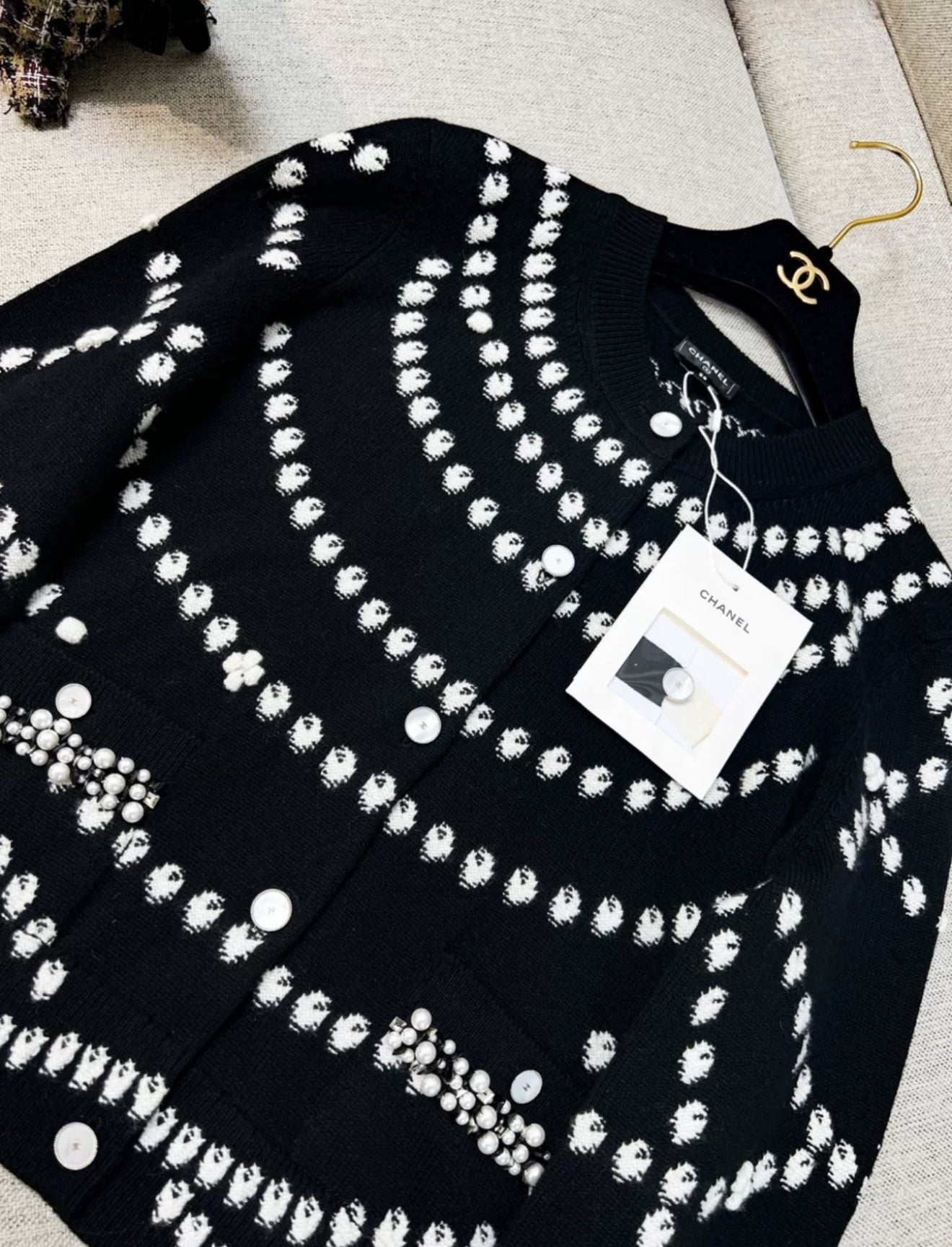 Chanel 25P Black & White Cashmere Embroidered Cardigan