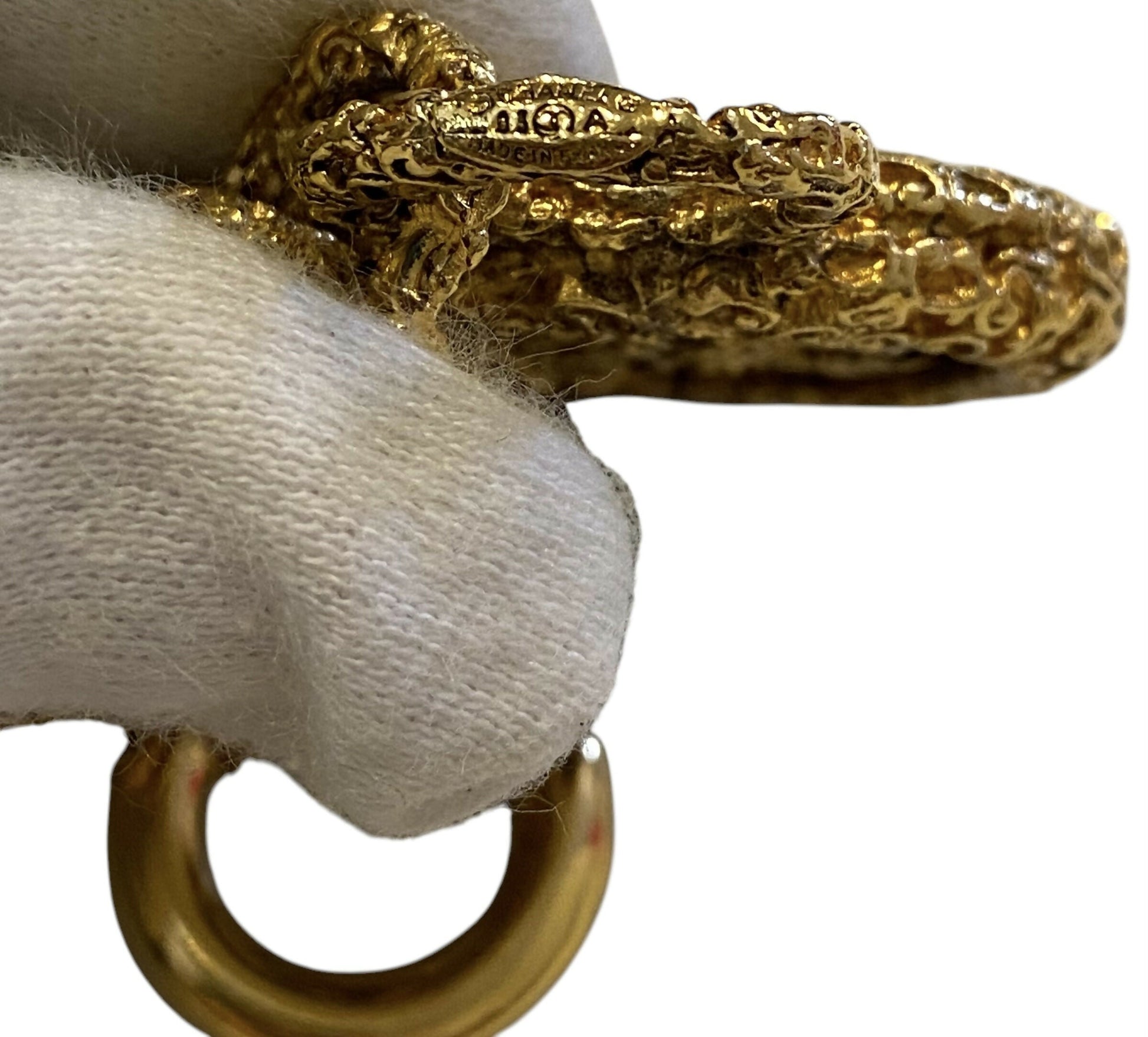 This Large Rare 24K Gold Plated and Black Onyx Chanel Chain Link Bracelet is from 1993 Fall, a pinnacle of luxury and craftsmanship. Featuring the iconic interlocking CC logos on both sides in a textured finish, it is set against a striking Black Onyx stone, exuding timeless elegance and sophistication. Crafted with meticulous attention to detail, this bracelet reflects Chanel’s signature blend of bold design and refined artistry. Highly sought after by collectors, this bracelet encapsulate the essence of 1990s Chanel, making it a treasured piece for fashion connoisseurs and a testament to the brand’s enduring legacy.