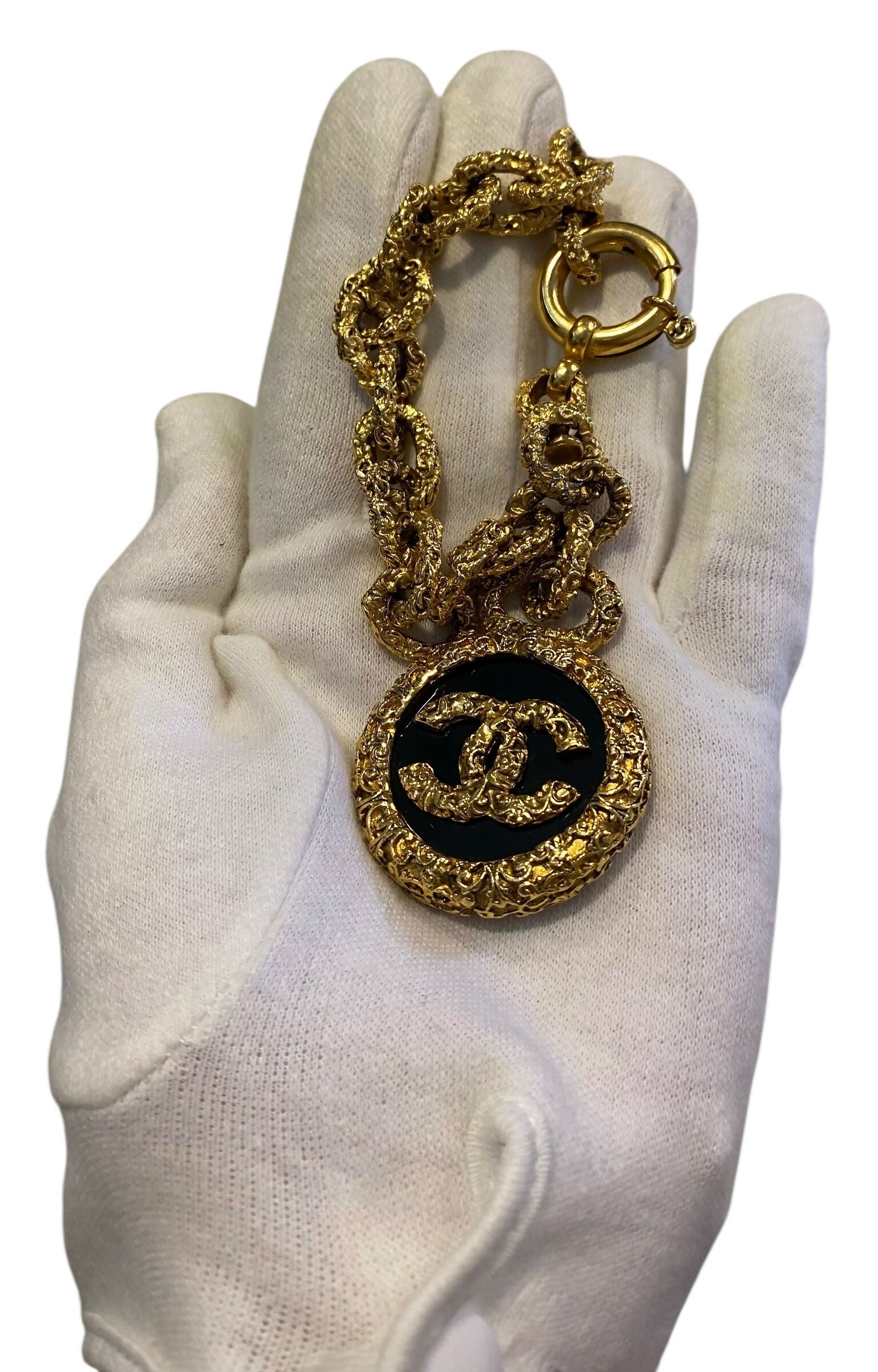 Chanel 93A Large Gold Black Metal Medallion CC Florentine Chain Link Bracelet