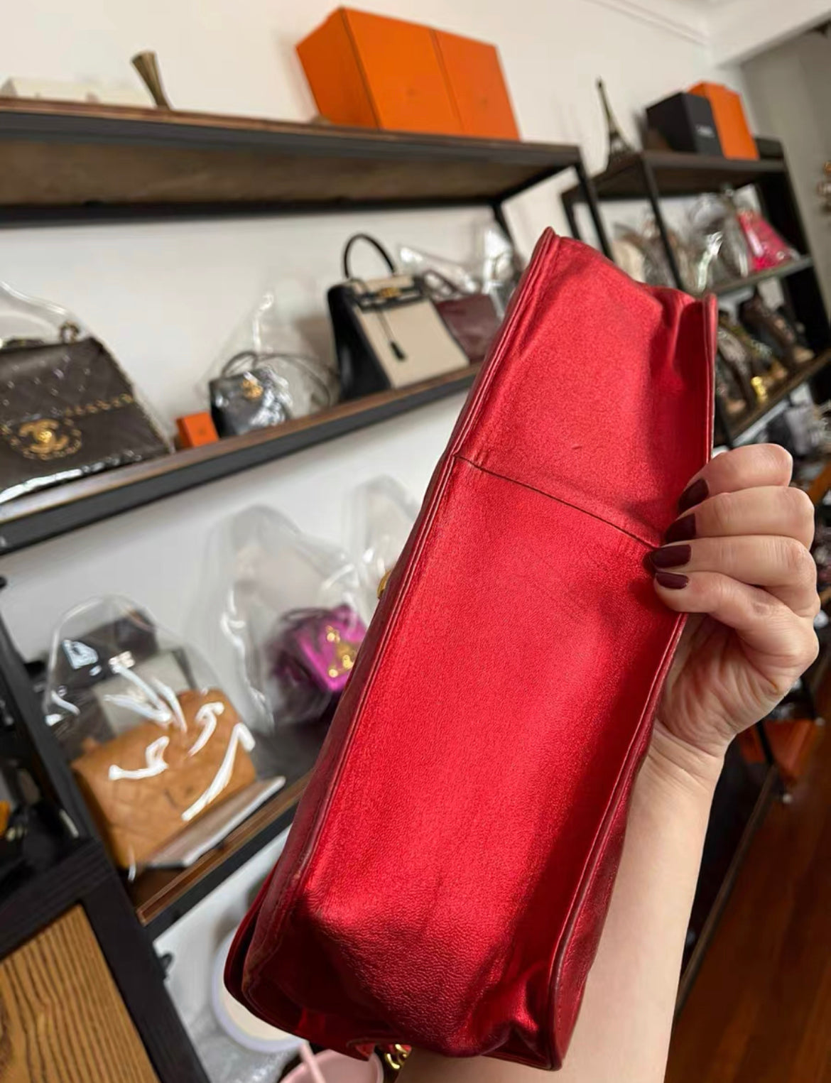 CHANEL 1995 Spring summer "BARBIE" MAXI FLAP METALLIC RED BAG 24K GHW CLASSIC PCI