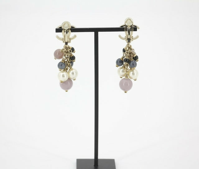 Chanel A11P Imitation Pearl Purple Blue Grape String CLIP-on Earrings