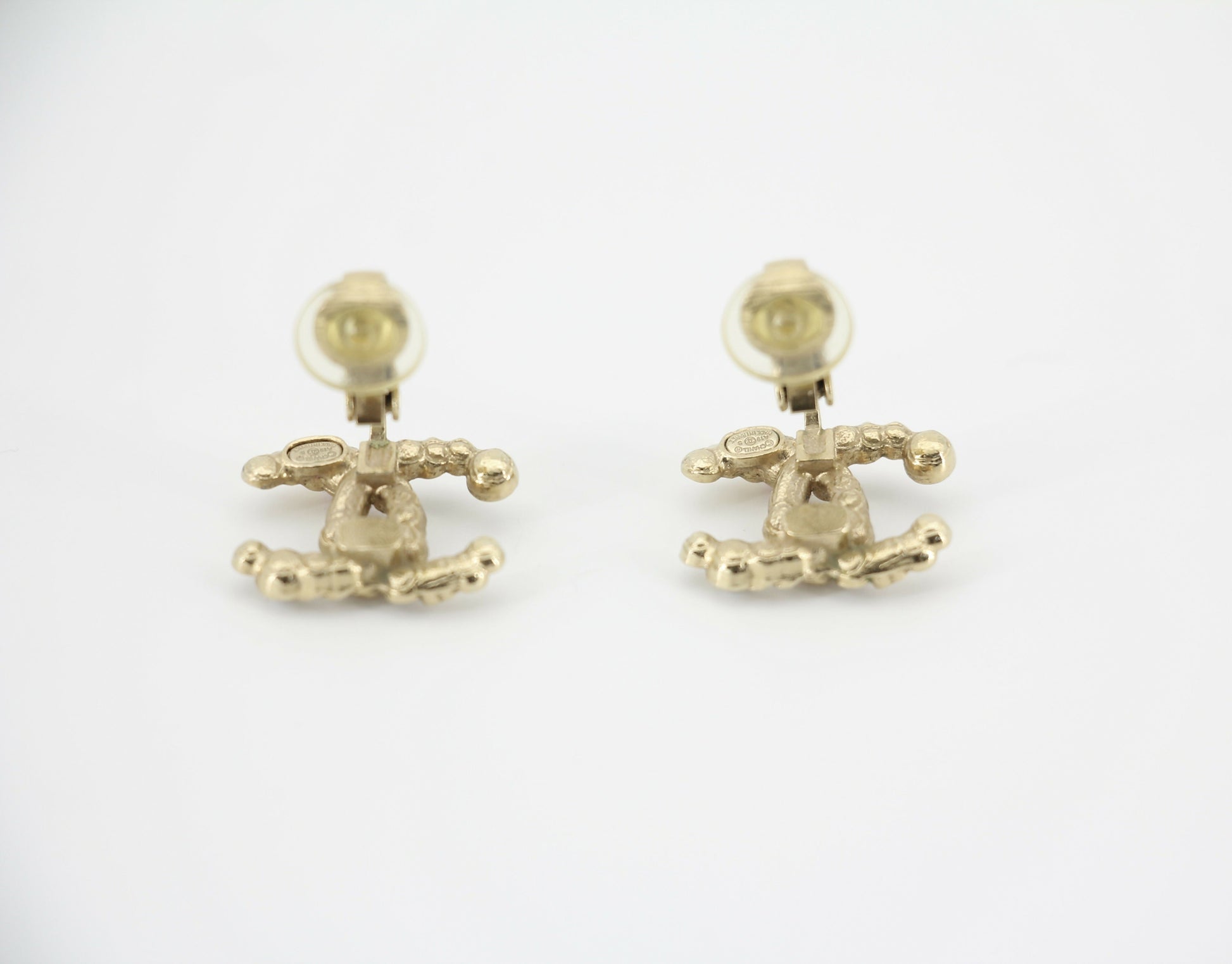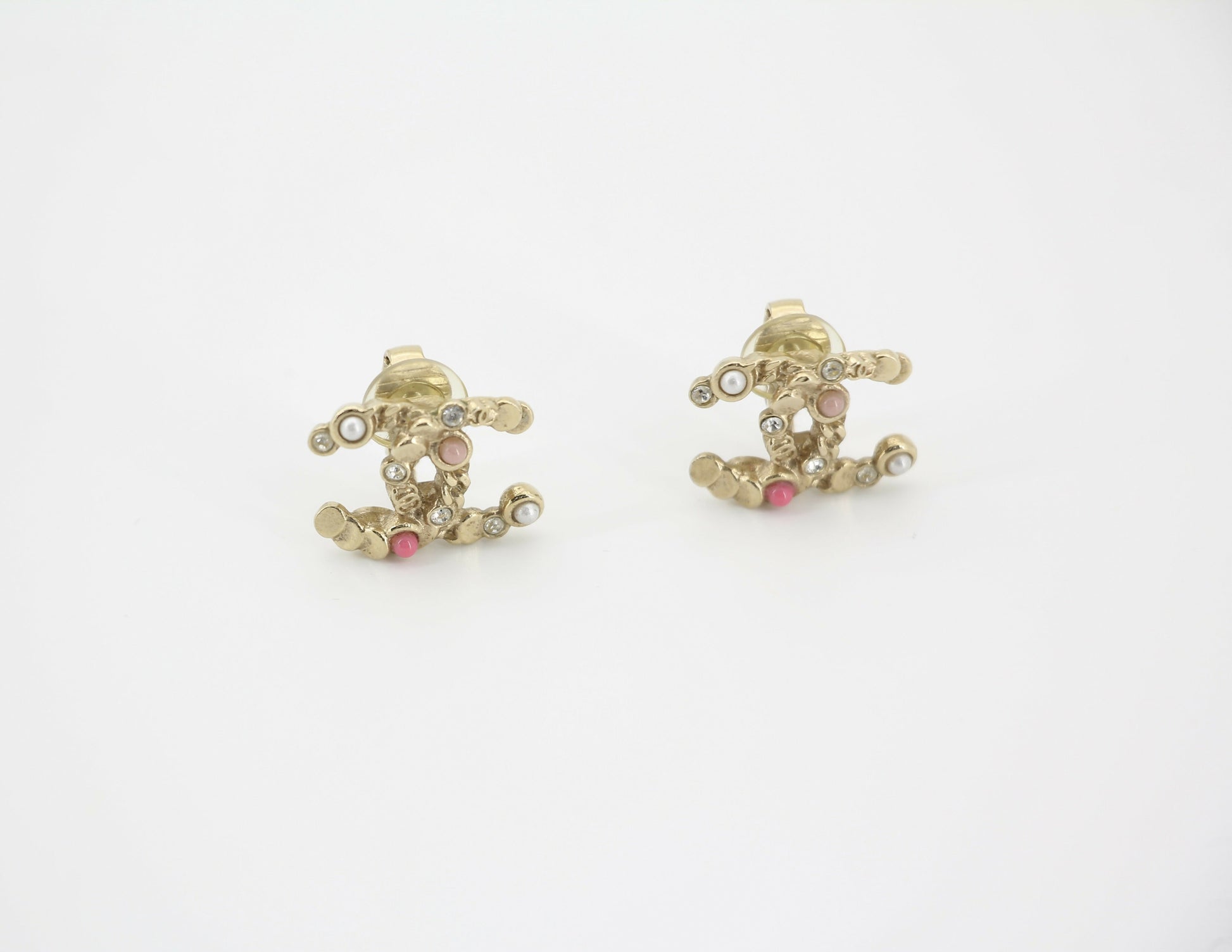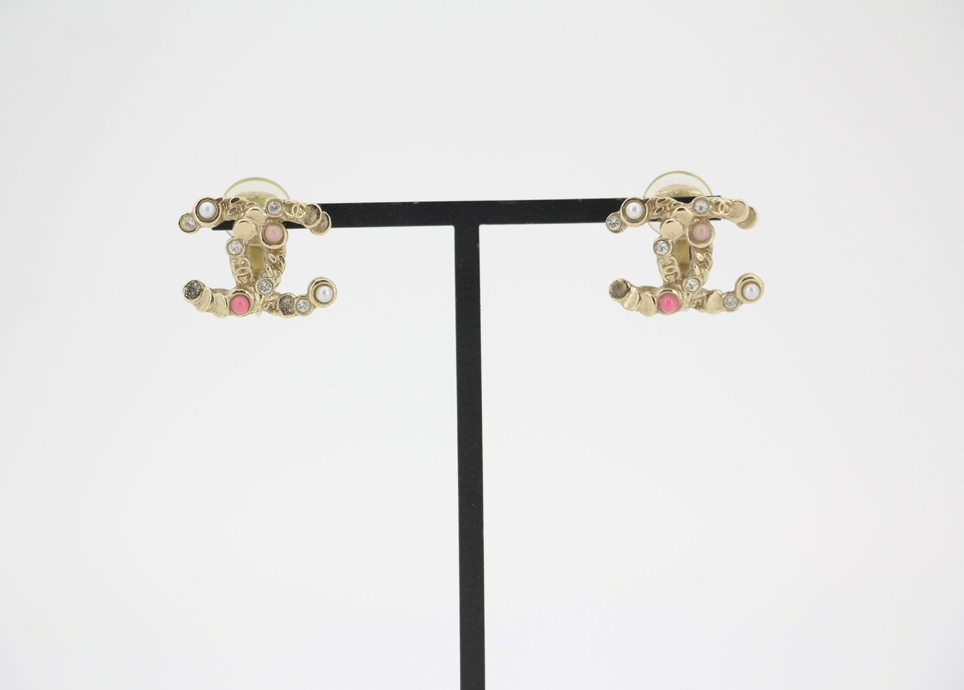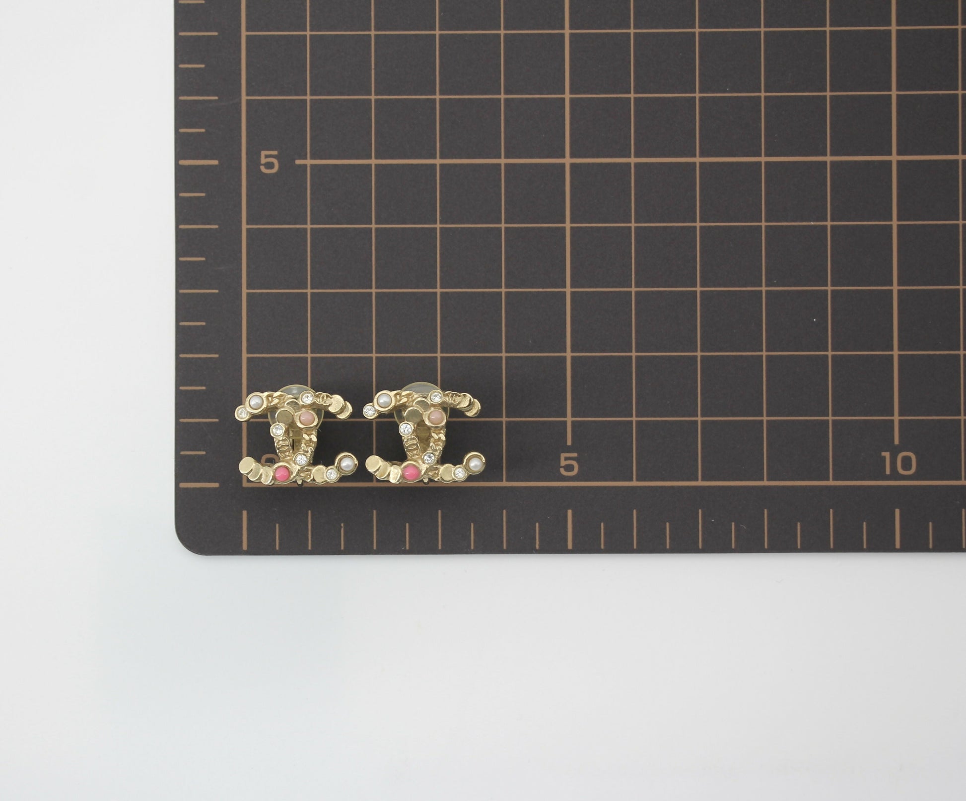 Chanel A19S Metal Dark Pink with Diamond CC Clip-on Earrings