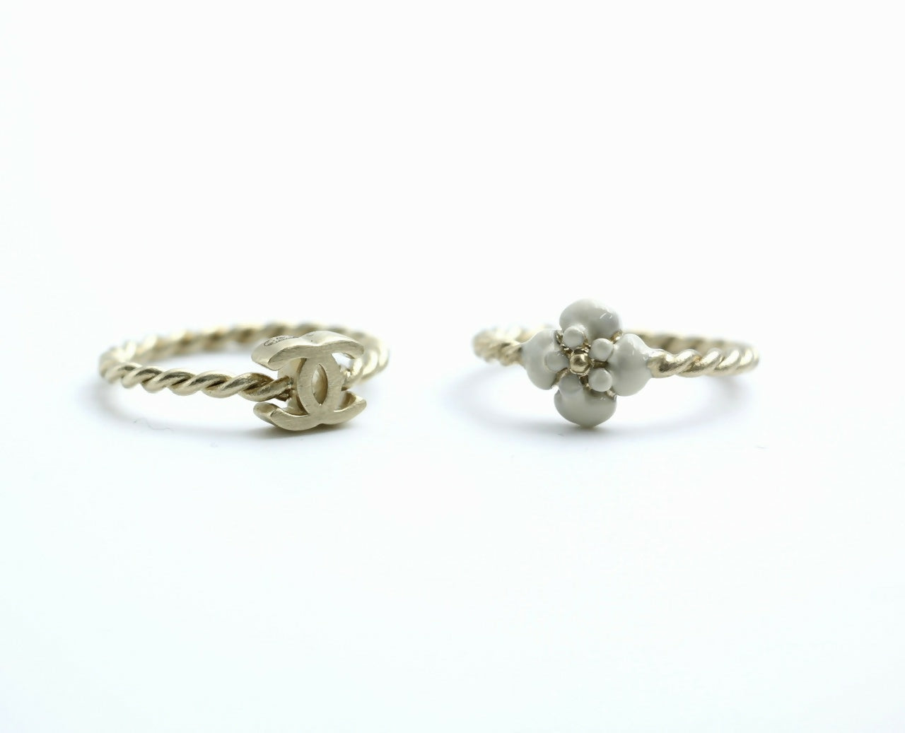 Chanel B11A Metal Camellia Two-Piece Ring Set