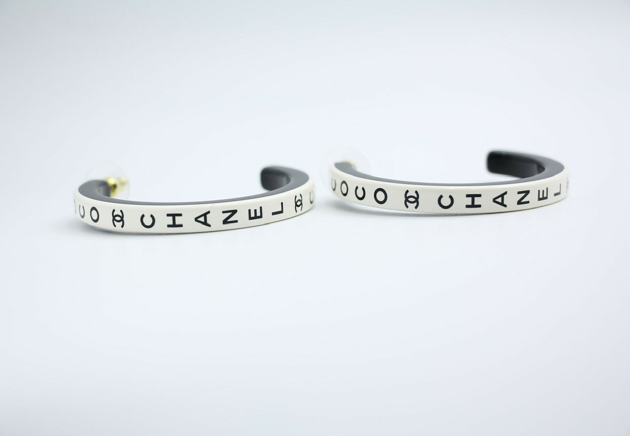 Chanel B22S Resin White Curved COCO Mark Hoop Stud Earrings
