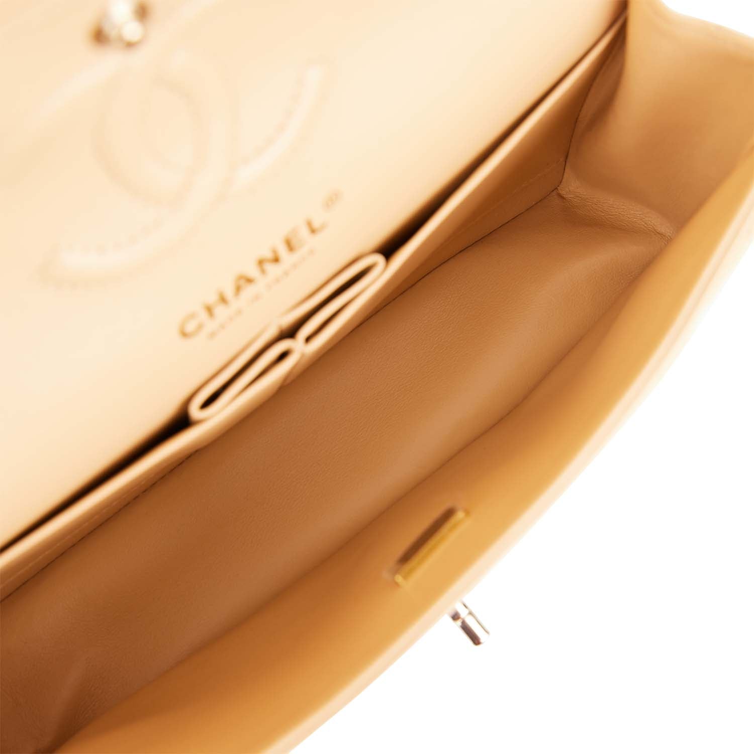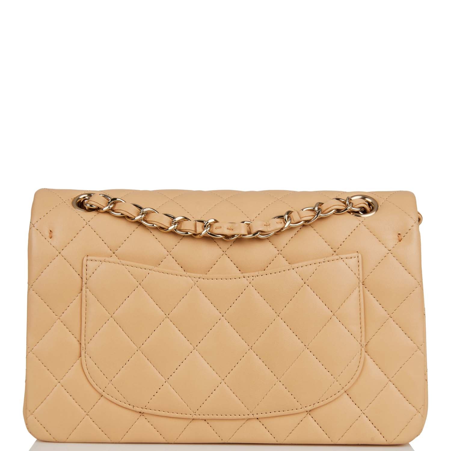Chanel Small Classic Double Flap Beige Quilted Lambskin Light Gold Hardware