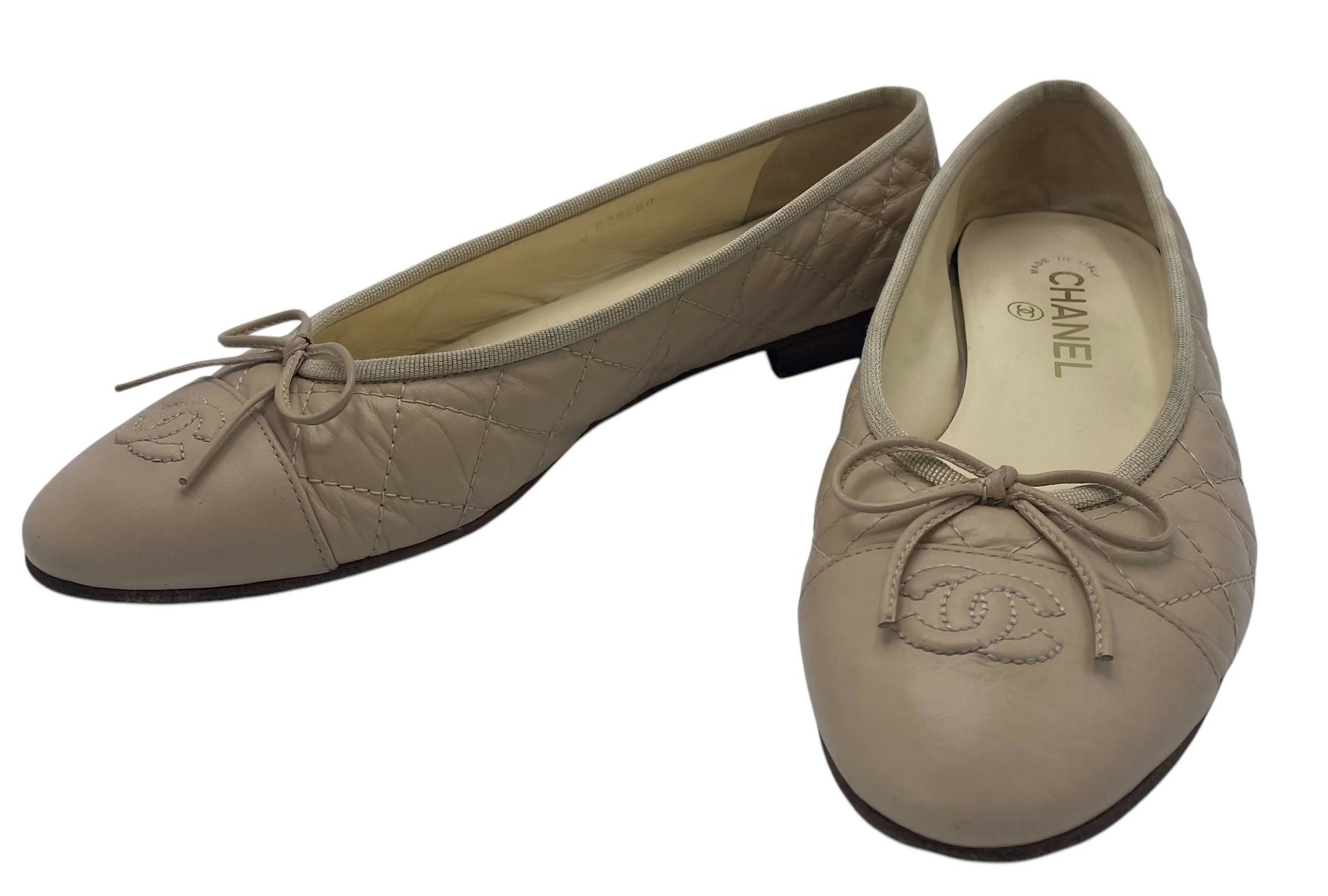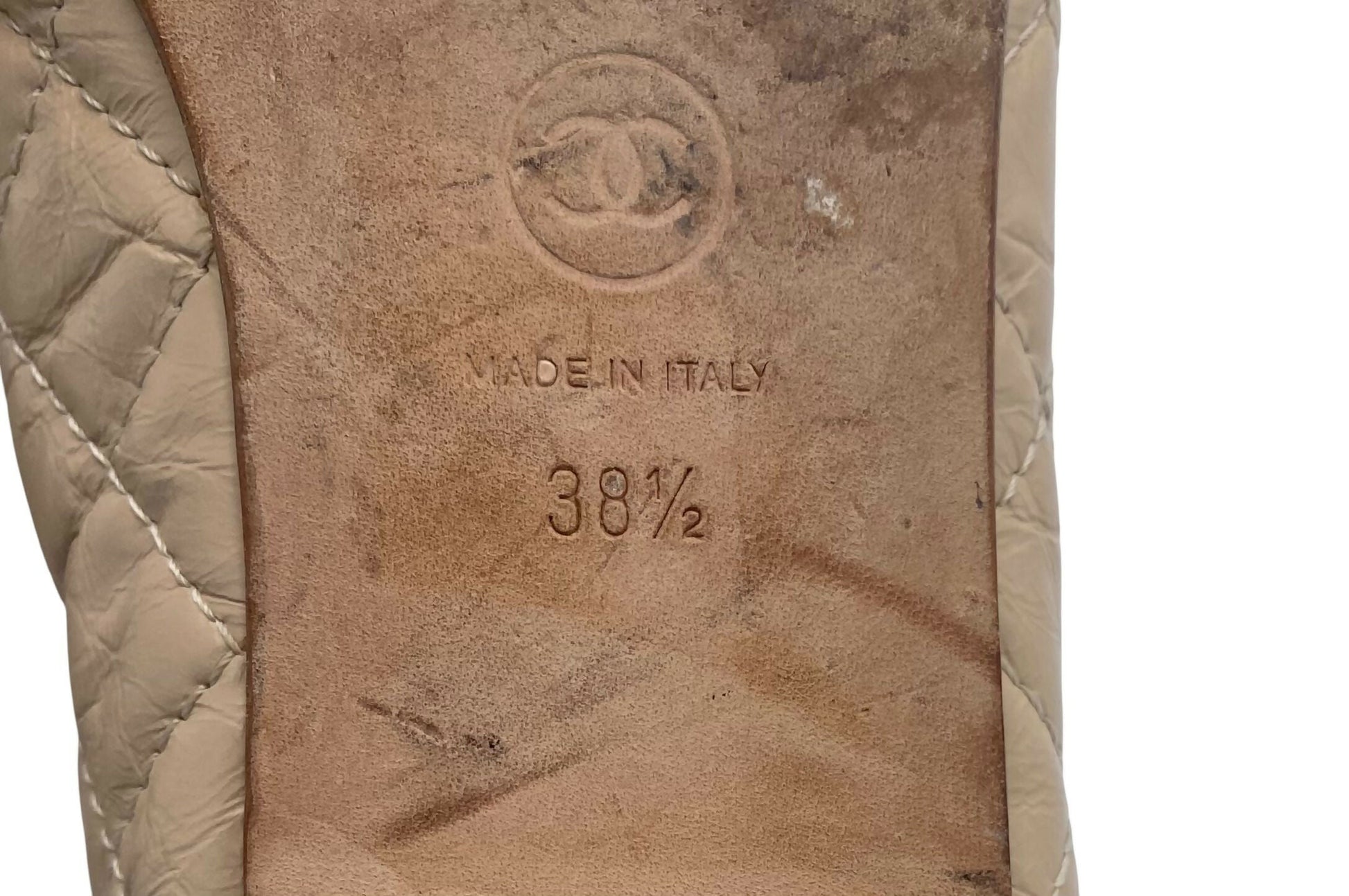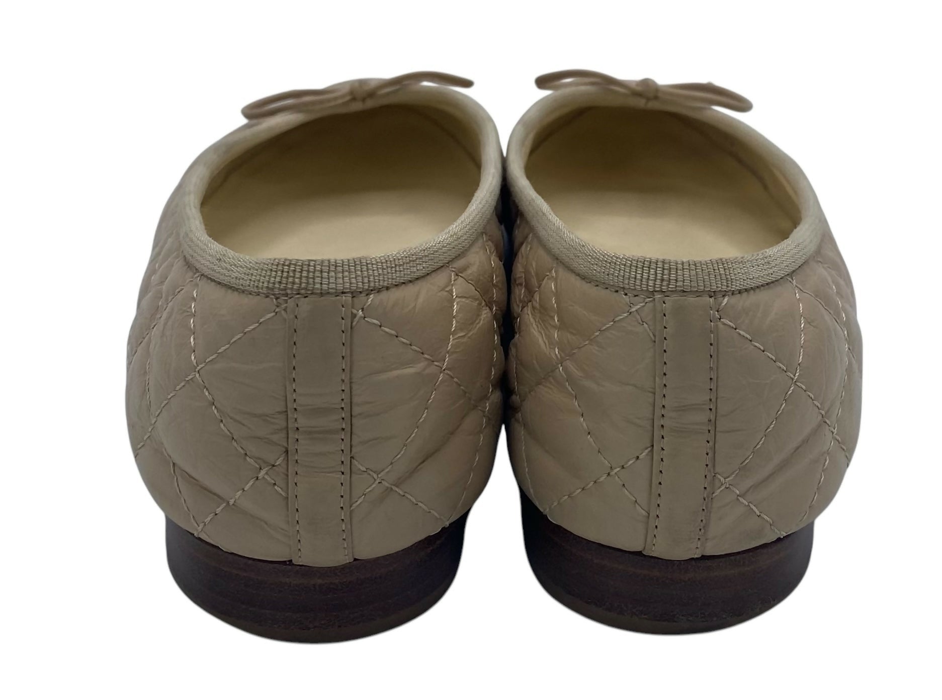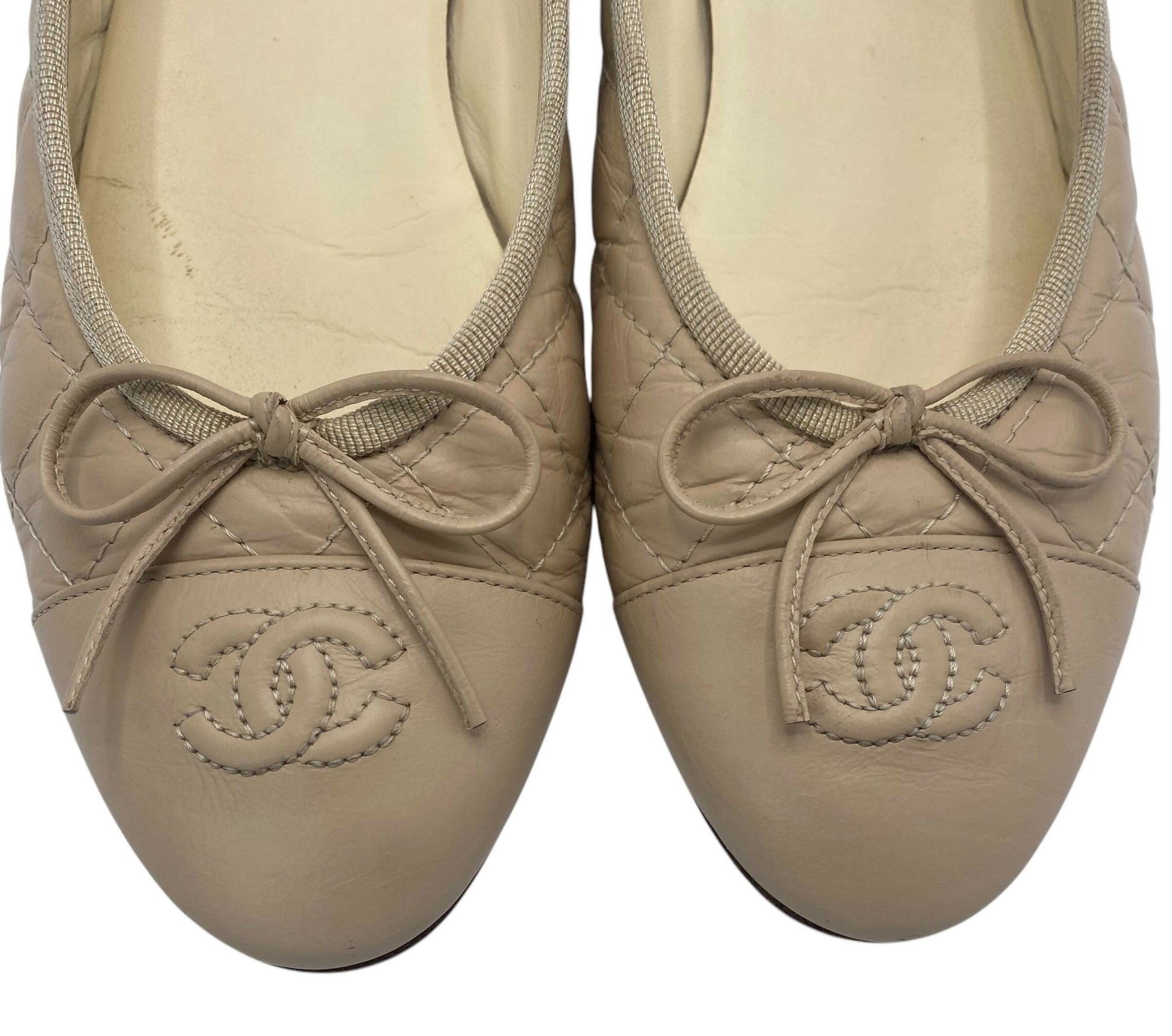 Chanel Beige Quilted Leather CC Bow Ballet Flats EU 38.5
