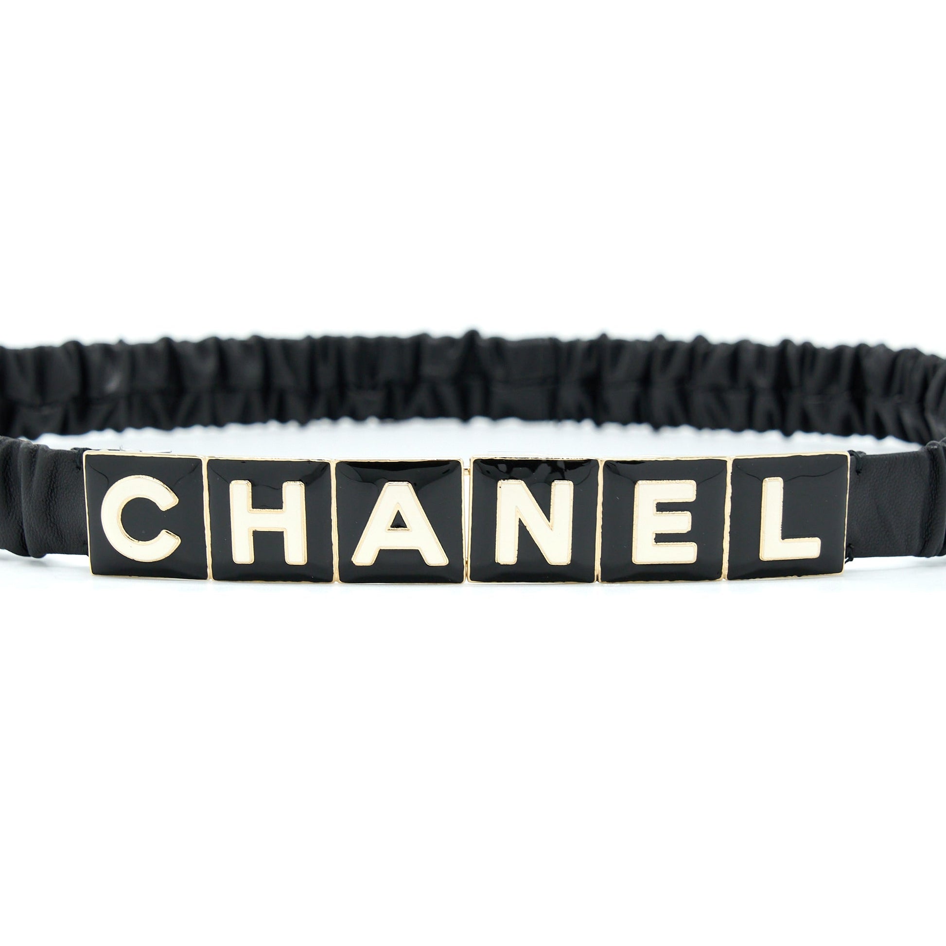 Chanel Belt Lambskin, Metal & Resin Black & White L