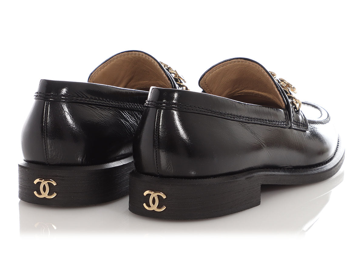 Chanel Black Calfskin Charm Loafers