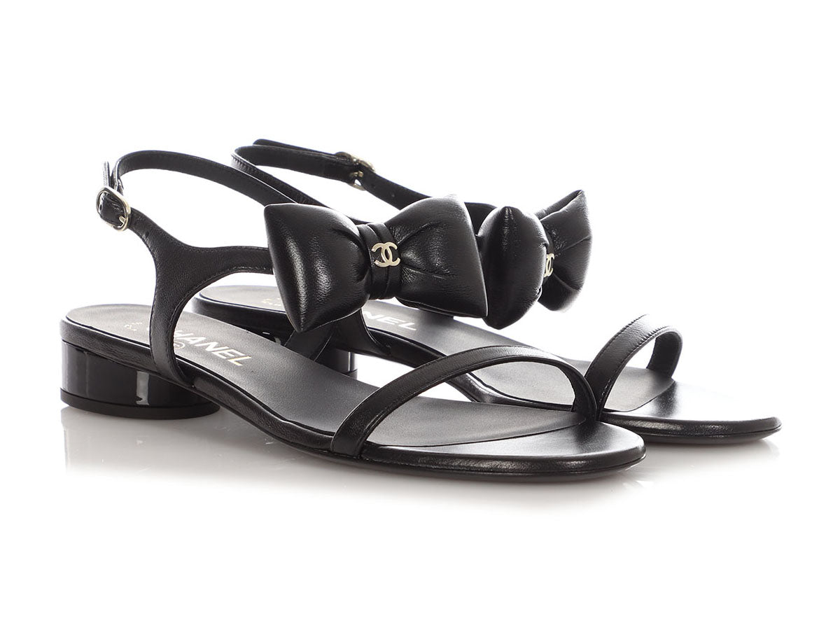 Chanel Black Puffy Bow Sandals