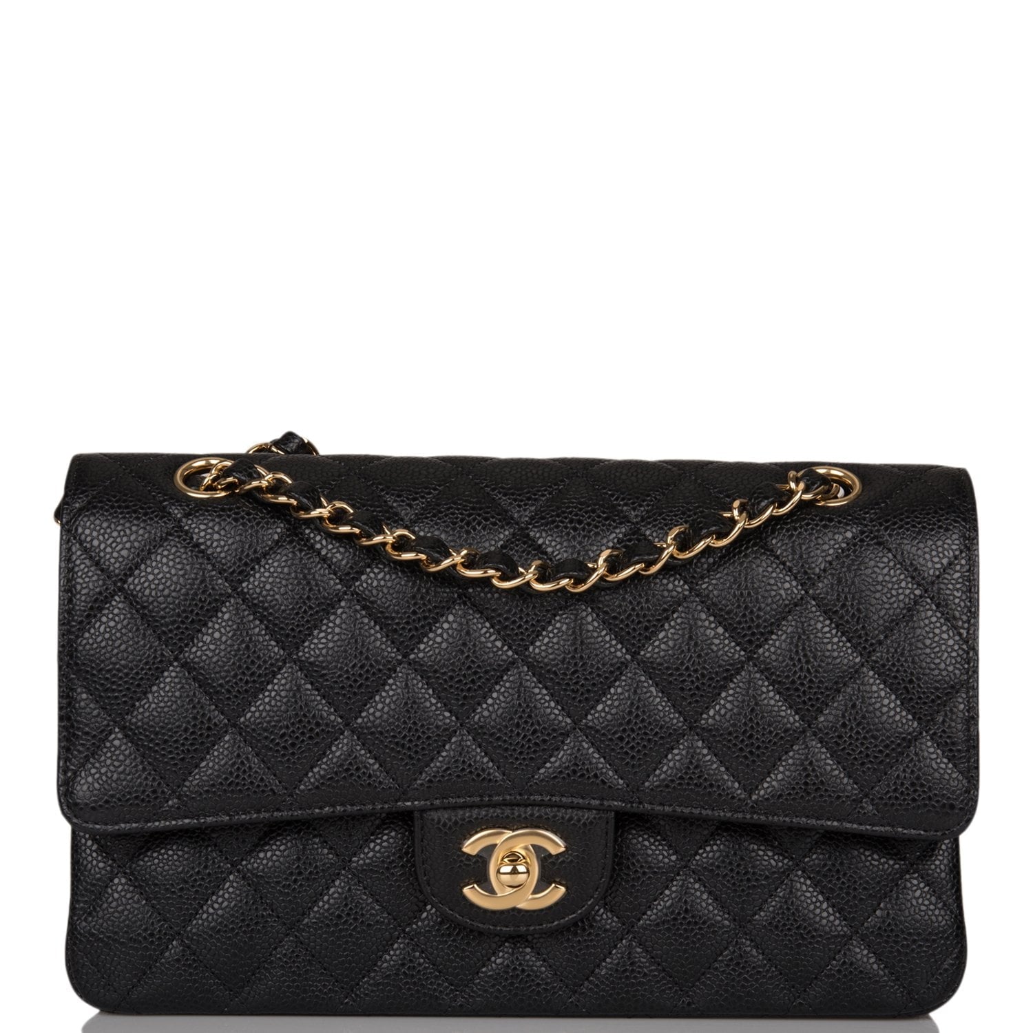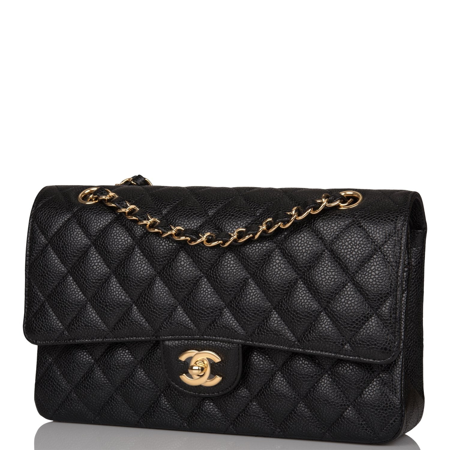 Chanel Black Quilted Caviar Medium Classic Double Flap Bag Gold Hardware