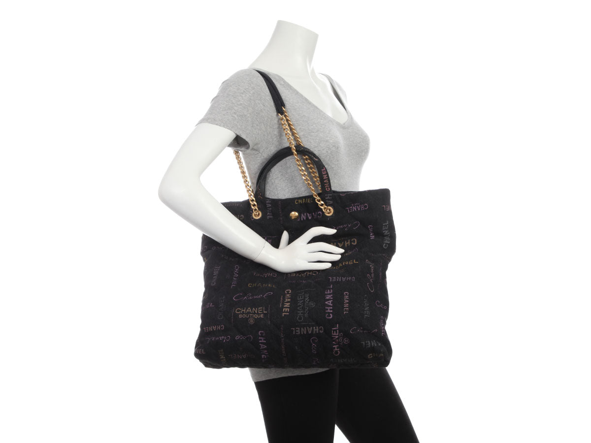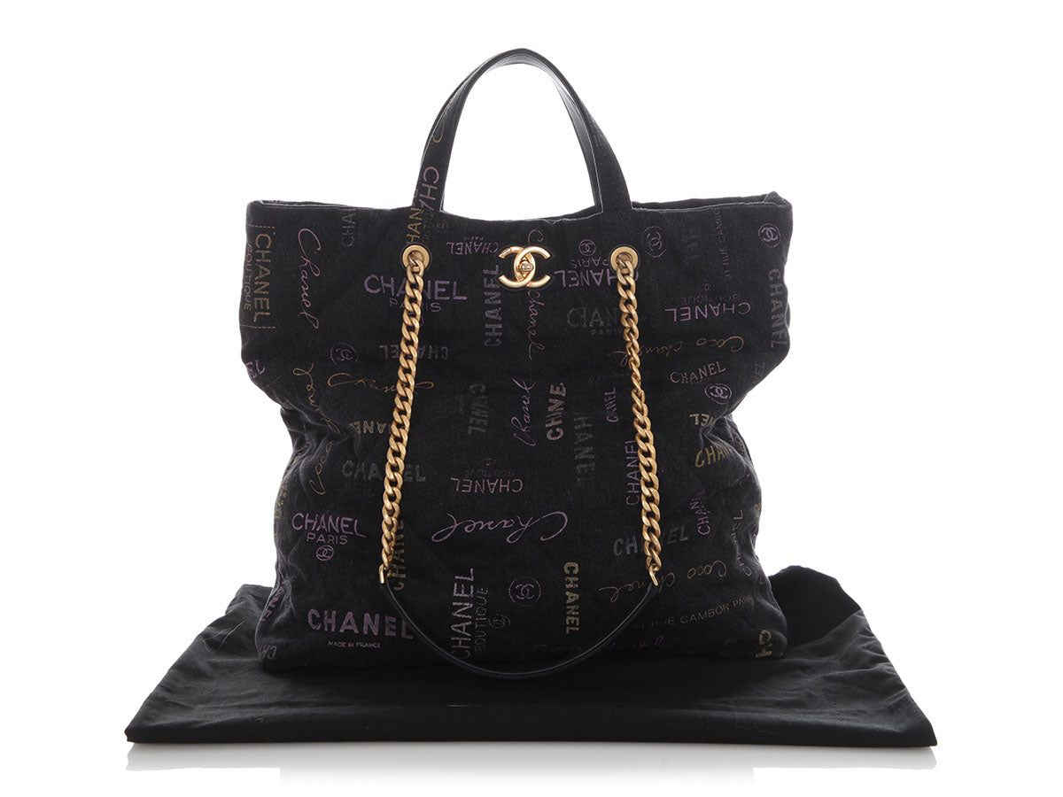 From pink to orange to green, there’s a logo for every mood on Chanel’s Black Quilted Denim Mood Tote! Crafted from black fabric with multicolored printing and antique gold hardware, this roomy shopper features top handles with a 4-inch drop and longer leather-and-chain straps with an 11-inch drop. The top secures with a CC turnlock, and the black fabric-lined interiorhas one zipped pocket. In very good condition from 2022, it comes with a dustbag and has wear on the hardware, corners, edges, and interior. I don’t know about you, but I’m always in the mood for a little Chanel!