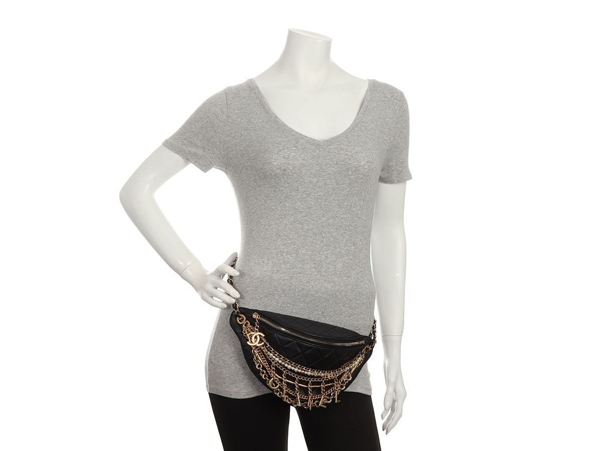 Chanel Black Quilted Lambskin Paris-New York All About Chains Bumbag