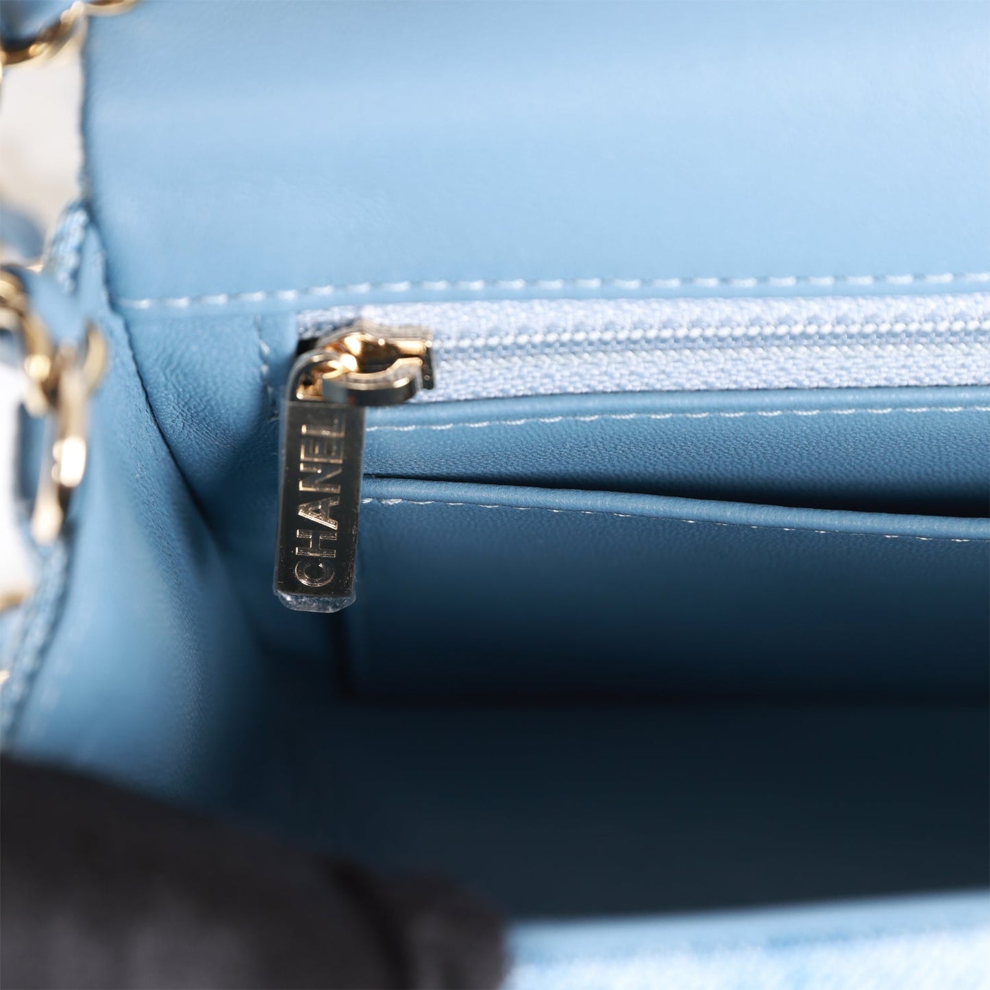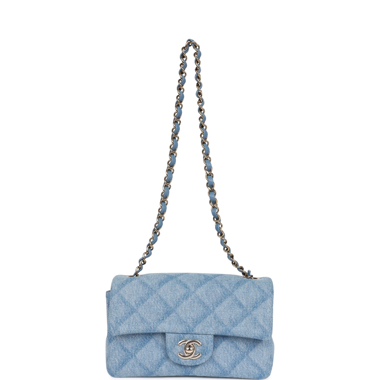 Chanel Blue Quilted Denim Rectangular Mini Flap Bag Gold Hardware