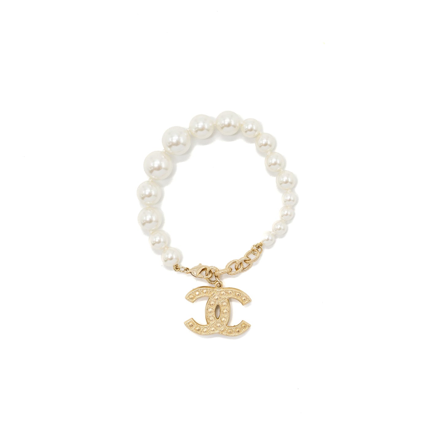 Chanel cc logo dropped bracelet with crystal / pearl light gold tone