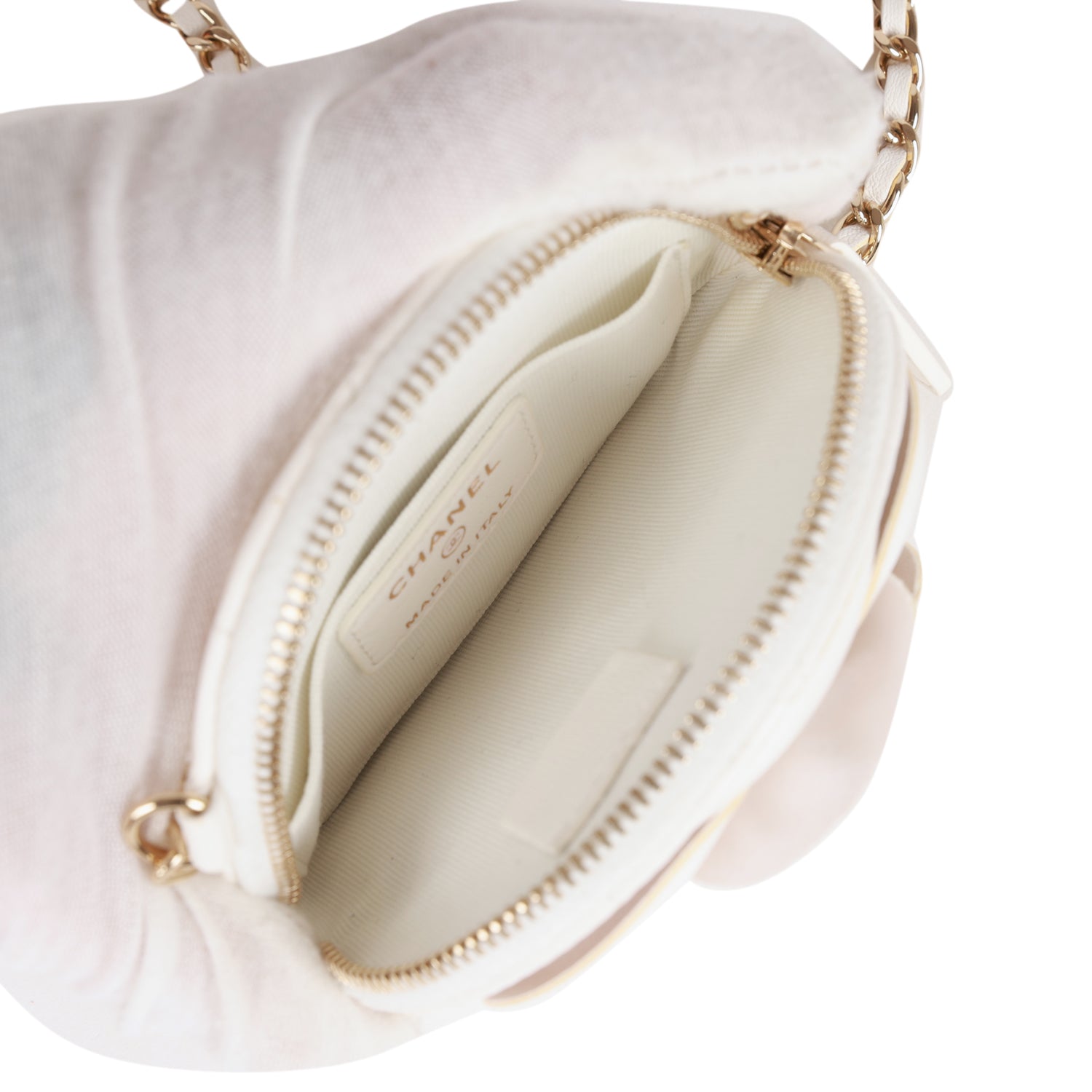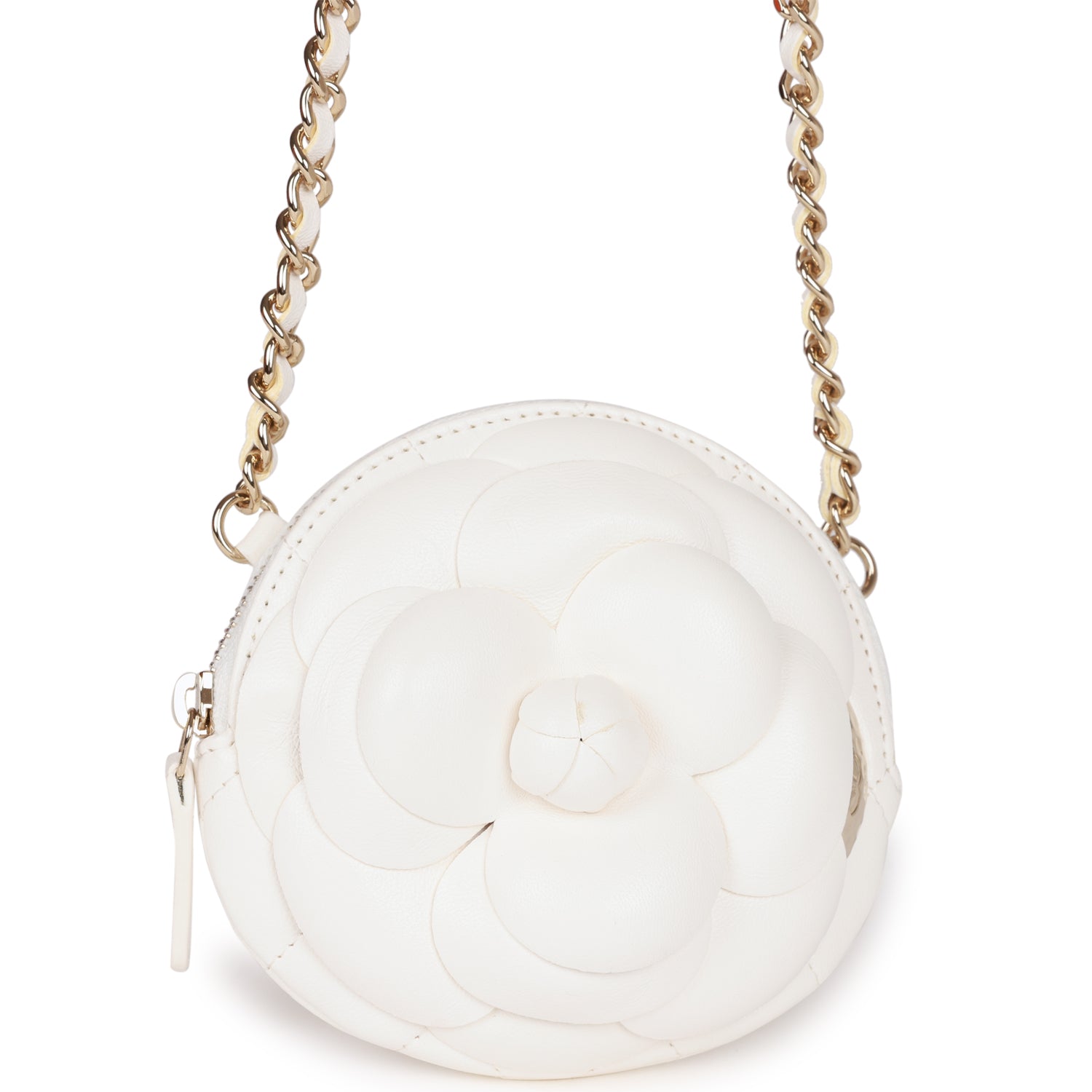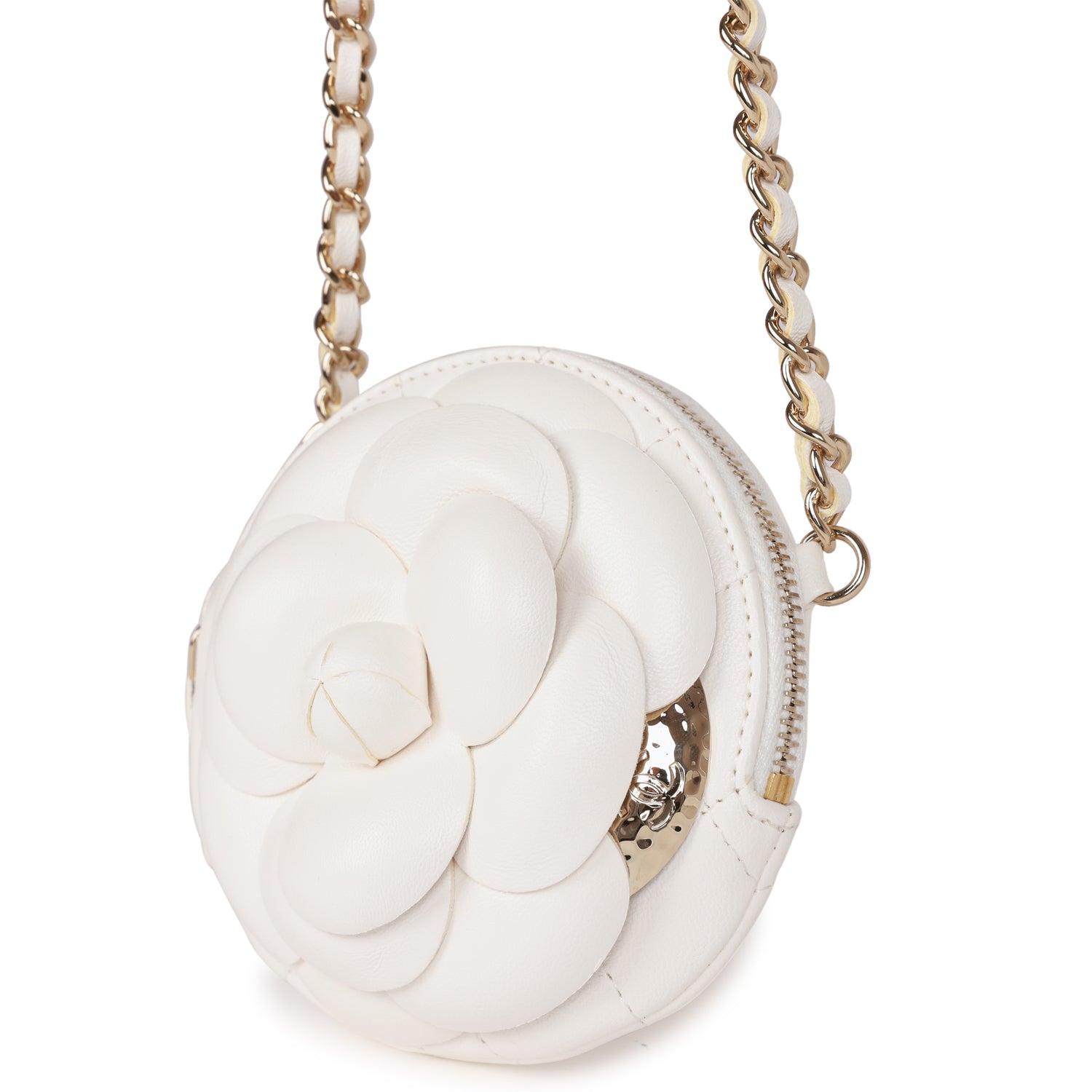 Chanel Camellia Clutch with Chain White Lambskin Light Gold Hardware