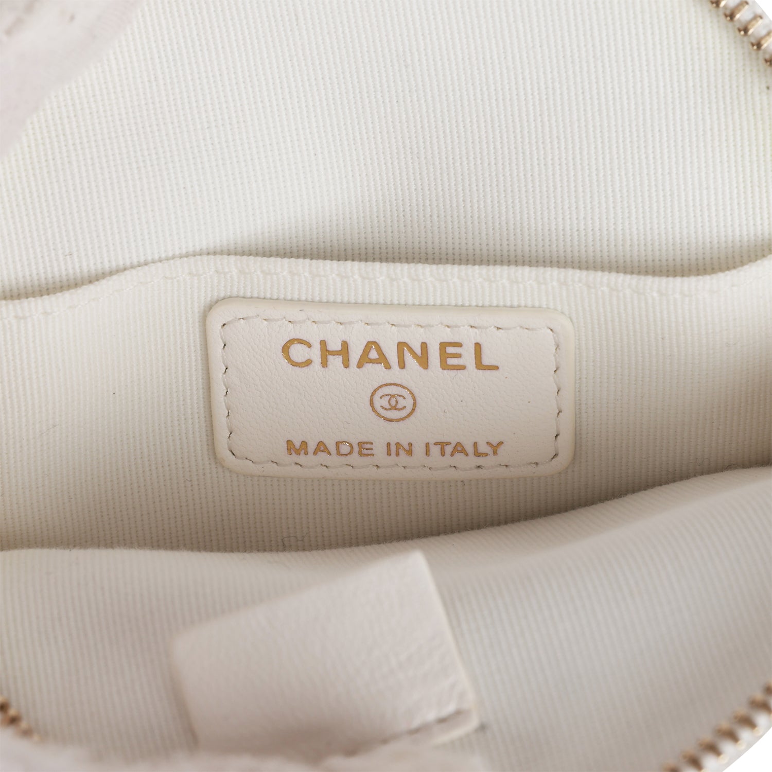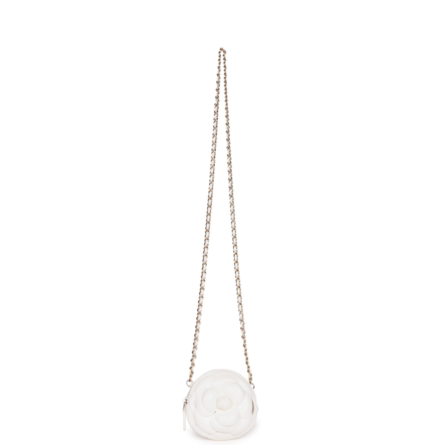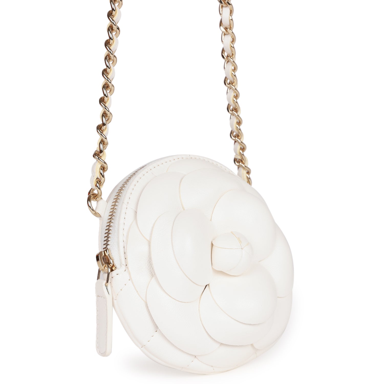 Chanel Camellia Clutch with Chain White Lambskin Light Gold Hardware