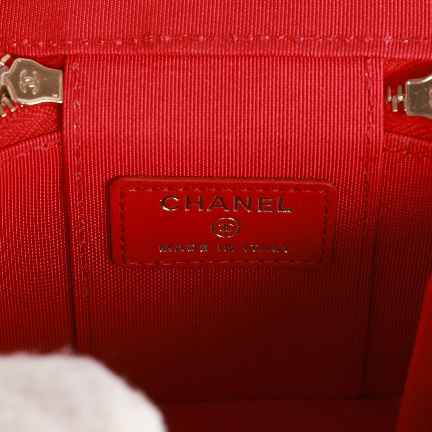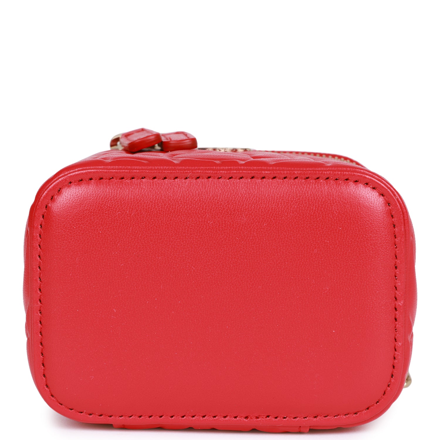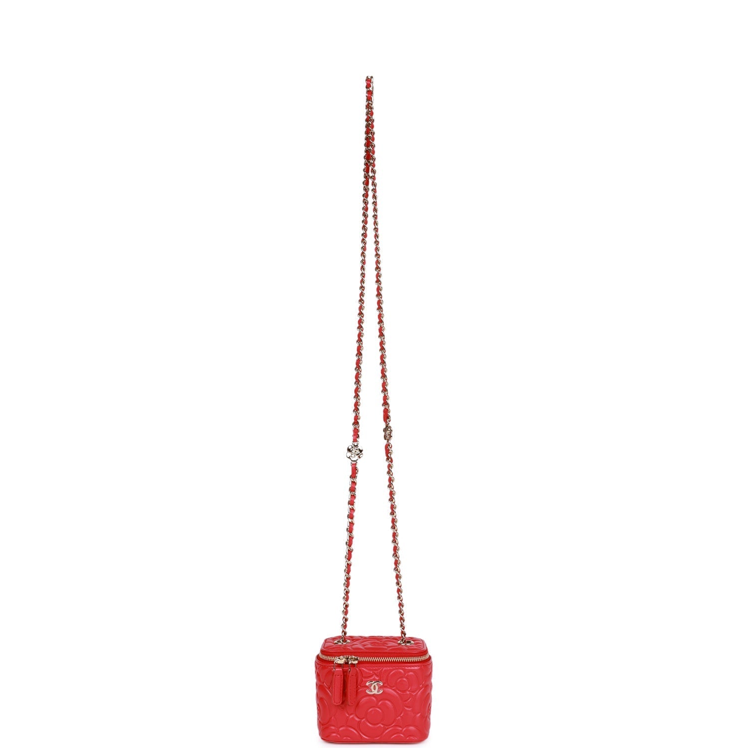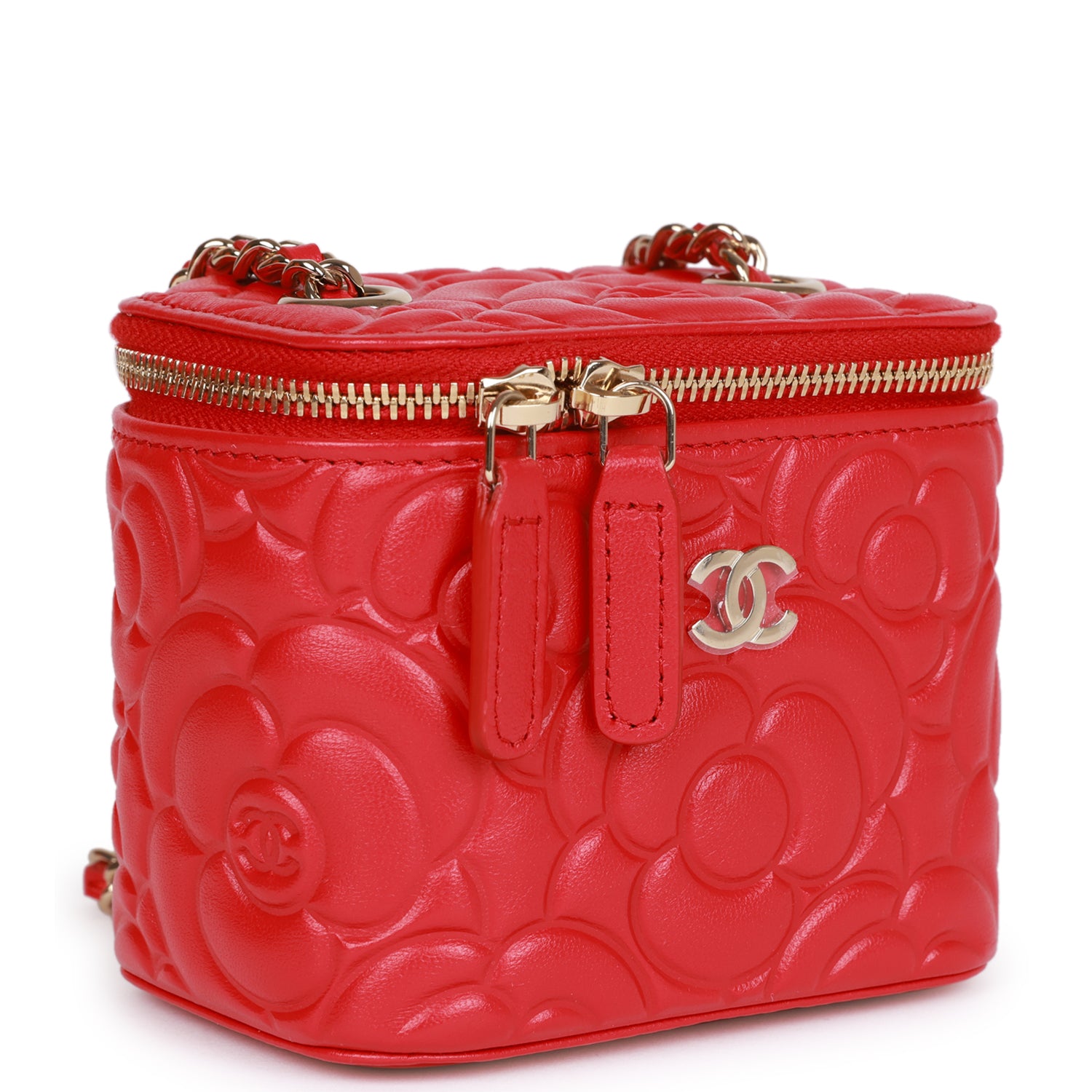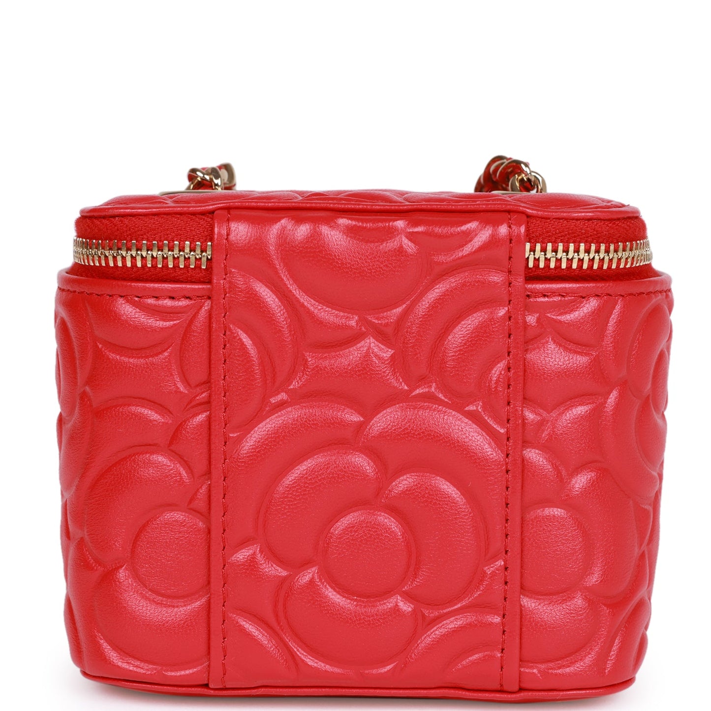 Chanel Camellia Mini Vanity Case Red Lambskin Light Gold Hardware