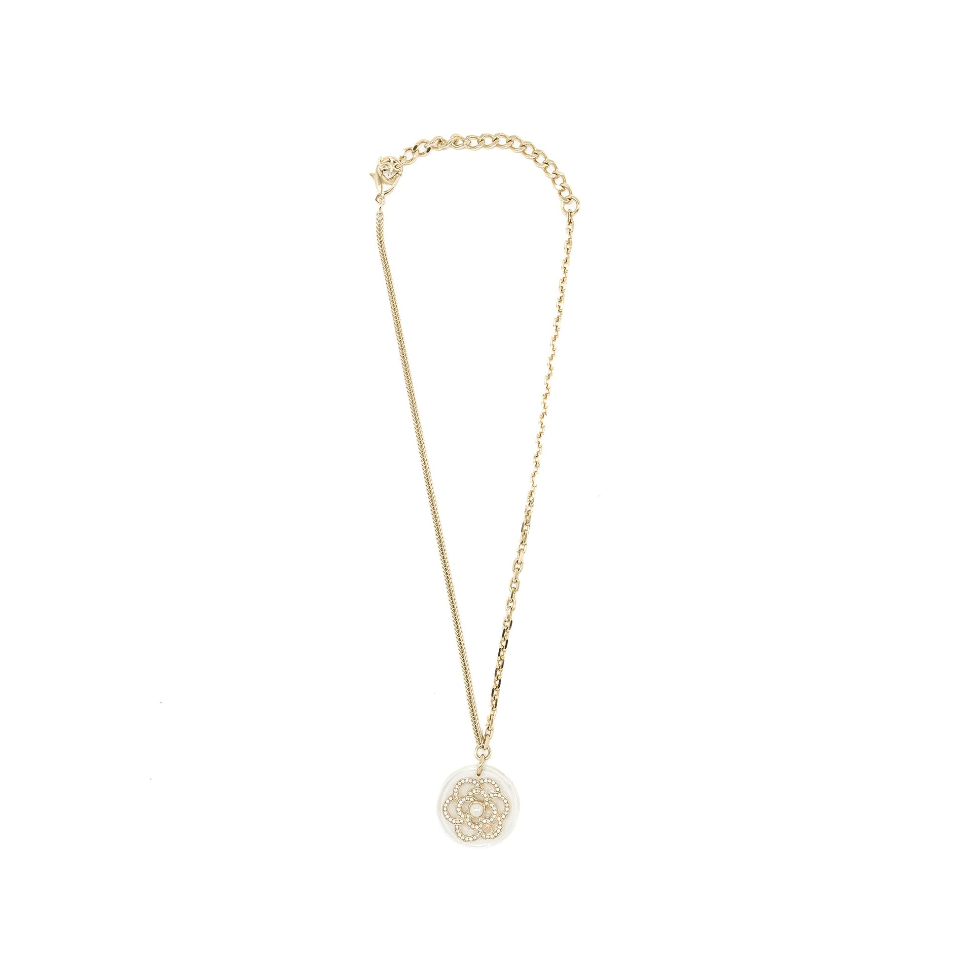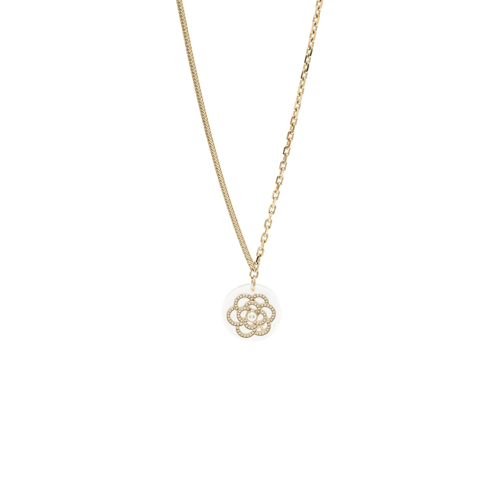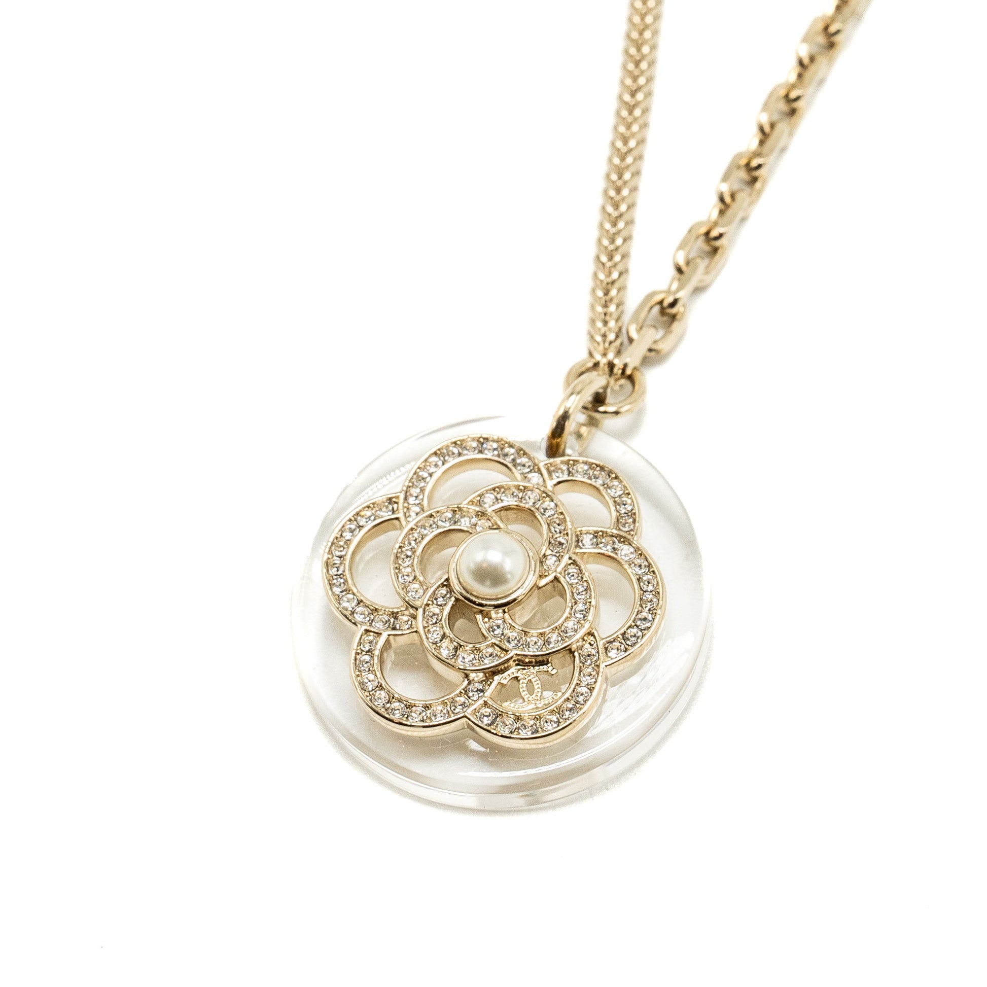 Chanel Camellia Necklace Pearl/Light Gold Tone