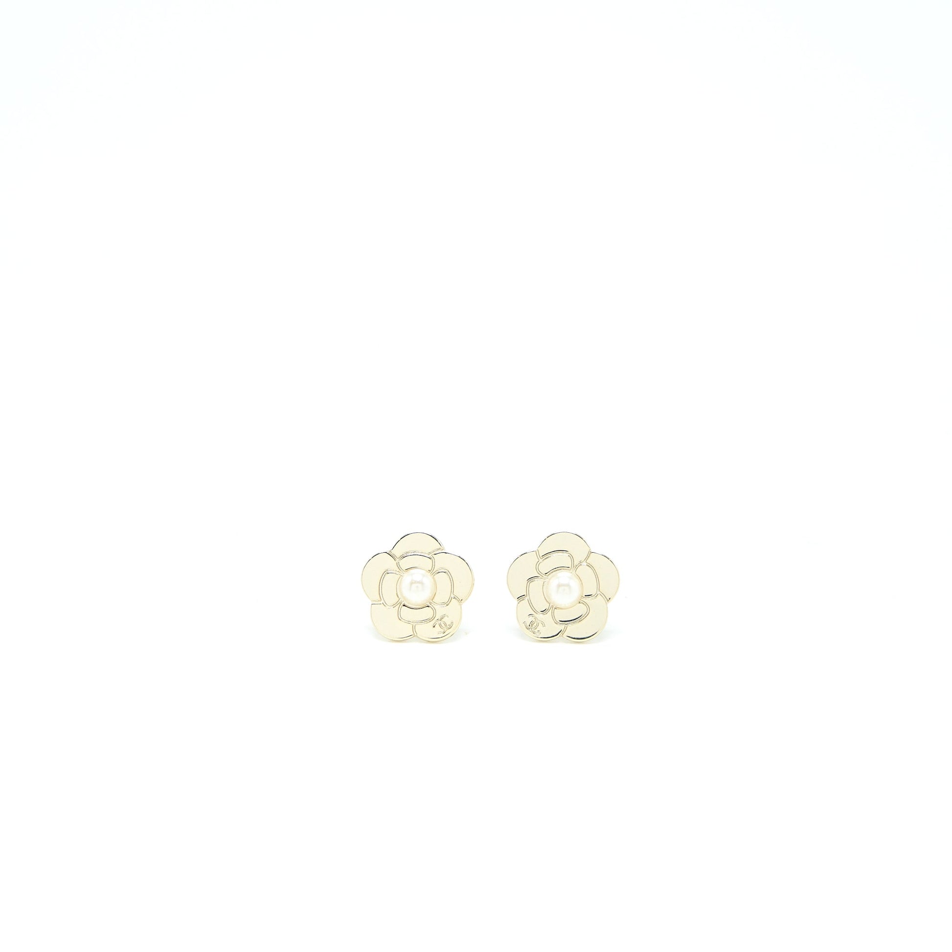 Chanel Camellia Earrings Pearl Light Gold Tone
