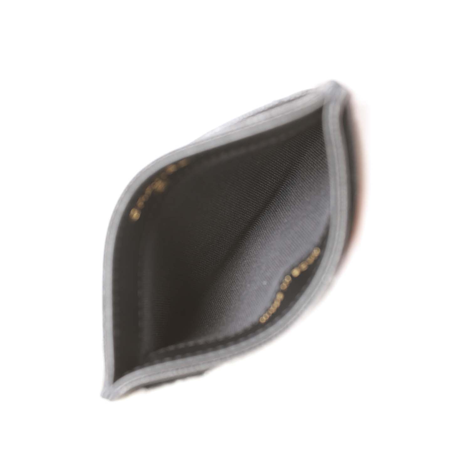 The interior is lined in black leather and has four card slots, one in front, middle, and two on the rear side.