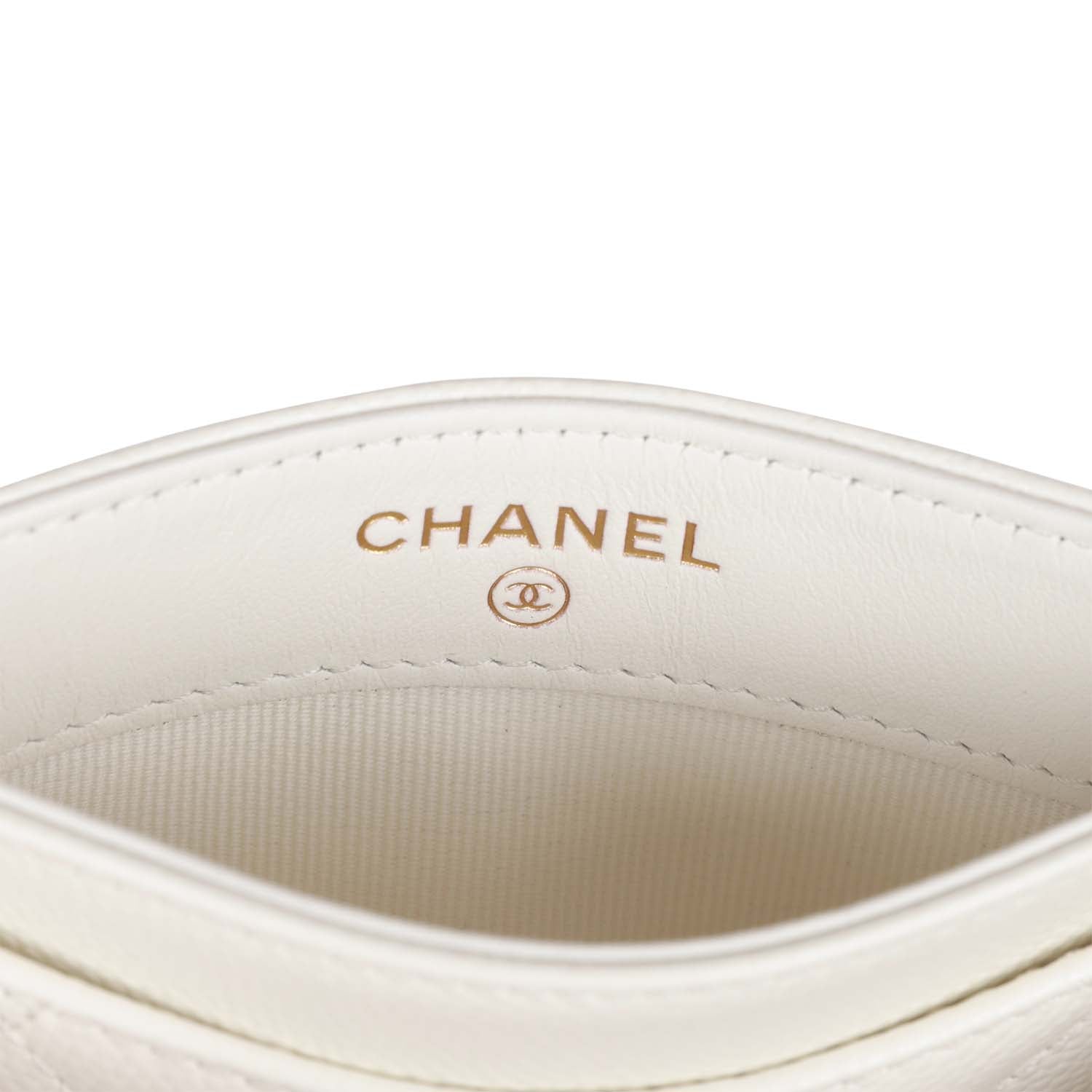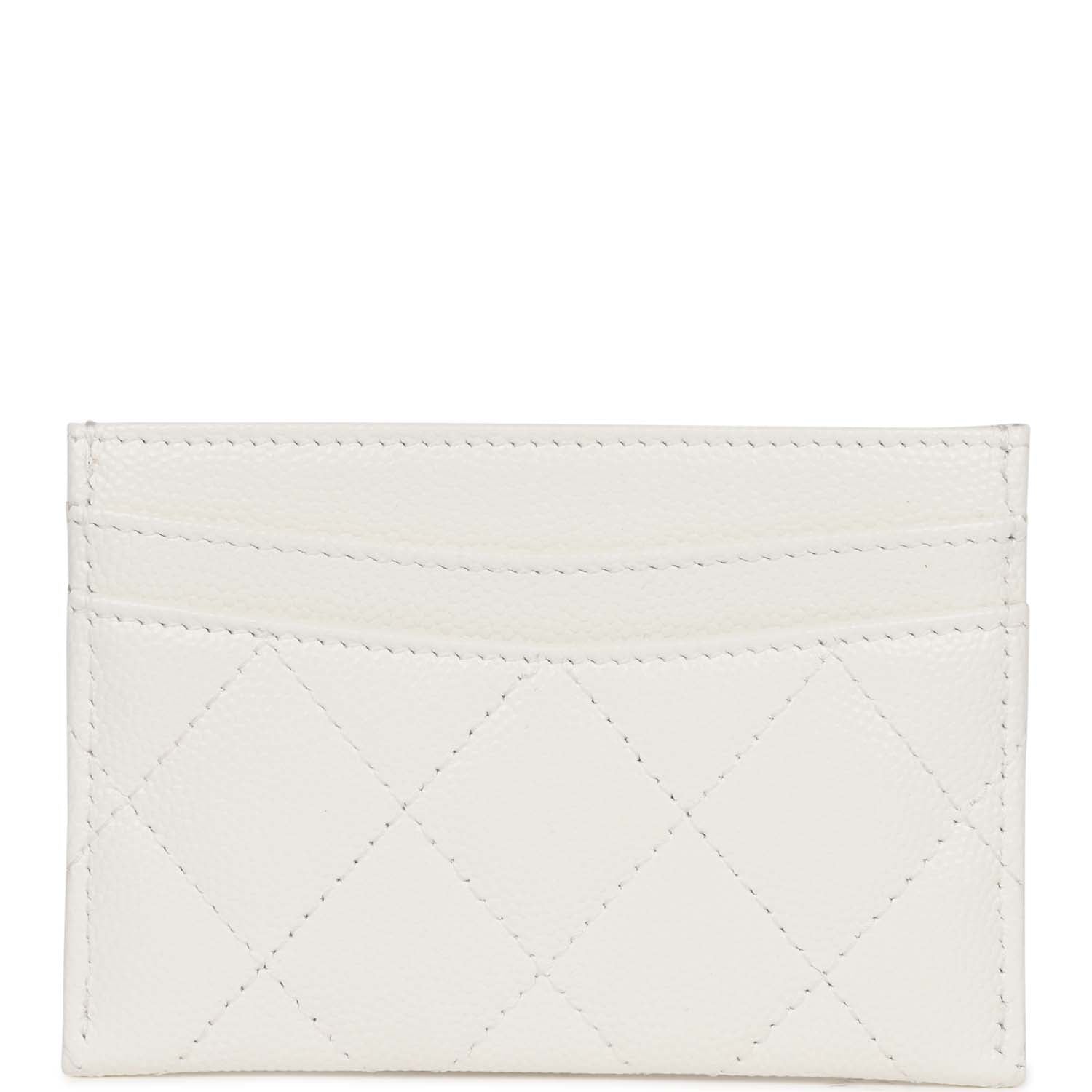 This Chanel cardholder is in White caviar leather with light gold hardware and features a small classic CC logo and four card slots.
