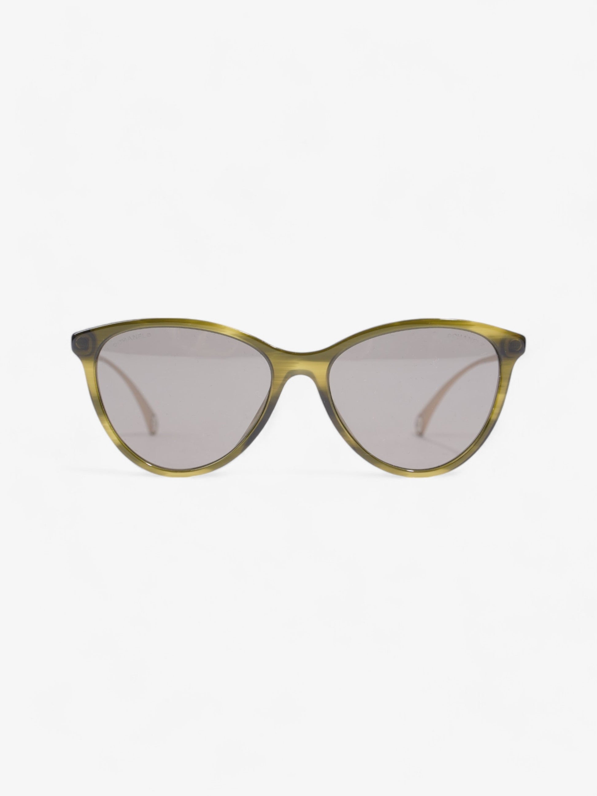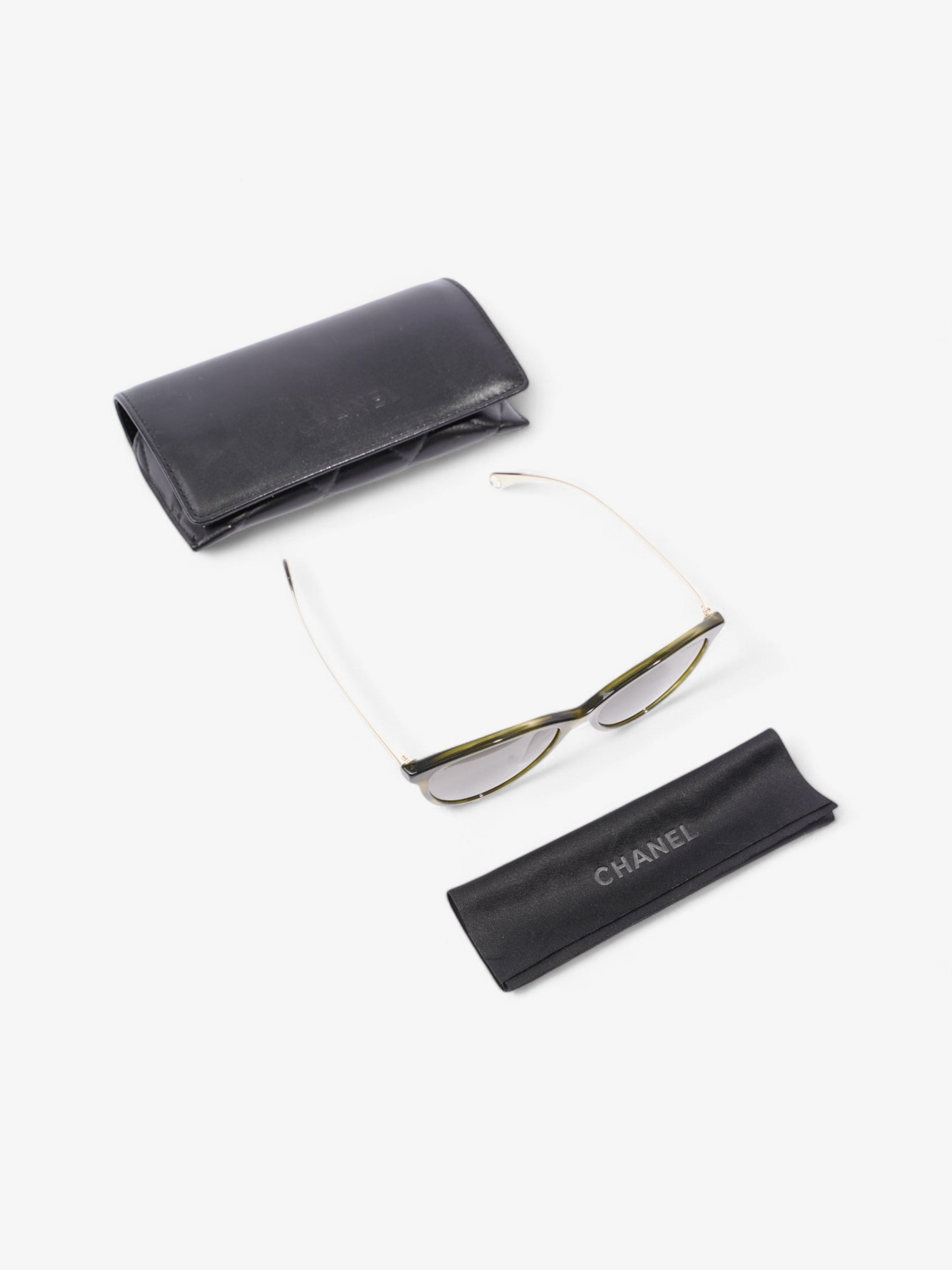 Chanel Cat Eye Sunglasses Green / Gold Acetate 140mm