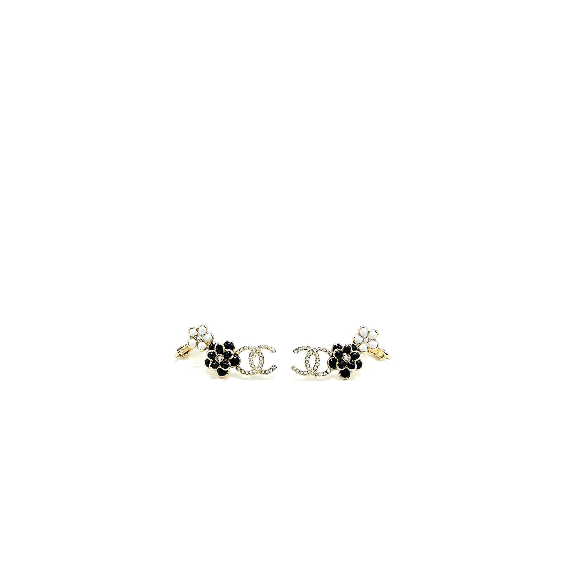 Chanel CC And Camellia Earrings Light Gold Tone