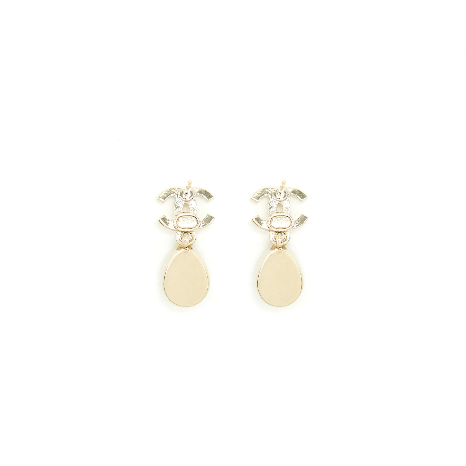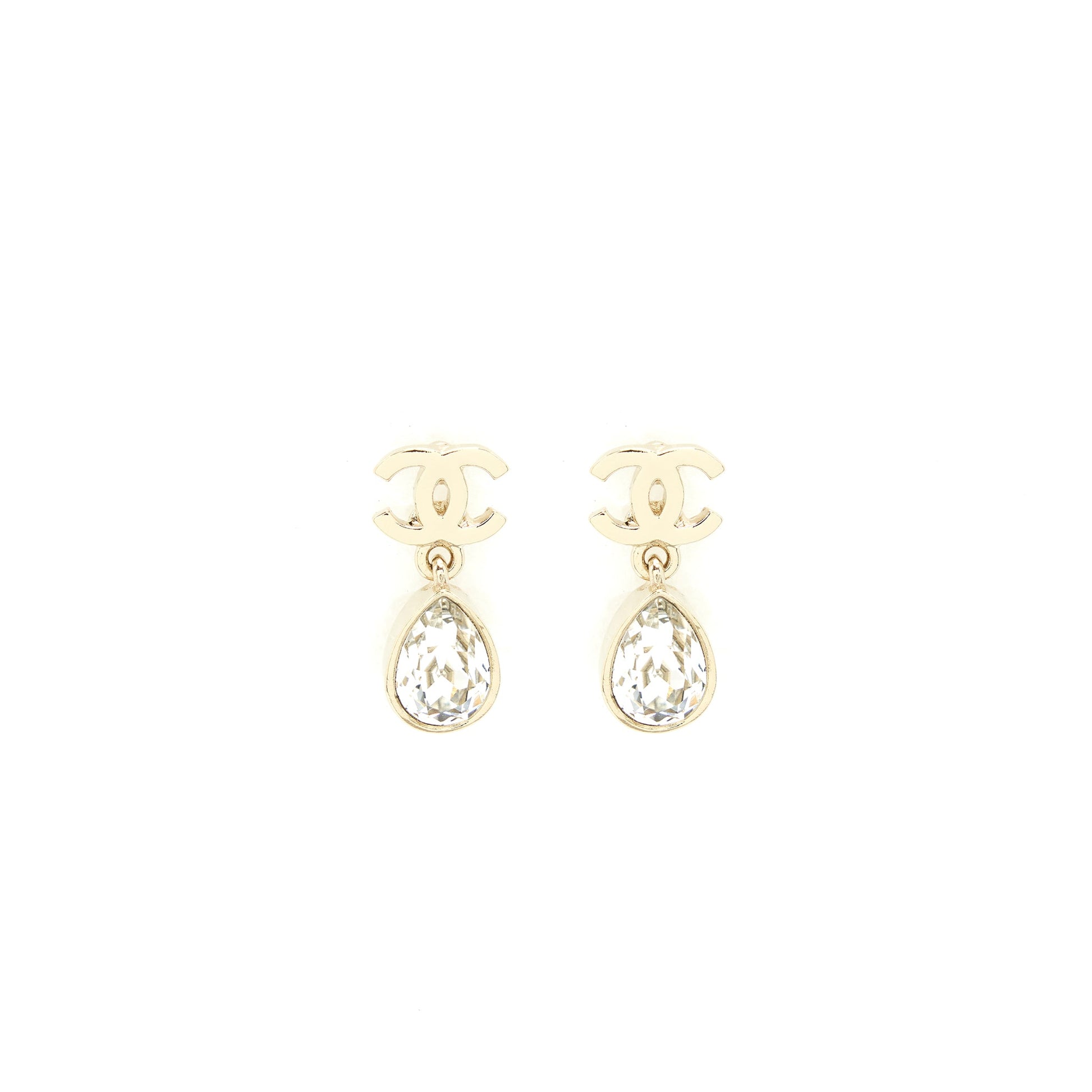 Chanel CC And Crystal Drop Earrings Light Gold Tone