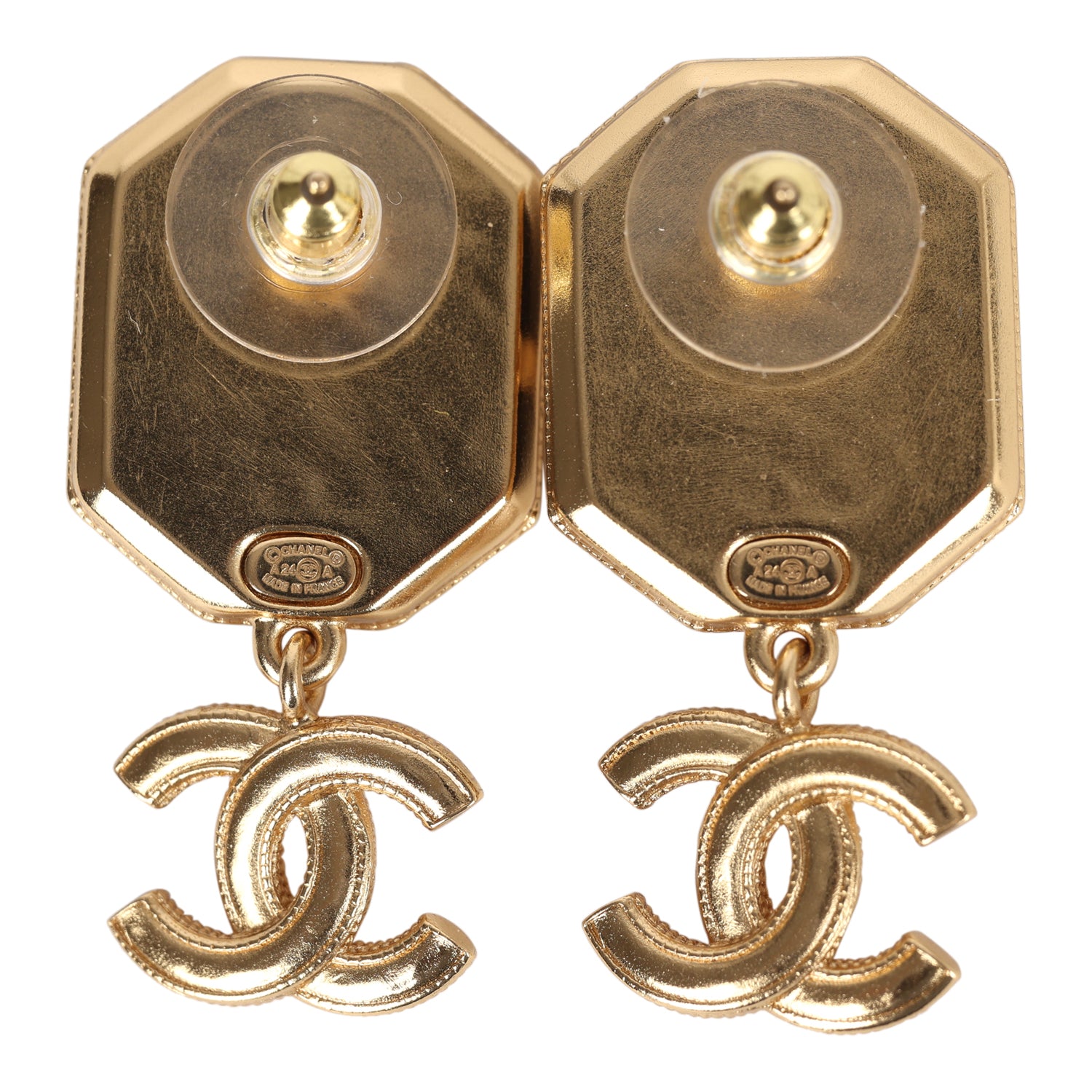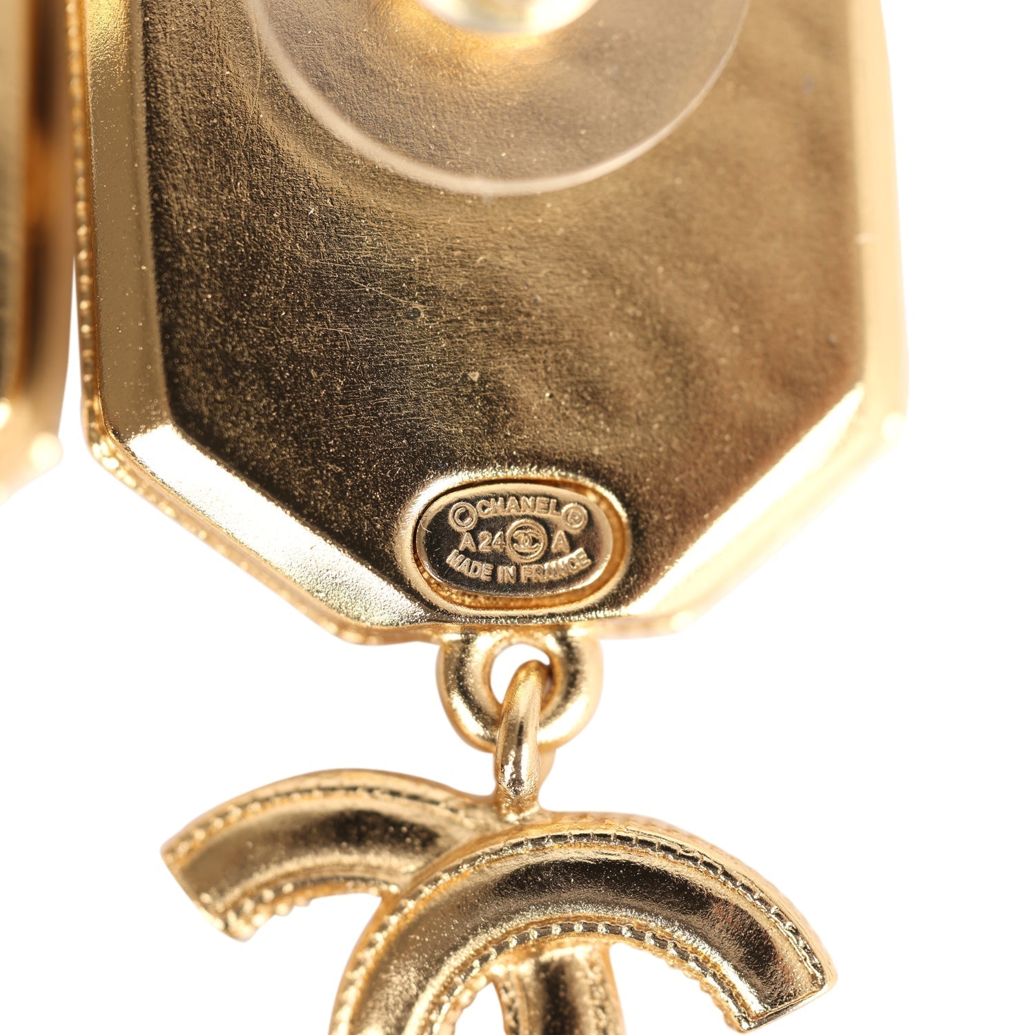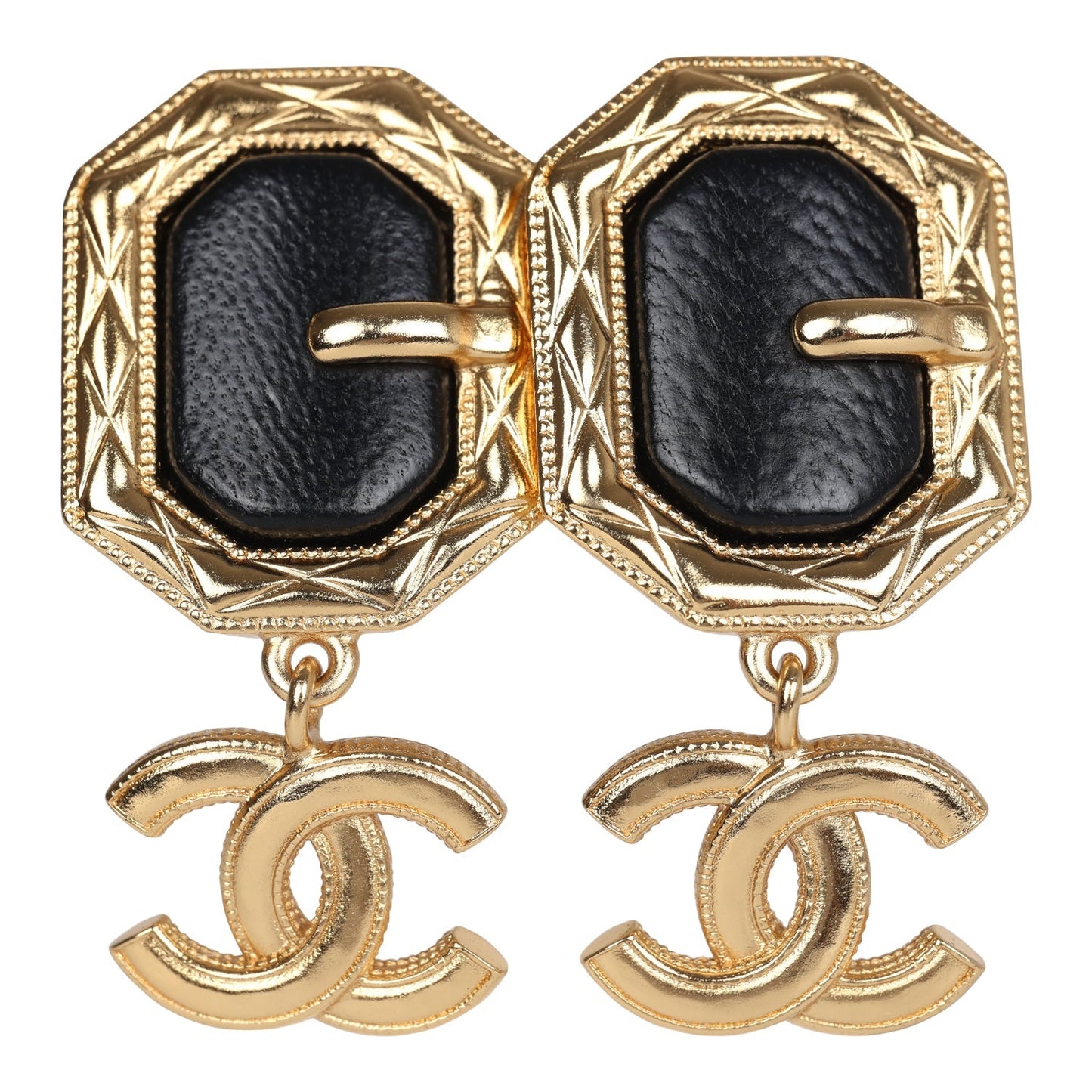 Chanel CC Buckle Dangle Earrings Black Leather Gold Hardware