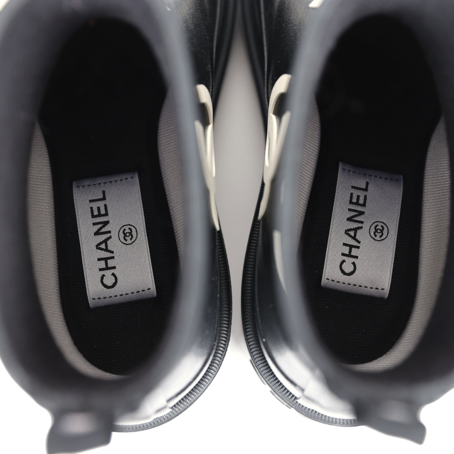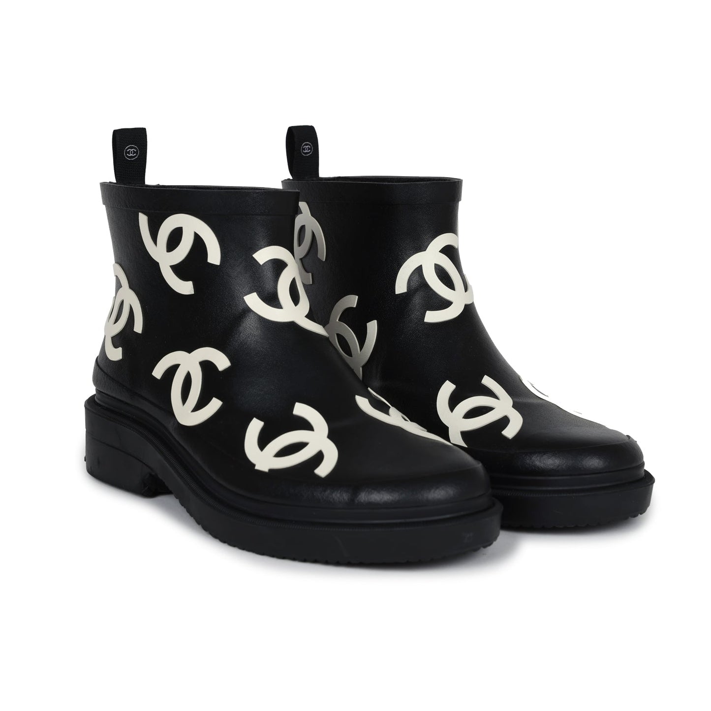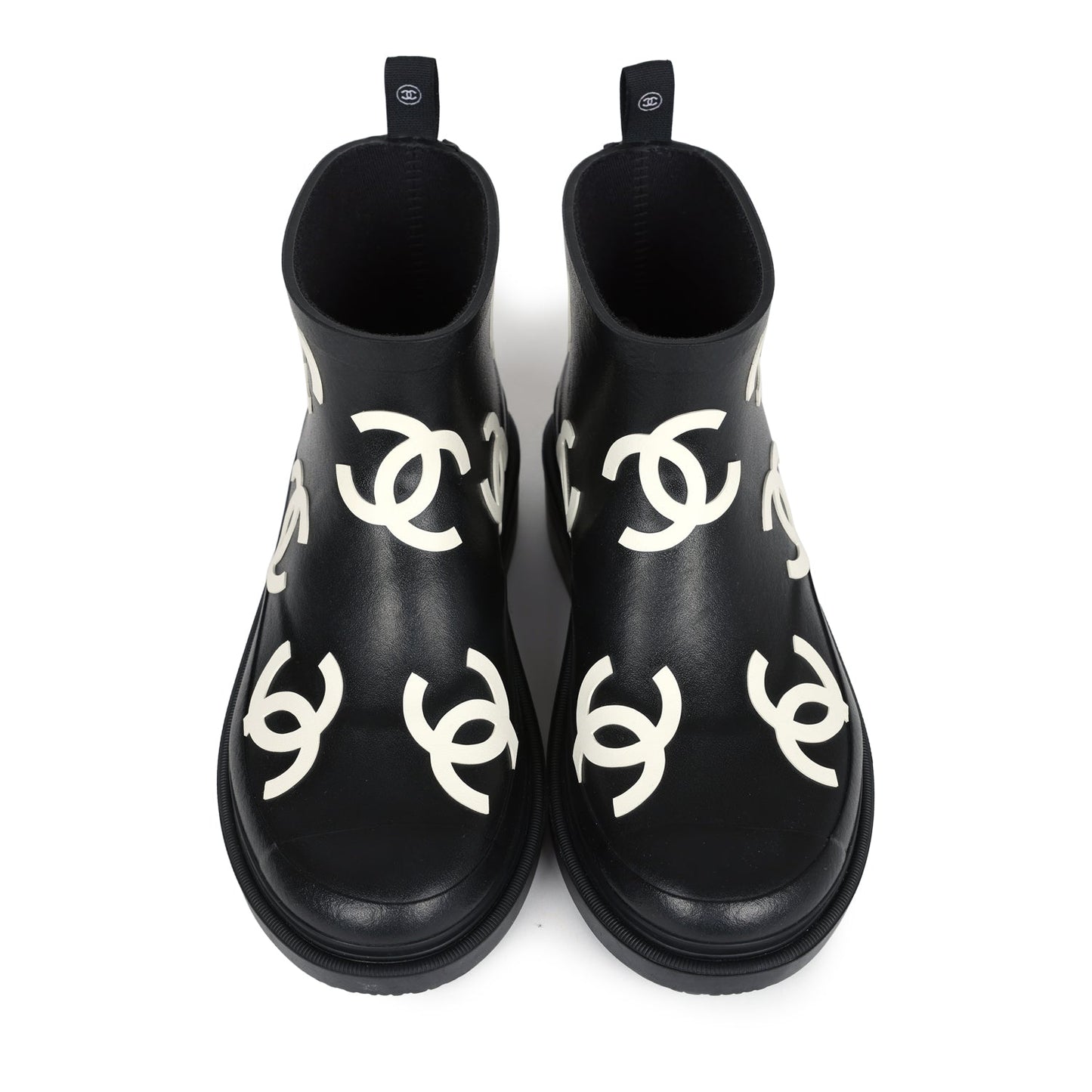 Chanel CC Caoutchouc Rain Boots Black/White Rubber 37 EU
