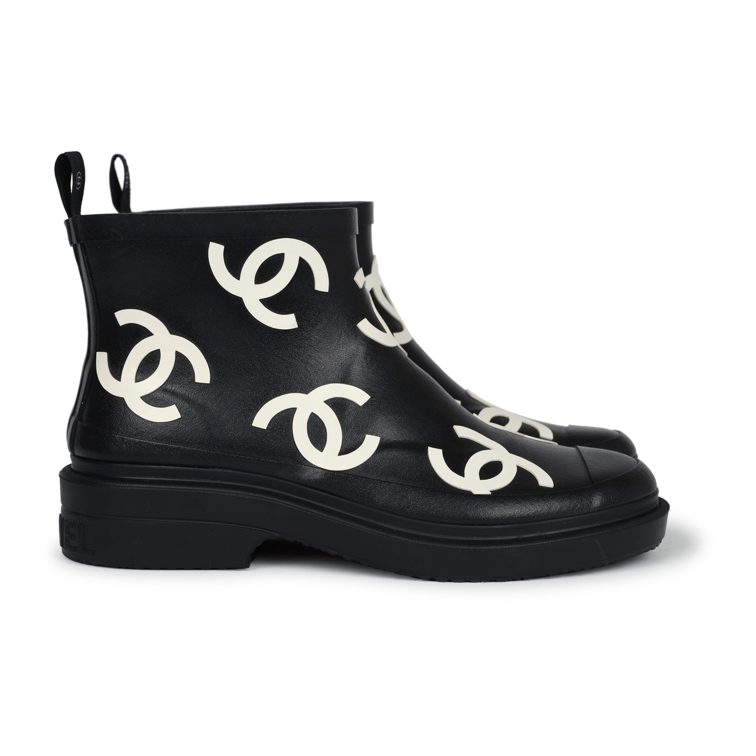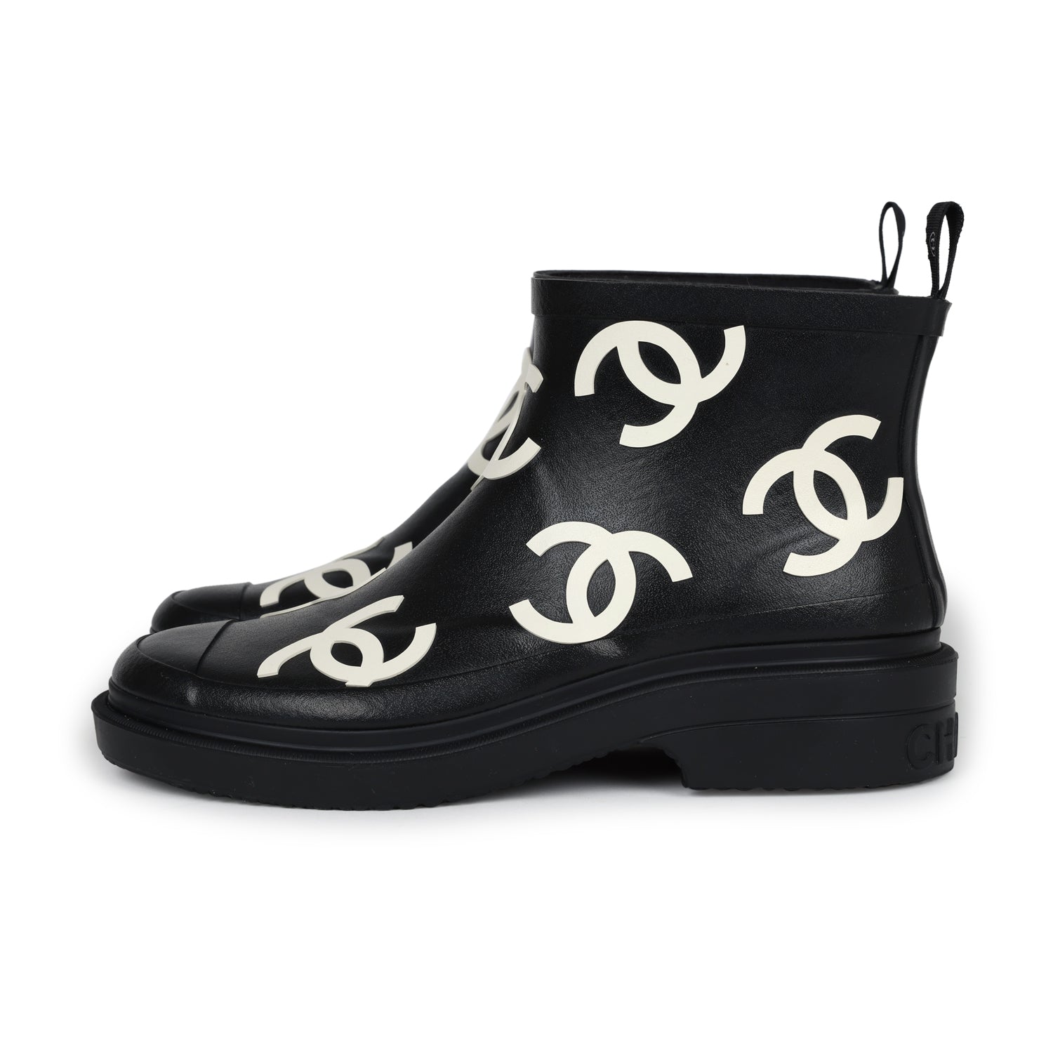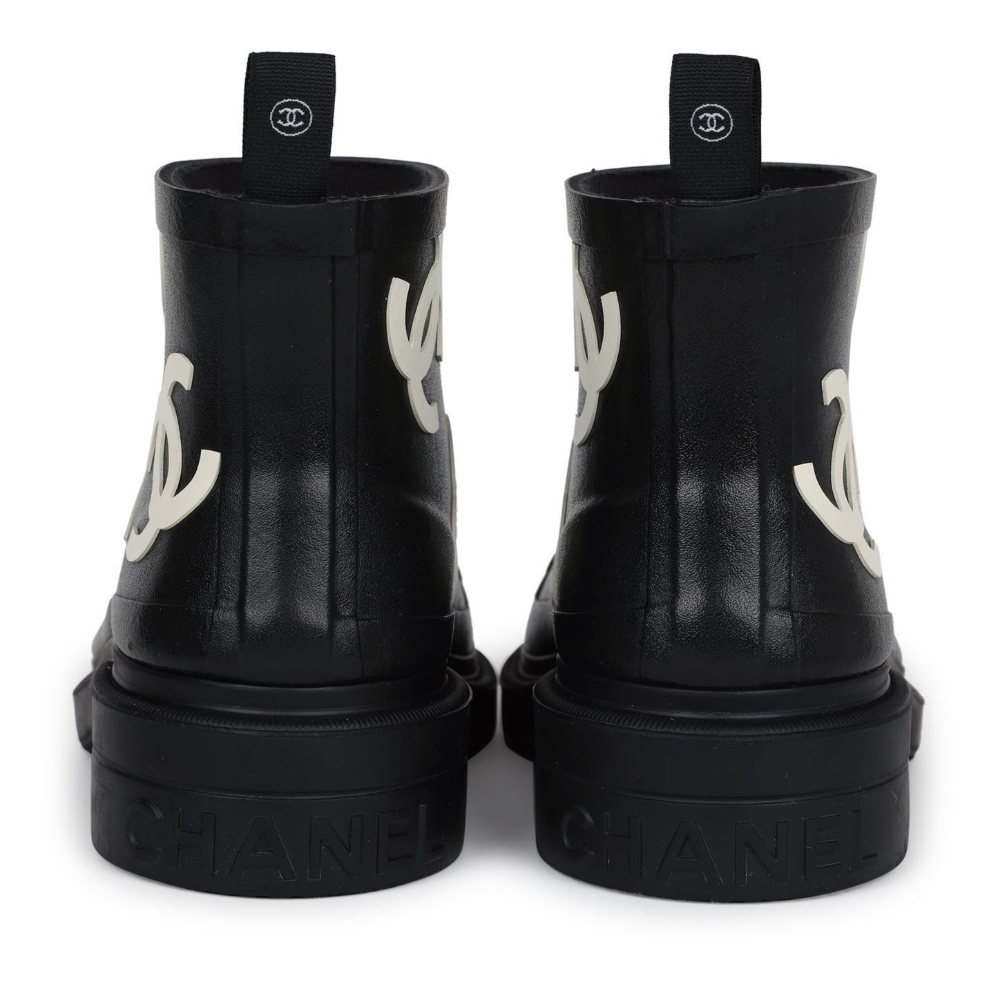 Chanel CC Caoutchouc Rain Boots Black/White Rubber 37 EU