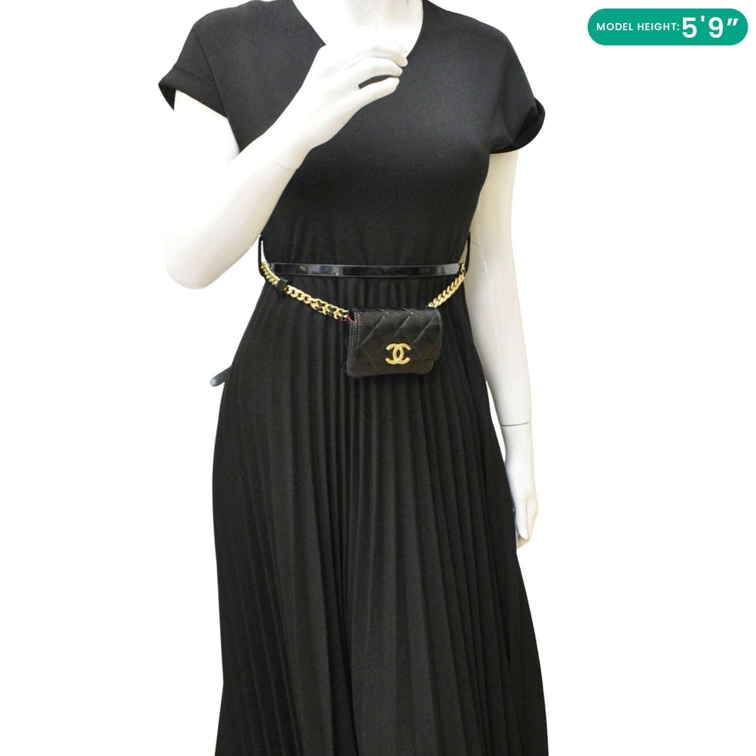 CHANEL Sweetheart CC Chain Quilted Caviar Leather Belt Bag Black