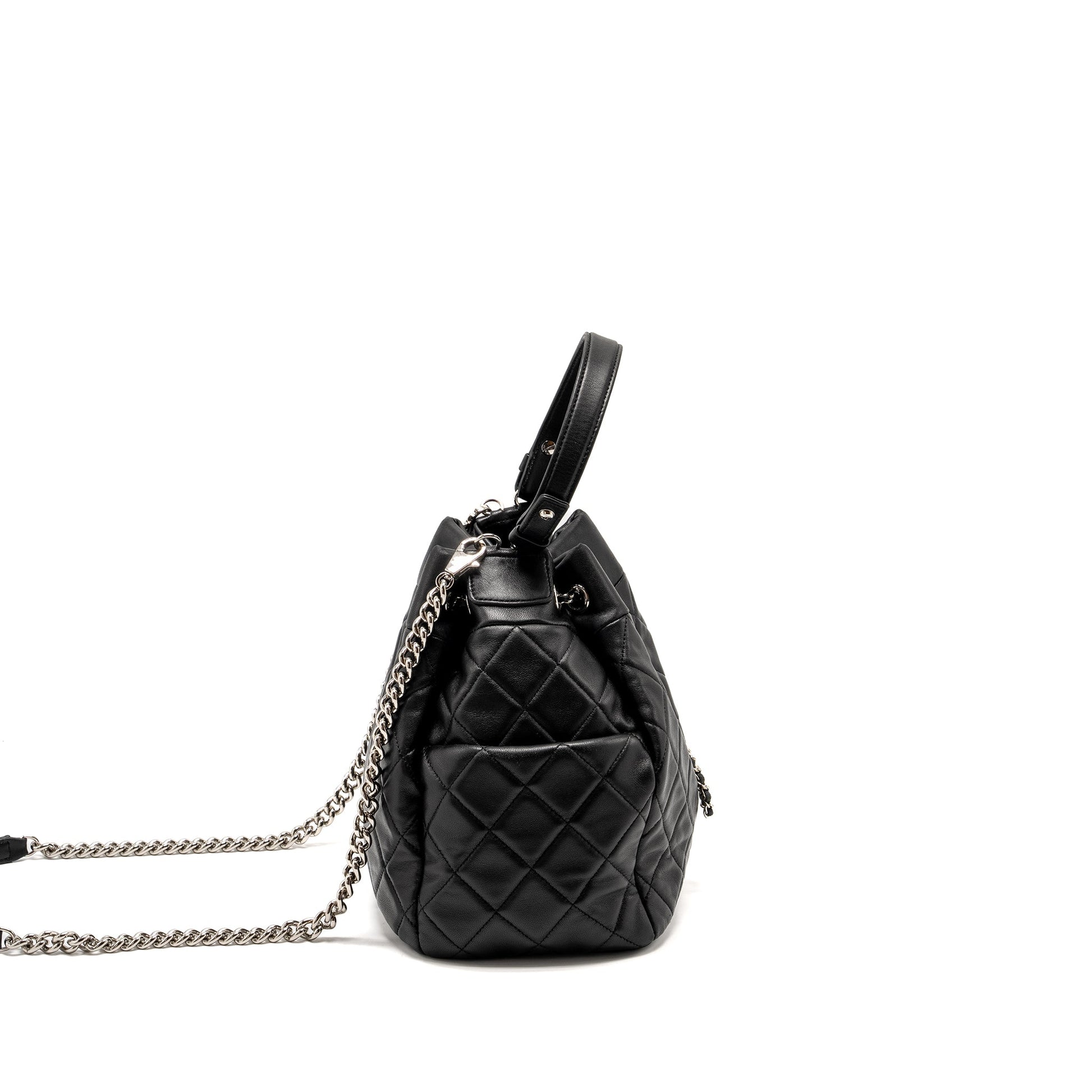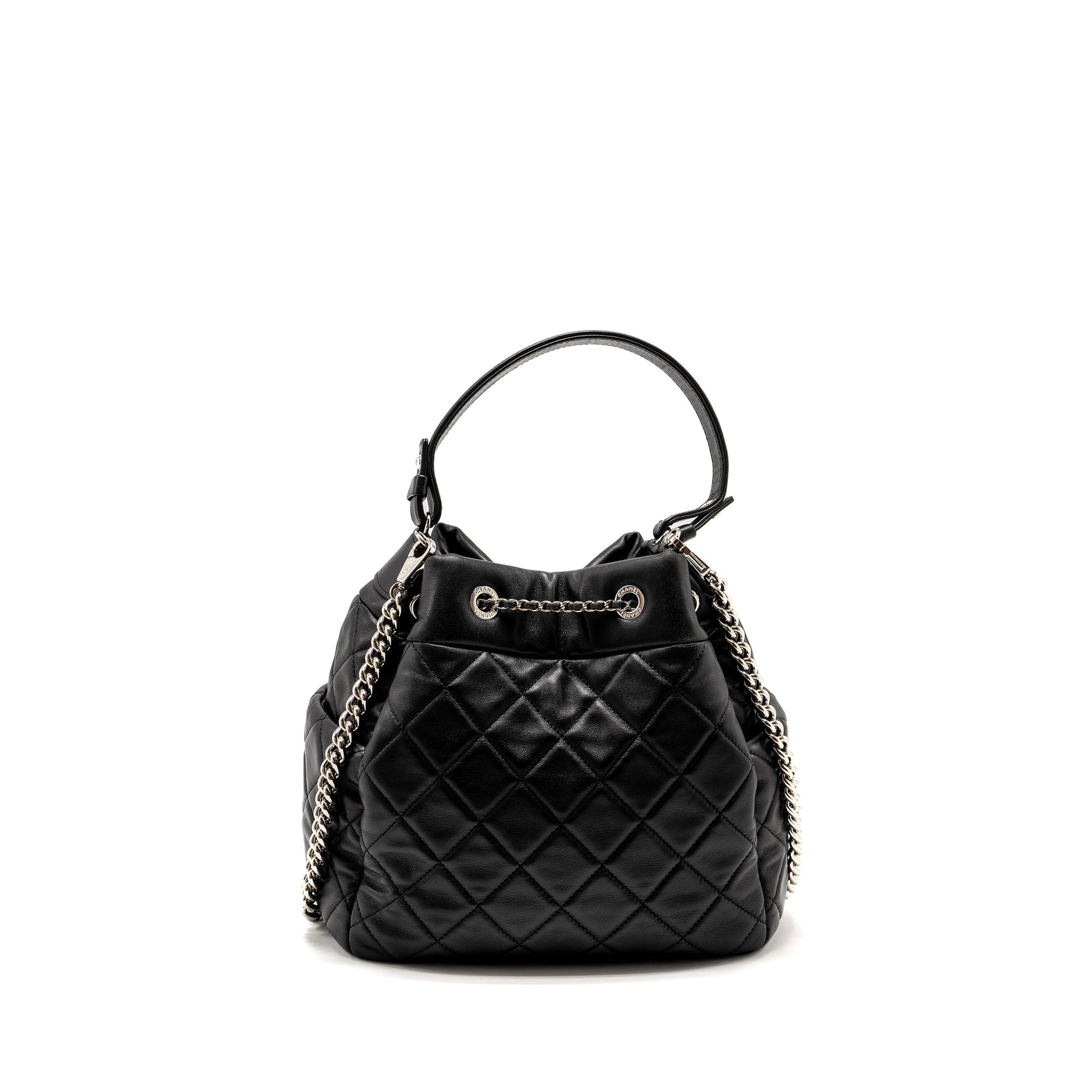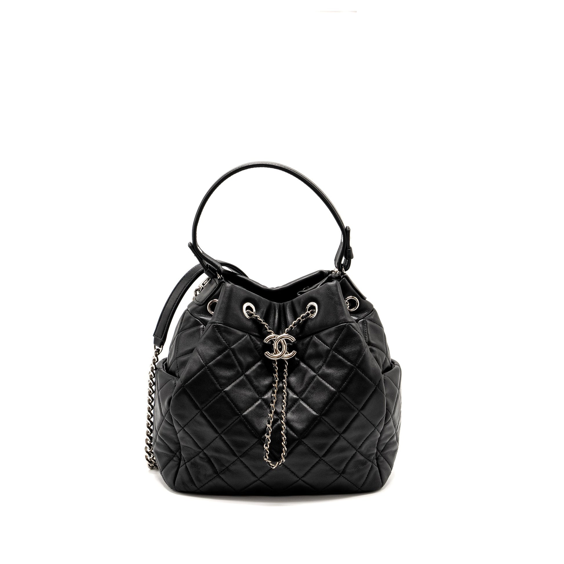 Chanel CC Chain Drawstring Bucket Bag Lambskin Black