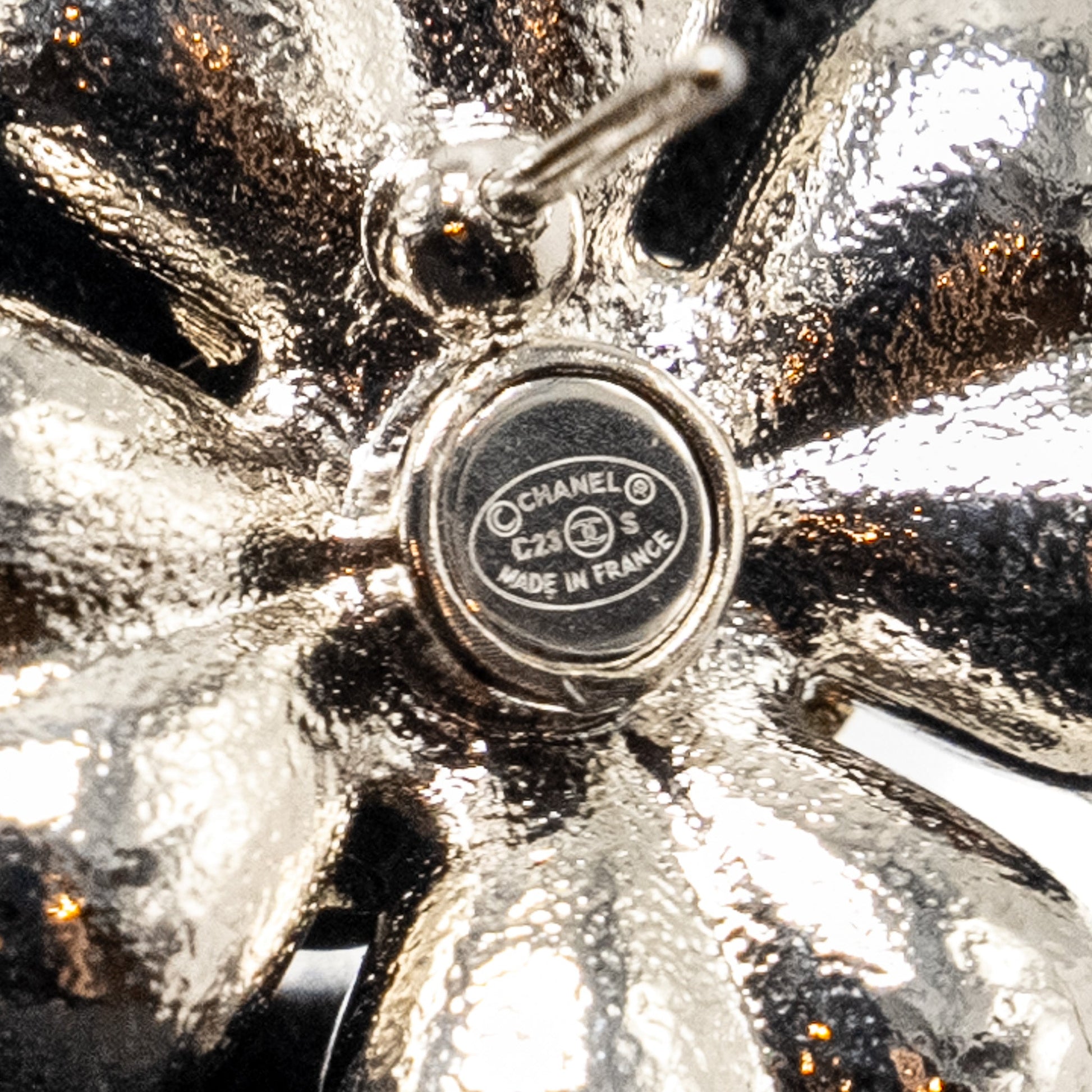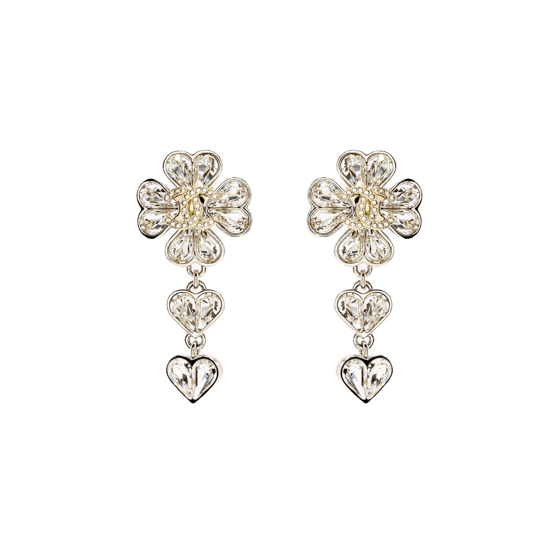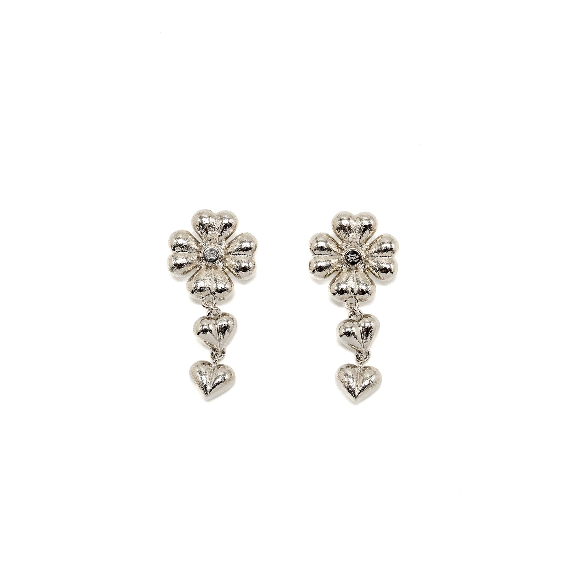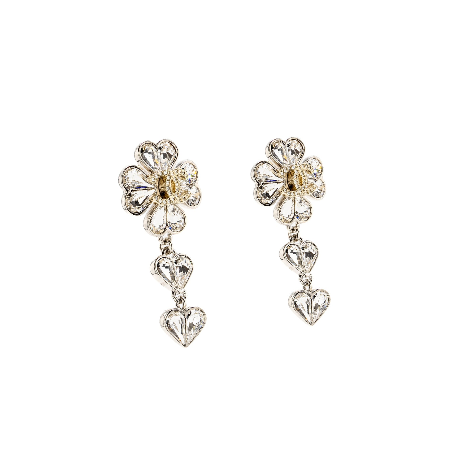 Chanel CC Clover Heart Drop Earrings Crystal Silver Tone